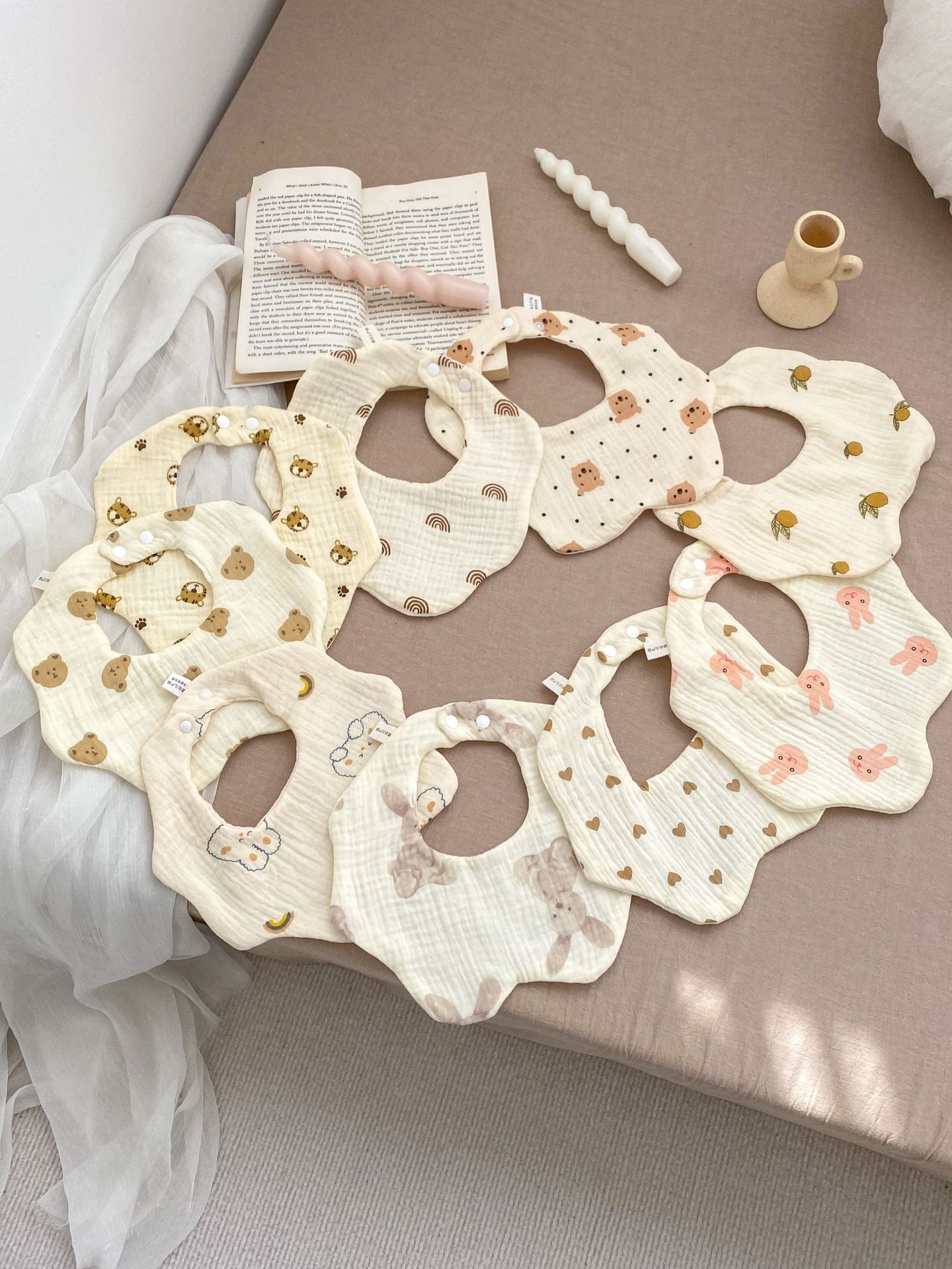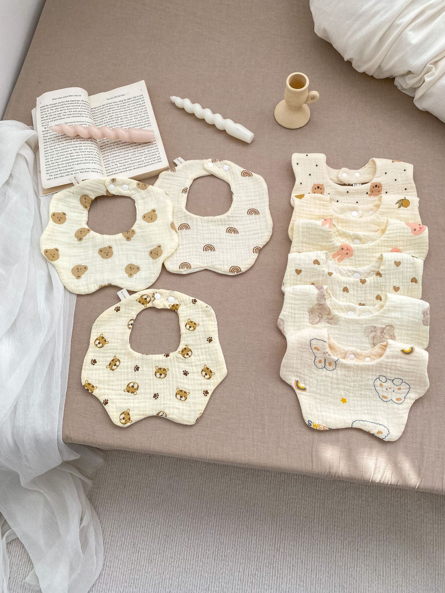 Adorable Cartoon Petal-Shaped Cotton Drool Cloth Muslin Bib