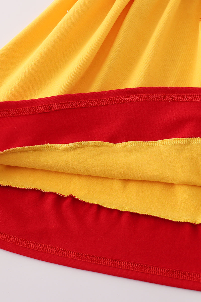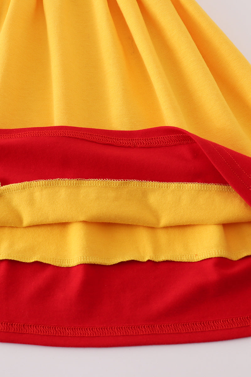 Apple embroidery bow ruffle dress