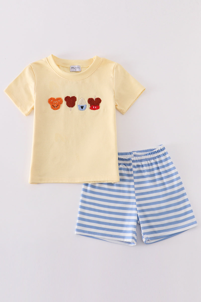 Beige character ice cream french knot boy set