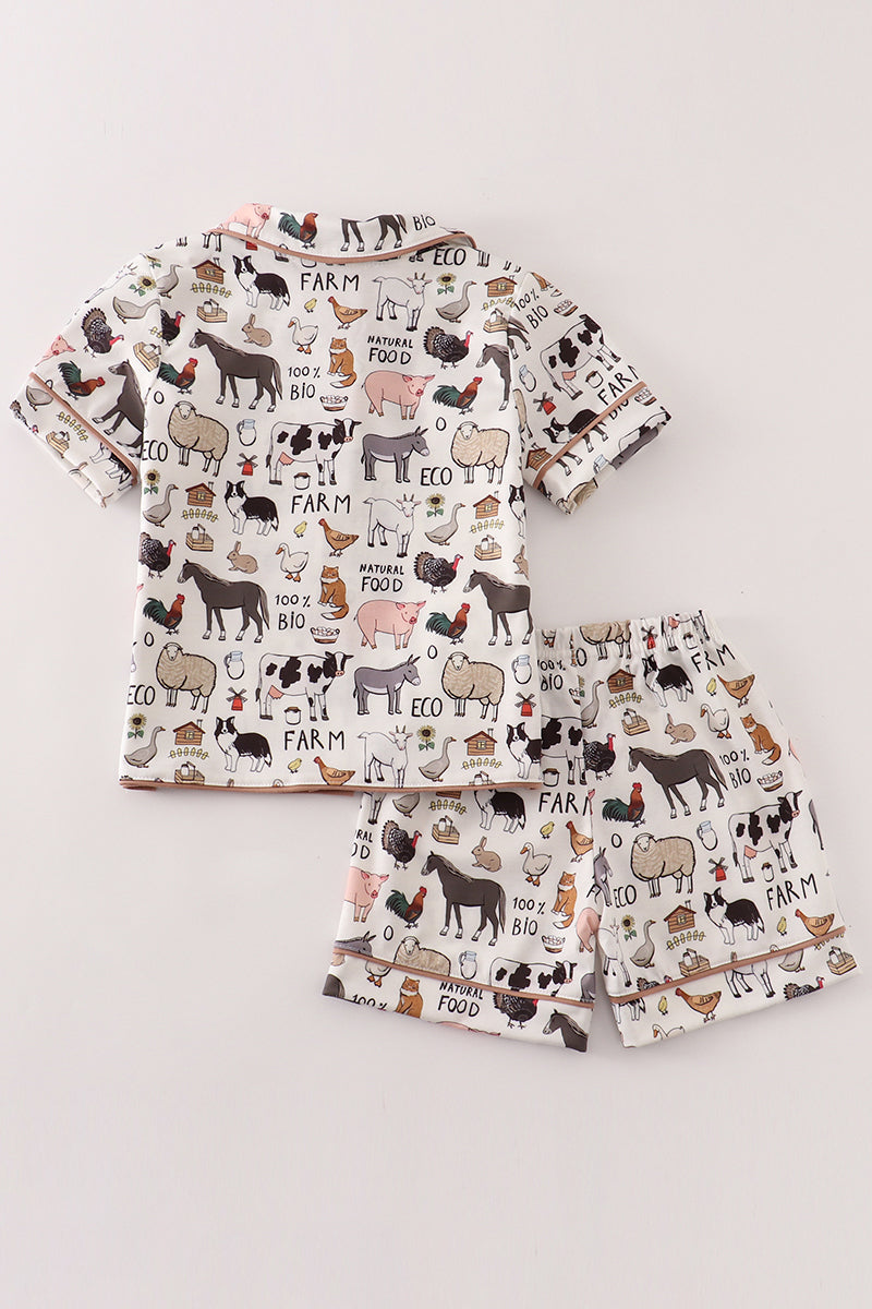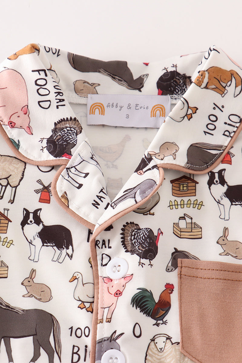 Unleash your inner farm boy with this cozy beige pajama set! Made with soft and breathable fabric, it's perfect for a comfy night's sleep or lounging around the house. Channel your playful side with this quirky set - it's the perfect addition to your pajama collection. (Only 42 words - nailed it!)