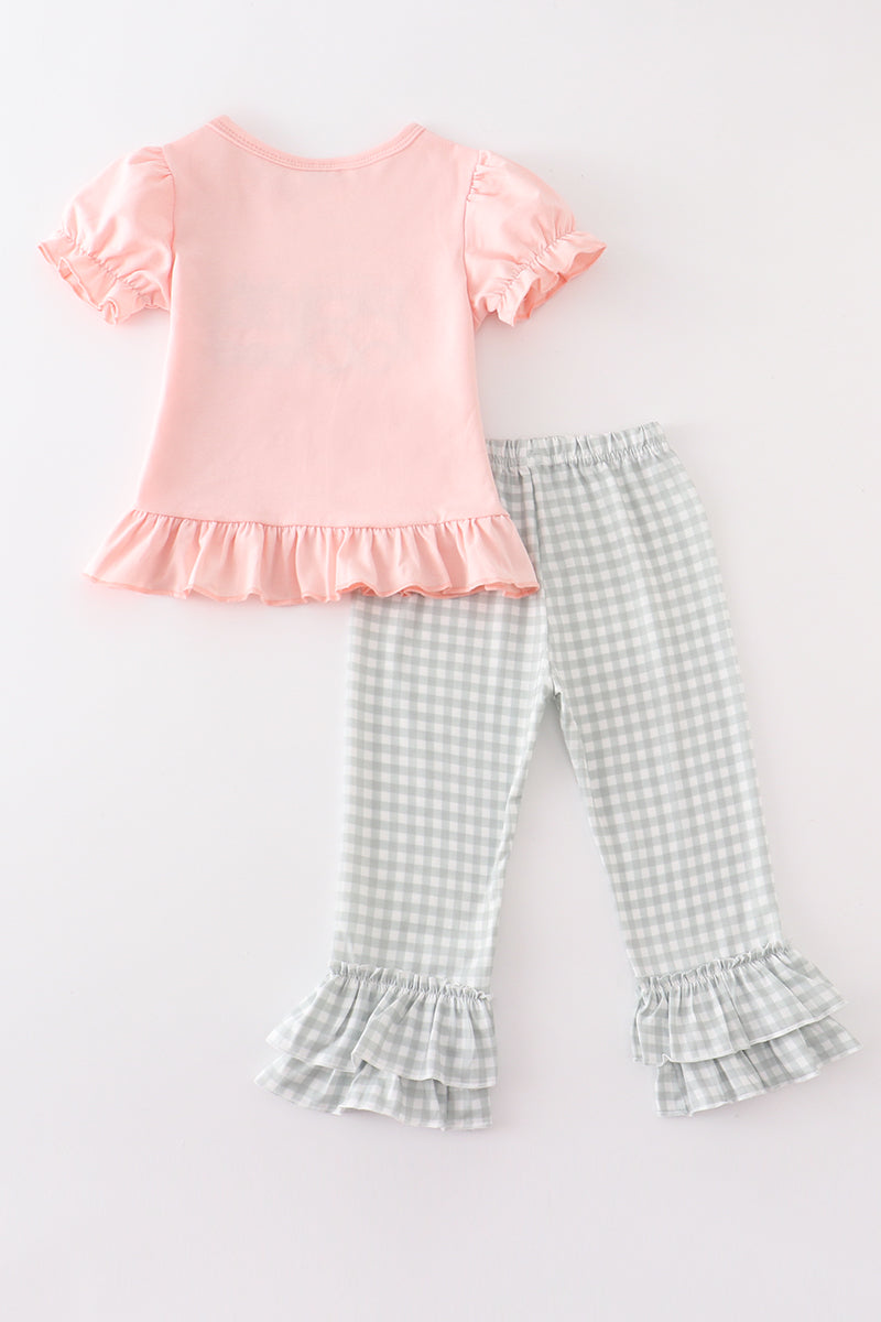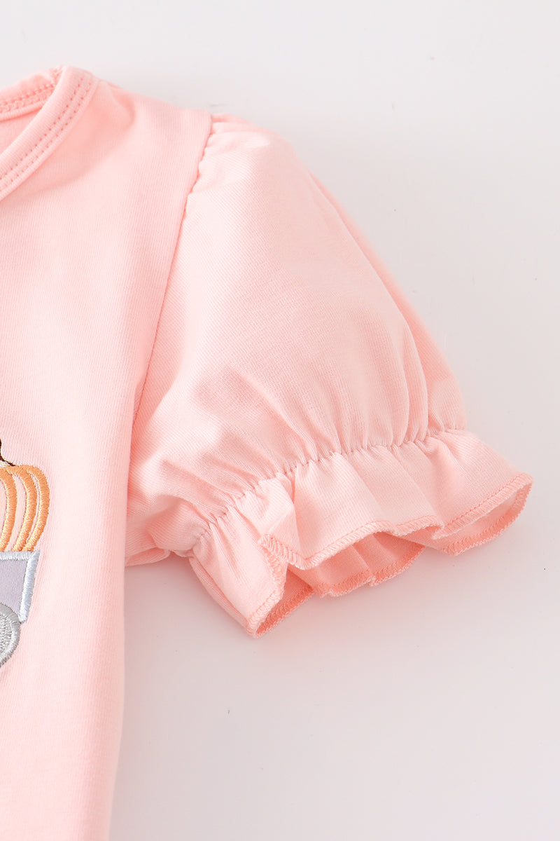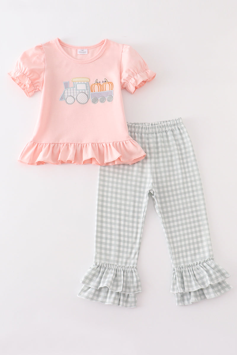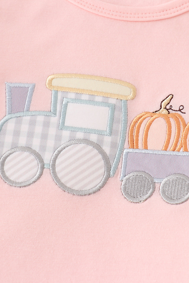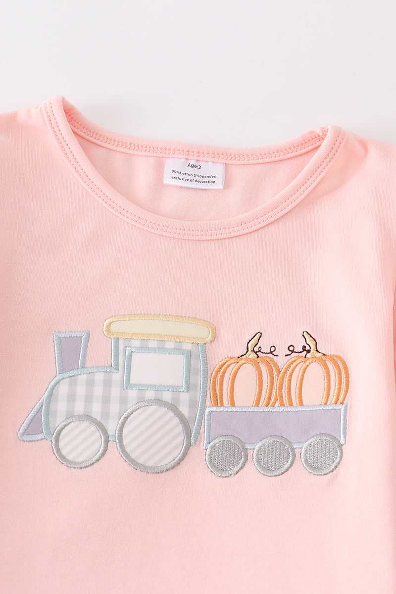 Beige train pumpkin applique girl set