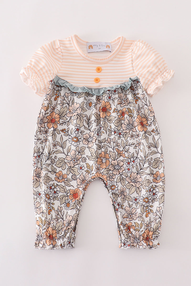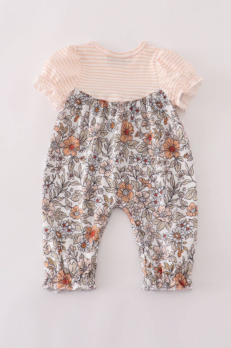 Add a touch of vintage charm to your little one's wardrobe with our Beige Vintage Floral Girl Romper. Perfect for any occasion, the romper features a unique and stylish floral design. Your little fashionista is sure to stand out in this playful and fun romper!