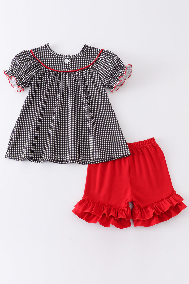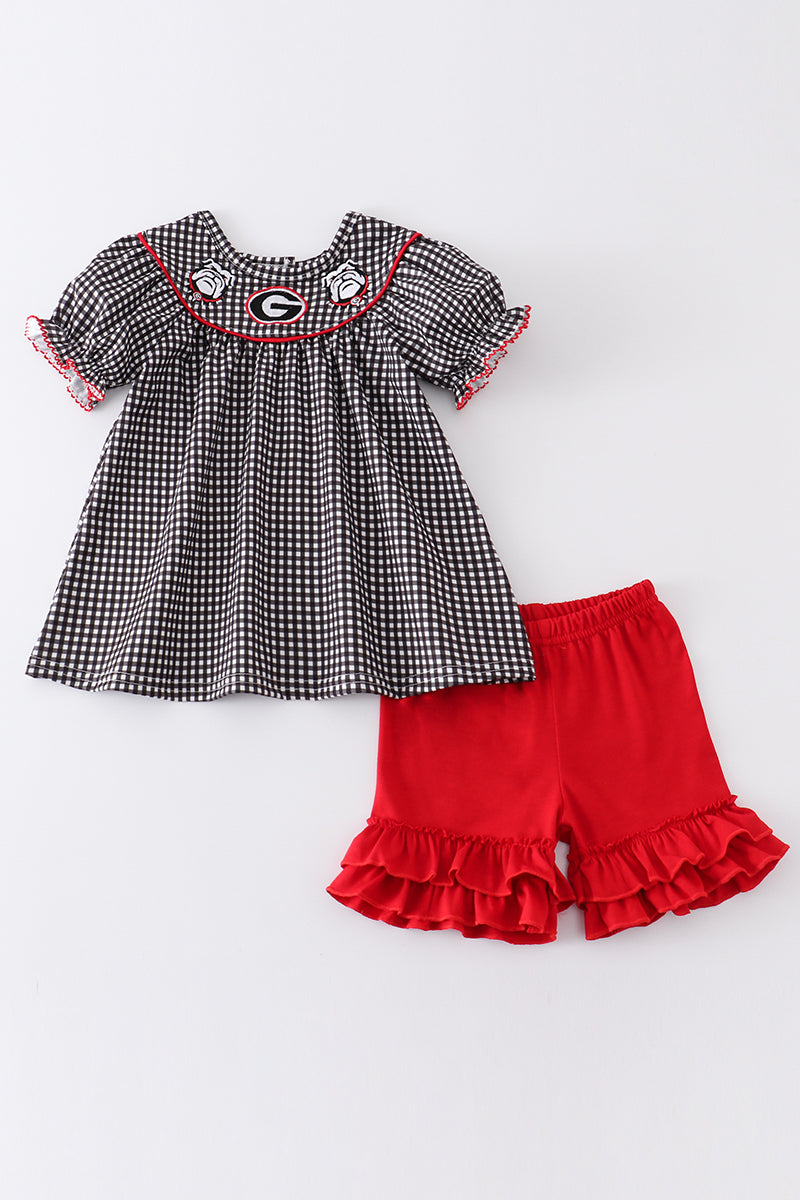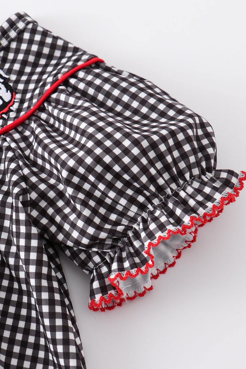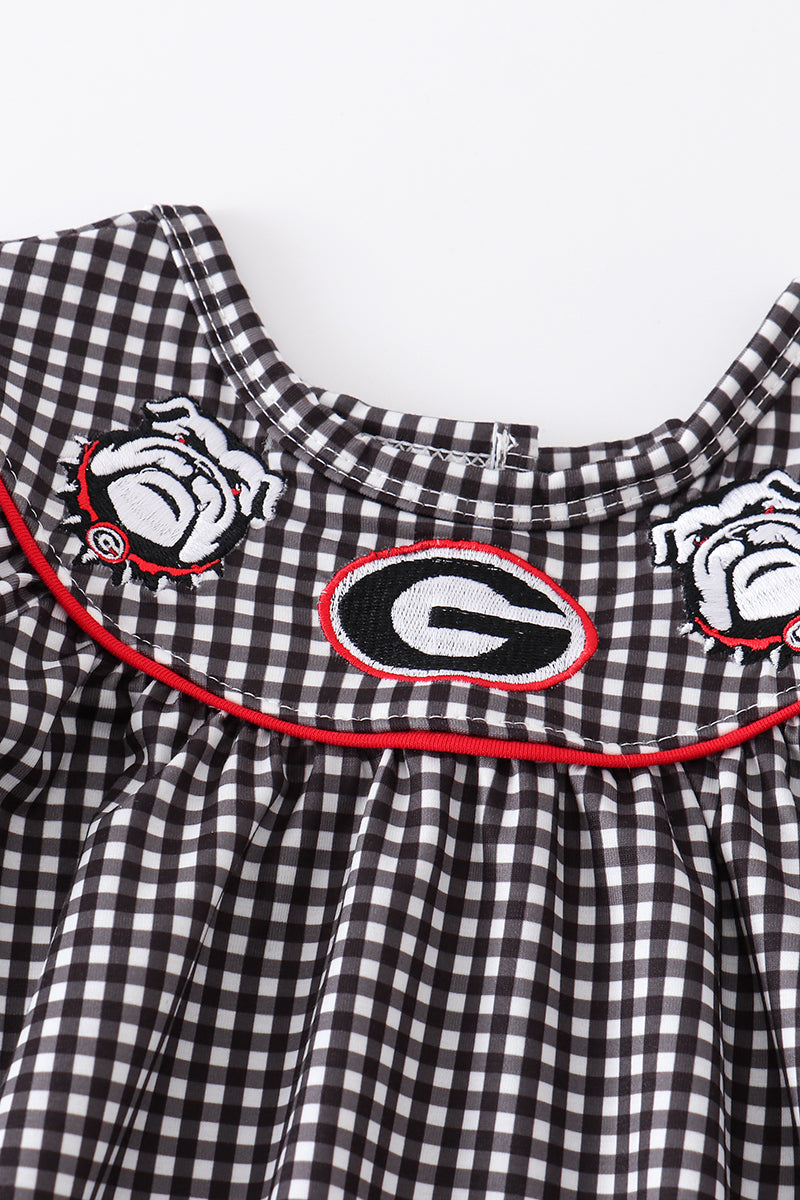 This black gingham bubble is embroidered with a touch of Georgia charm. Perfect for the playful little girl, it's both stylish and unique. Comfortable and cute, it'll be her new favorite outfit!