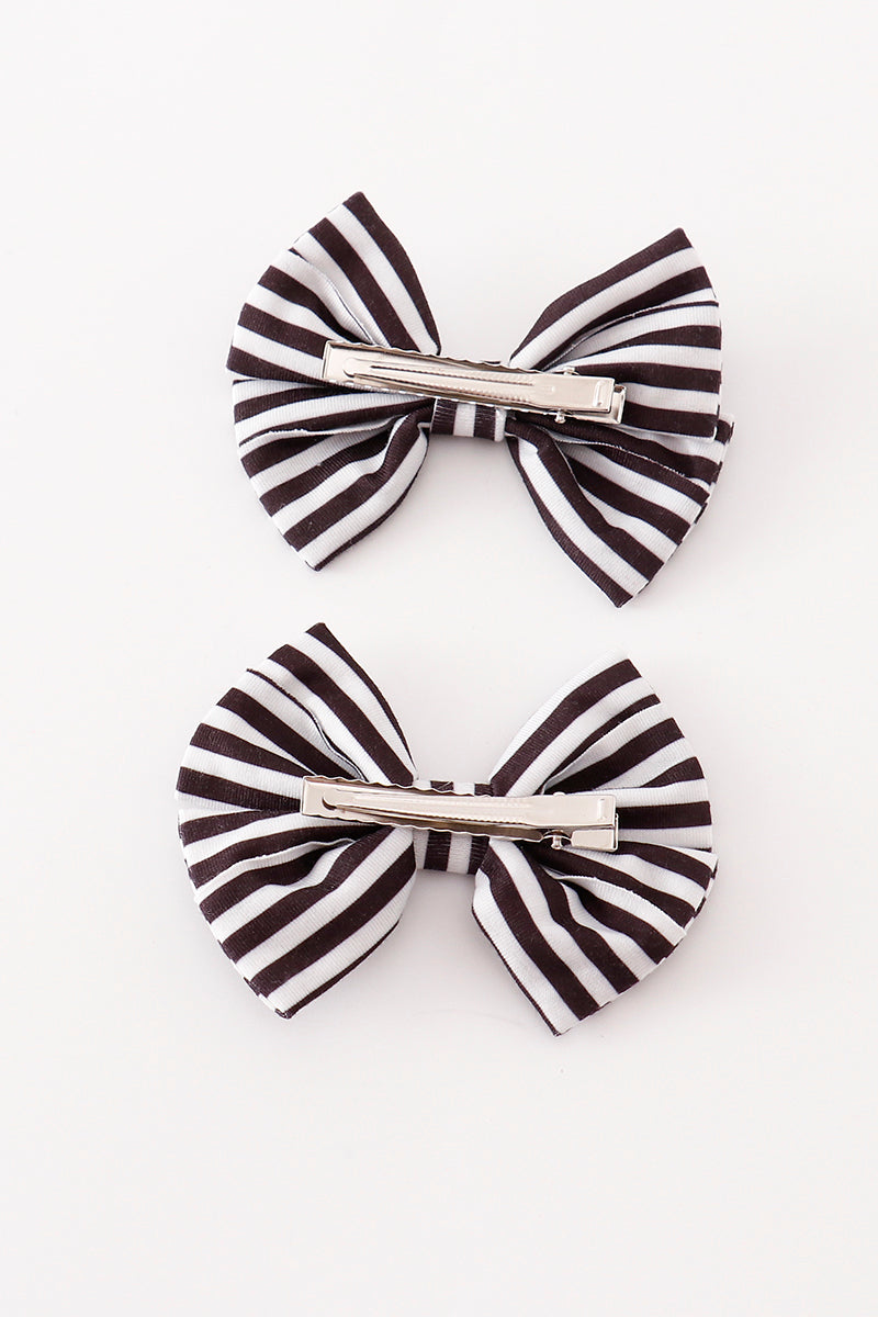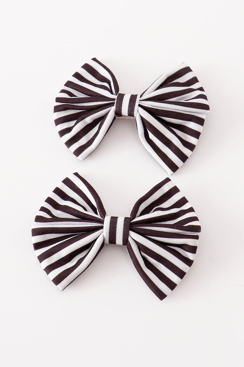 Add some whimsy and playfulness to your hair with our Black Stripe Piggie Hair Bow! This unique accessory features a quirky pig design on a classic black stripe pattern. Perfect for adding a touch of fun to your outfit.