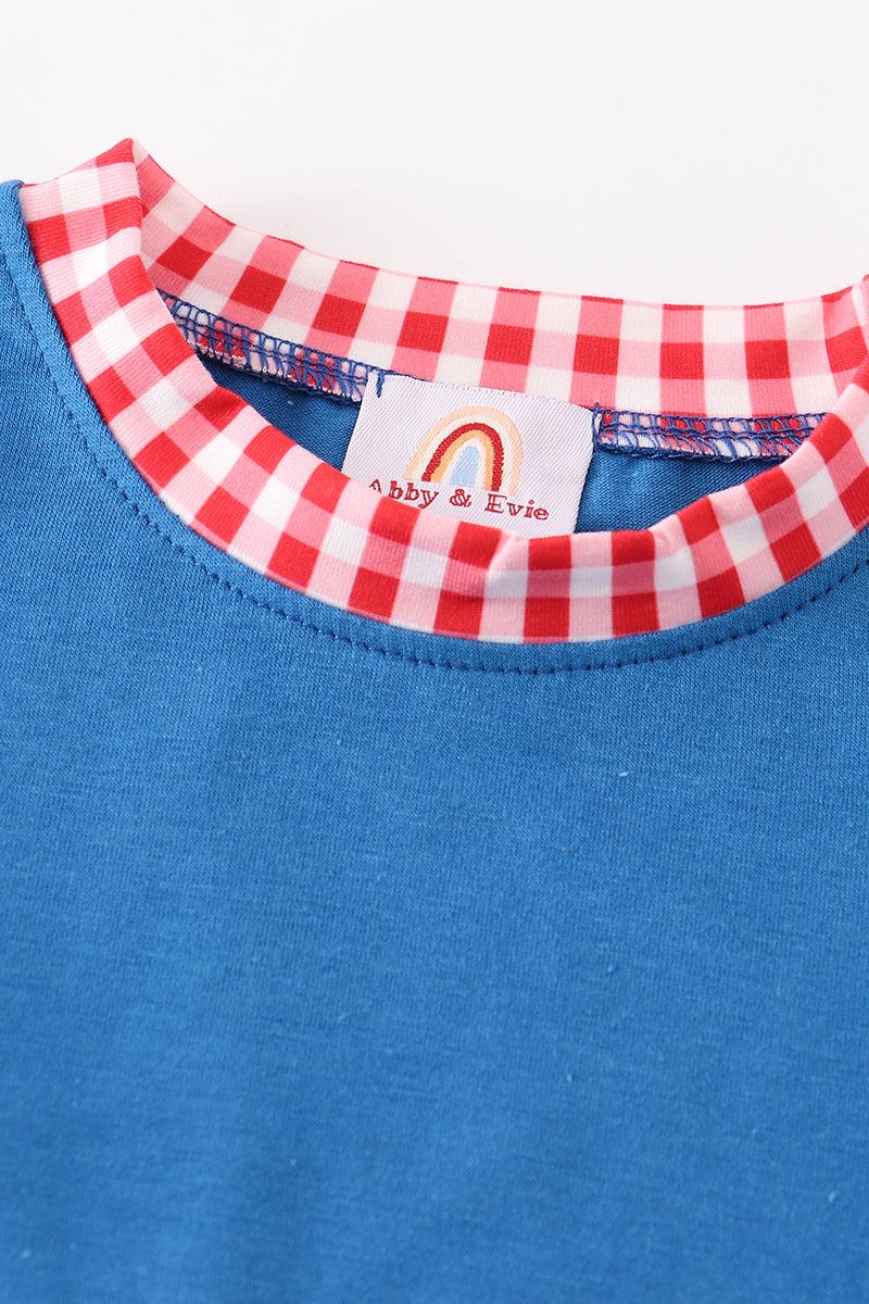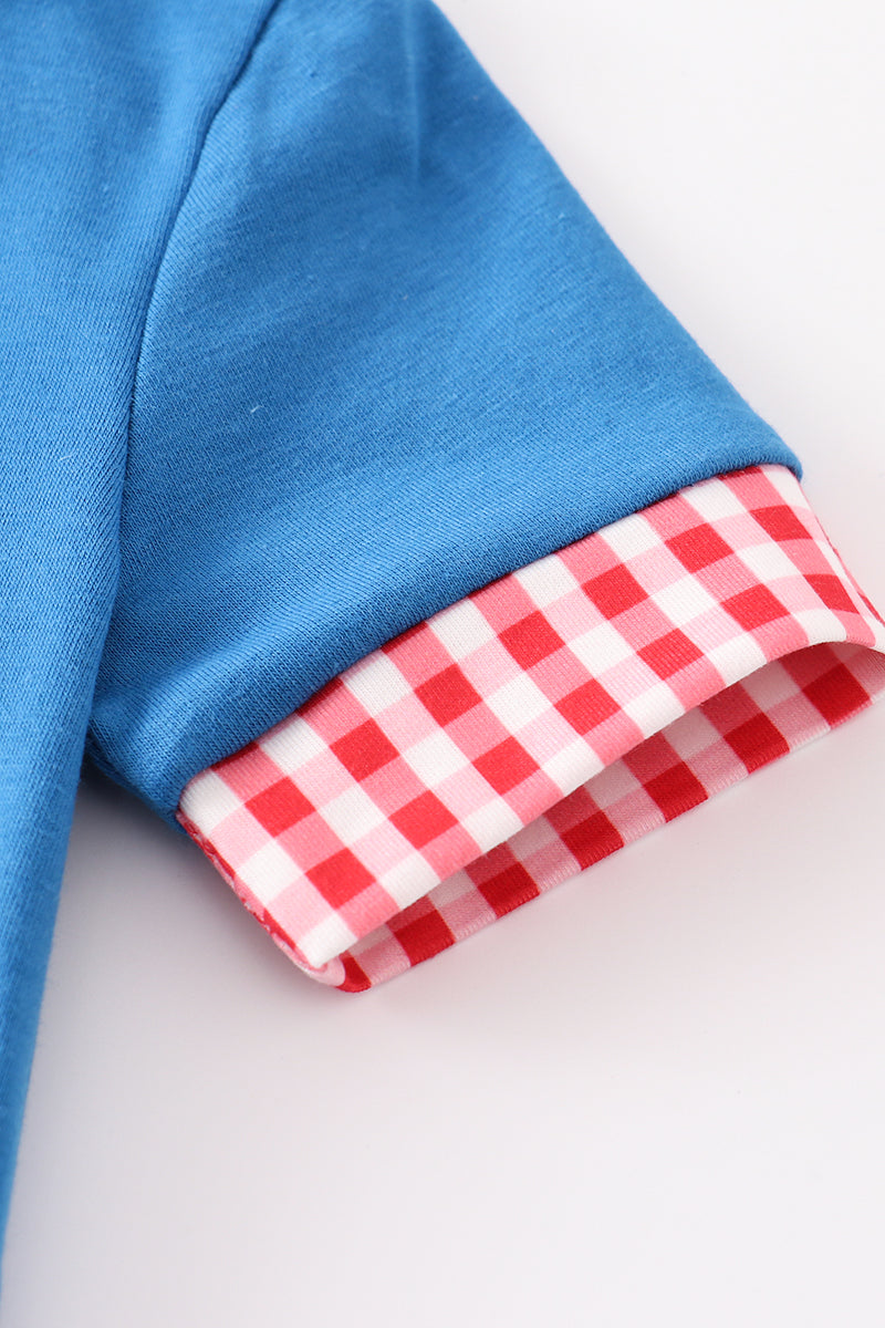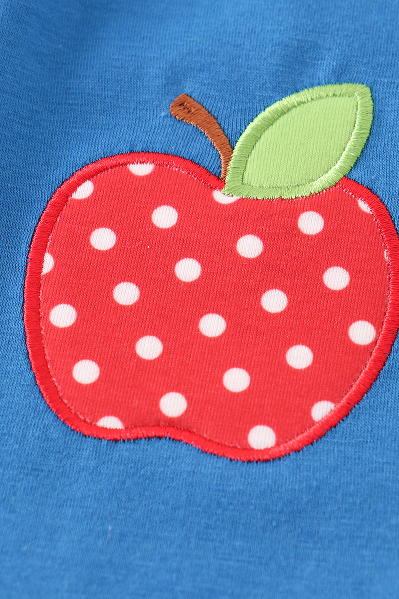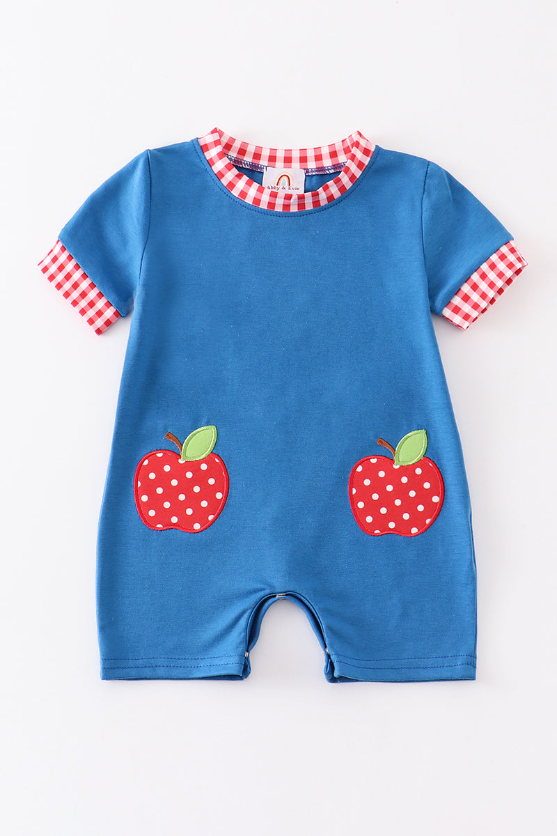 Blue apple applique back to school boy romper