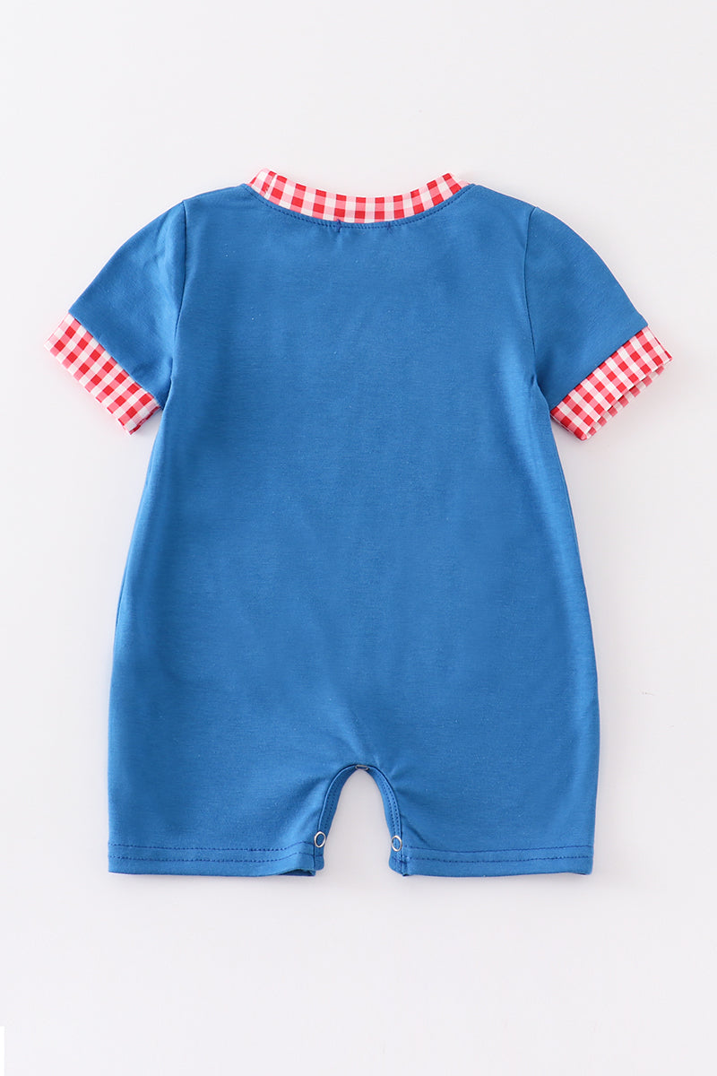 Get your little scholar ready for class with our blue apple back to school boy romper! This romper features a playful apple applique design and is perfect for the first day of school. Made with high-quality materials, it's comfortable for your little one to wear all day. A fun addition to your back to school wardrobe!
