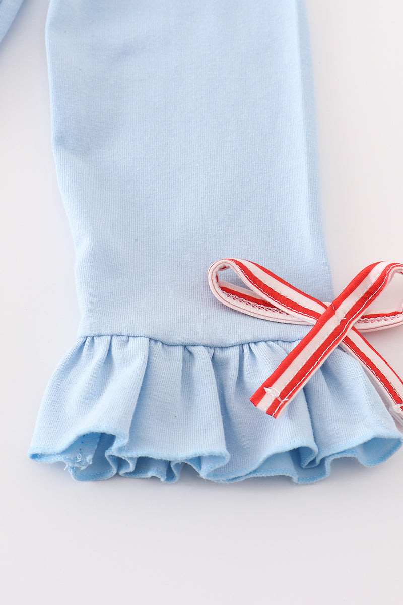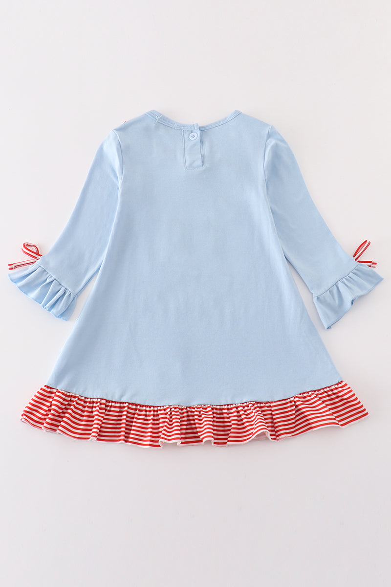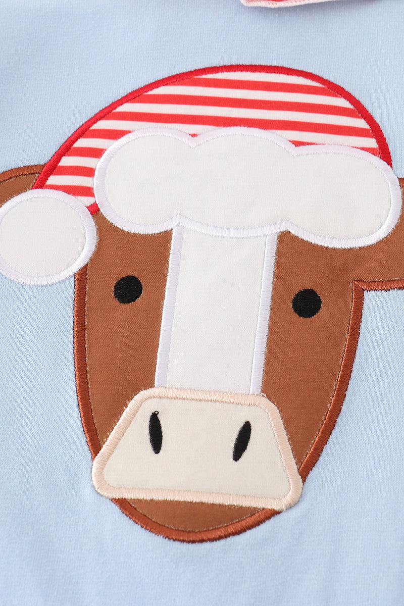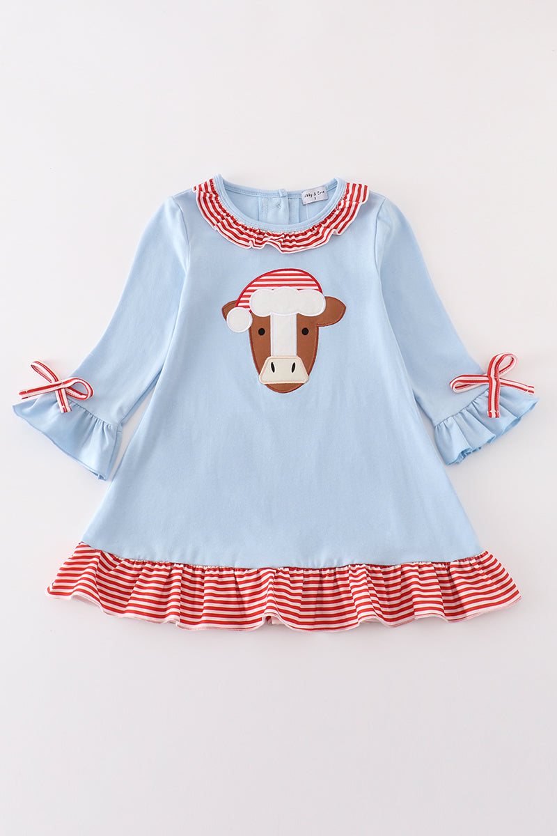 This adorable blue dress will have your little girl moo-ving and grooving at all your holiday events. With a festive cow applique, she'll be the cutest cowgirl in town. Perfect for playdates, pictures, and spreading holiday cheer. Yee-haw!