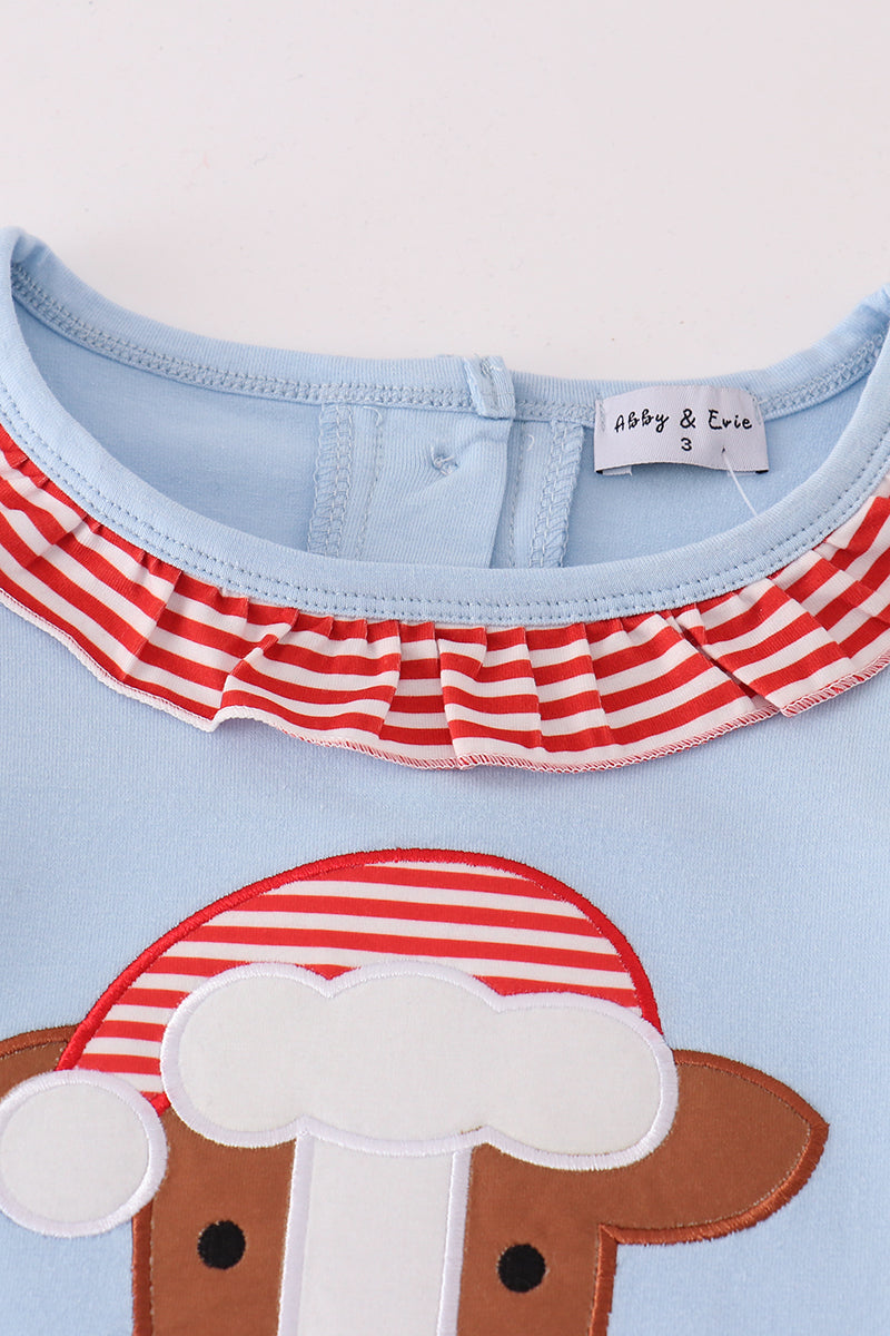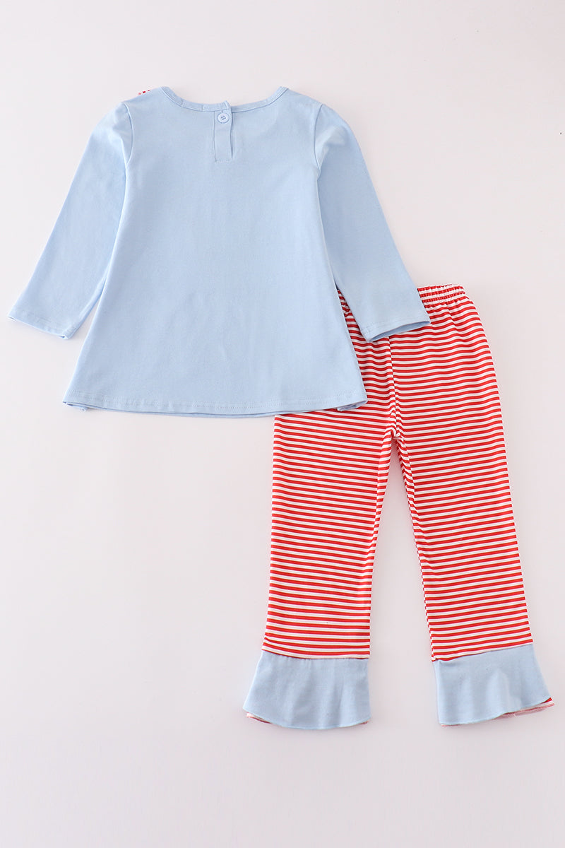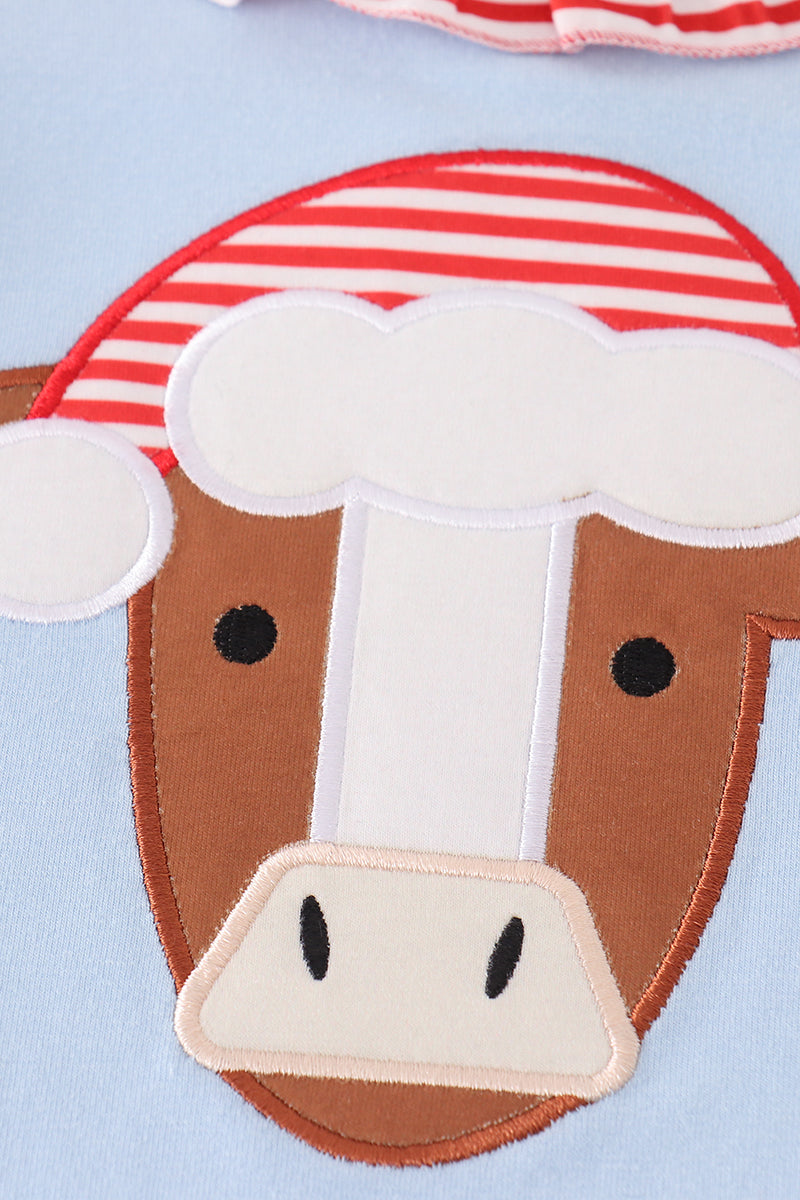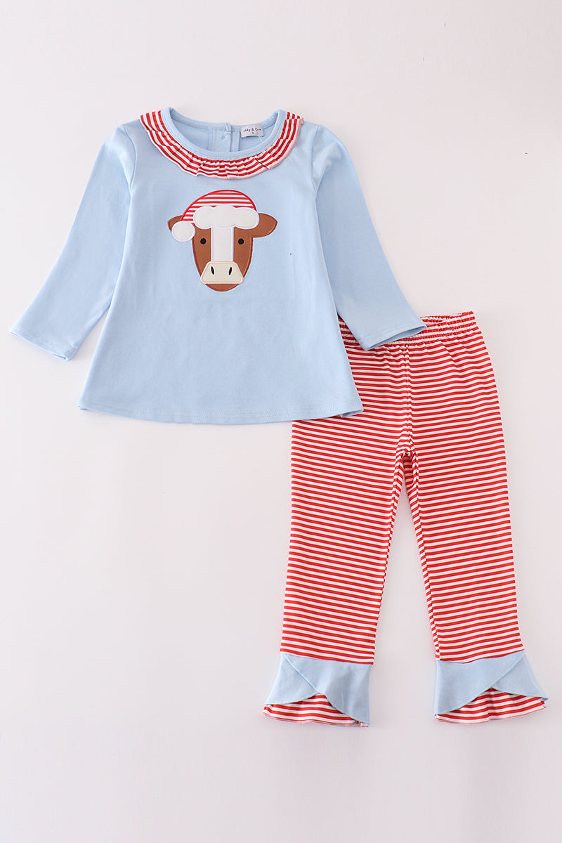 Get ready to mooove into the holiday spirit with this Blue Christmas Cow Applique Girl Set! The charming cow design adds a playful touch to the classic blue color, making this set a fun addition to your little one's winter wardrobe. Perfect for spreading holiday cheer (and cow puns) this season!