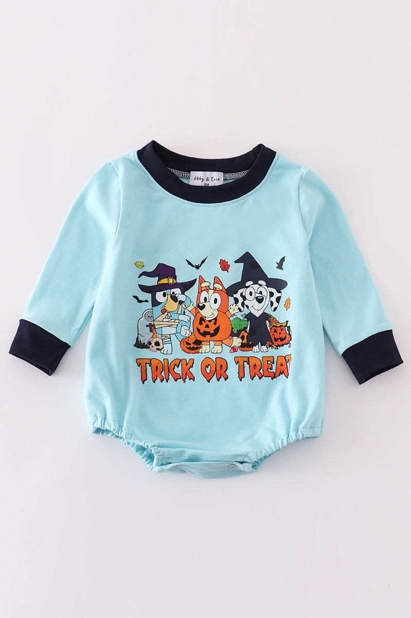 This romper is a spooky yet adorable choice for your little one's Halloween outfit. With a charming blue color and fun character design, it's perfect for any Halloween party or trick-or-treating adventure. Made from comfortable fabric, your little boy will love showing off his unique style.