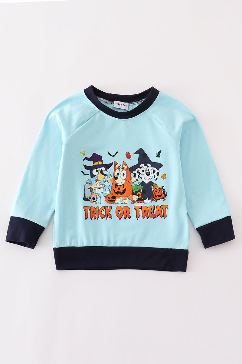 Get ready to spook up the season in style with this blue halloween character boy top! With its fun and quirky design, this top will have your little one standing out from the crowd. Perfect for trick-or-treating or a Halloween party, this top will add a playful touch to any outfit.