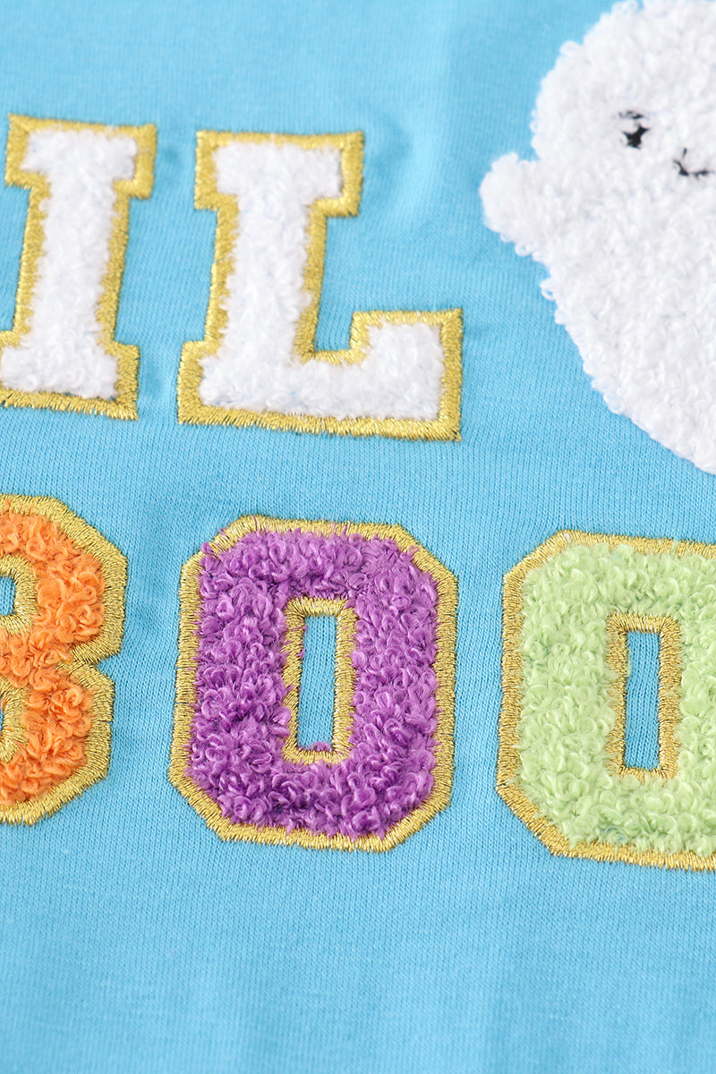 Blue halloween LIL BOO chenille patch boy bubble