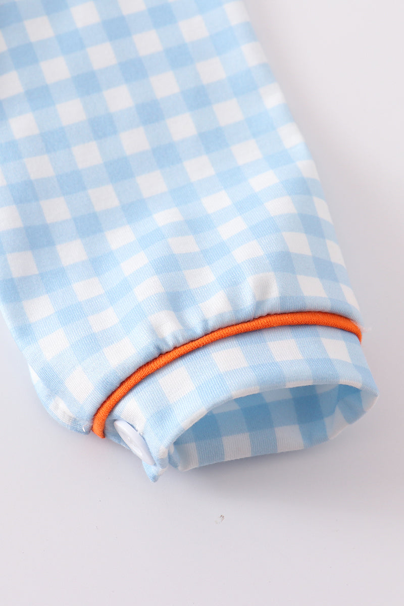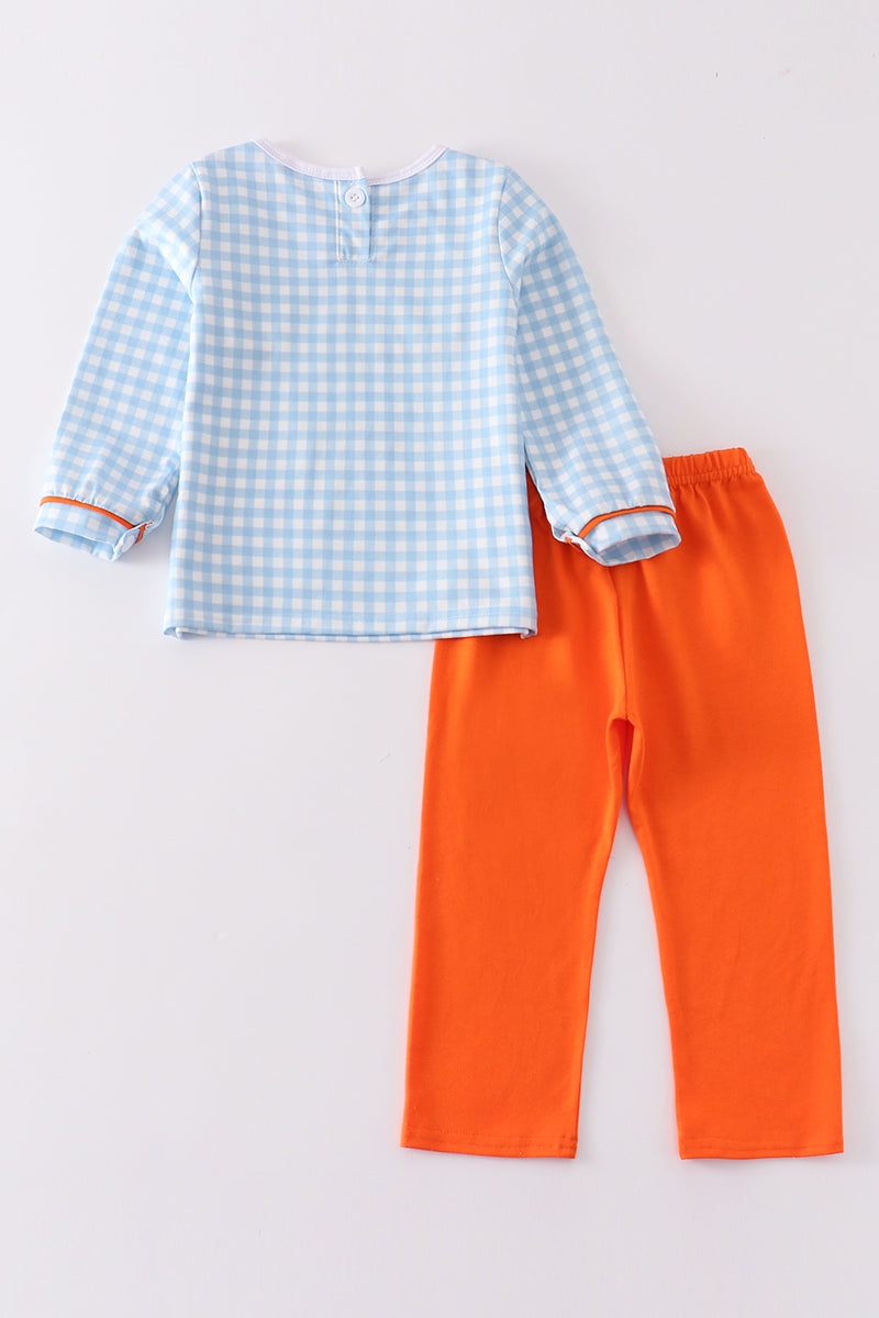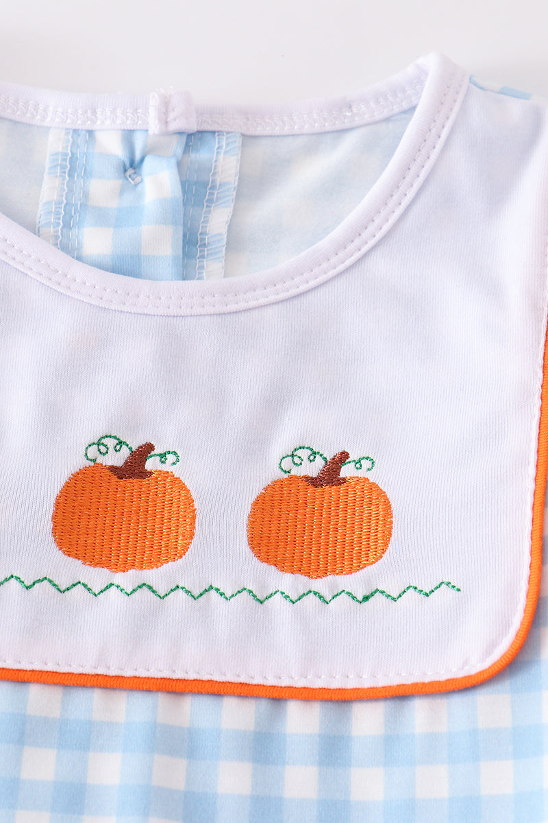 Get your little one ready for fall with this adorable Blue Plaid Pumpkin Embroidery Boy Set! Featuring a playful pumpkin embroidery on a classic blue plaid background, this set is perfect for any autumn occasion. Get yours now and make them the cutest pumpkin in the patch!