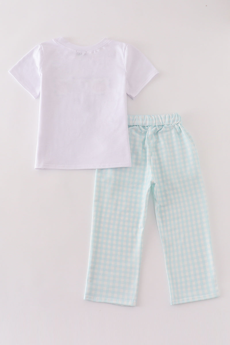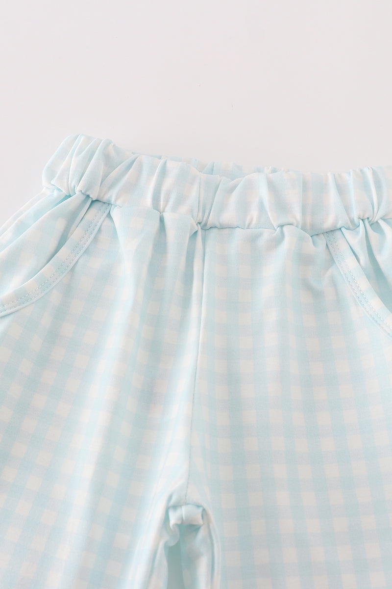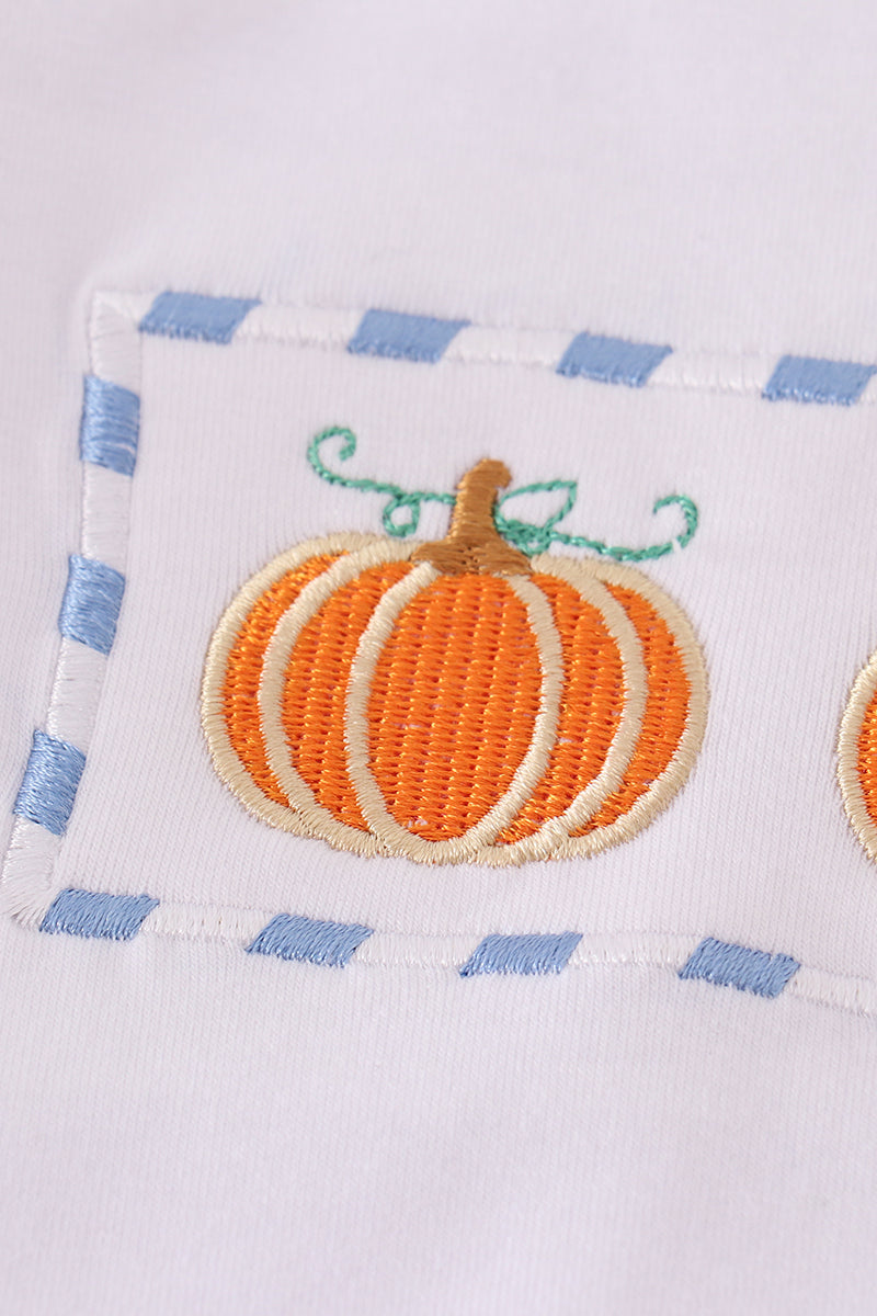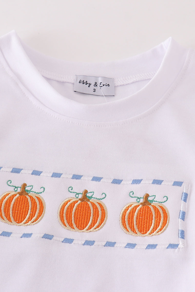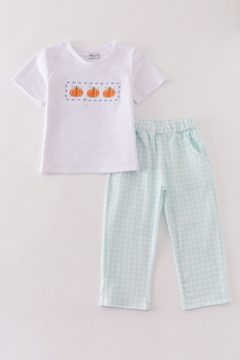 Blue plaid pumpkin embroidery boy set