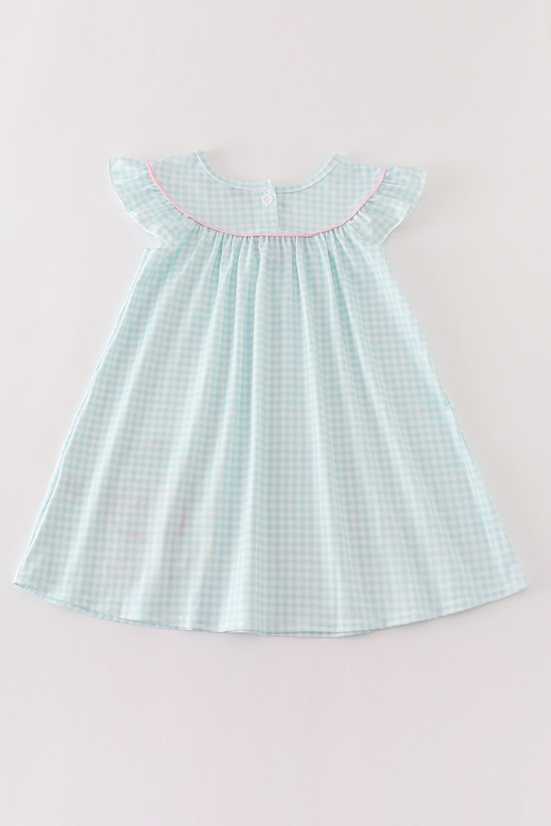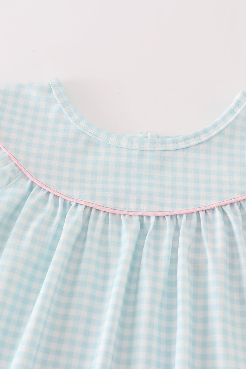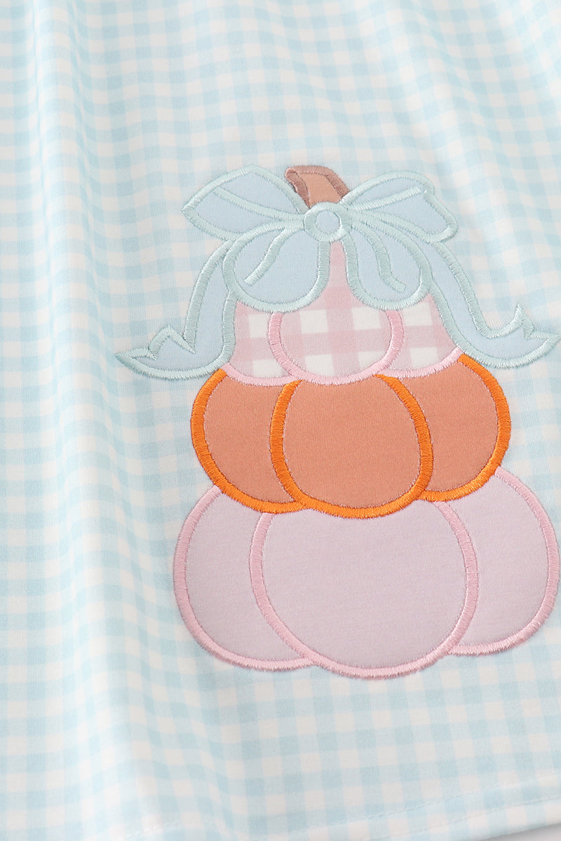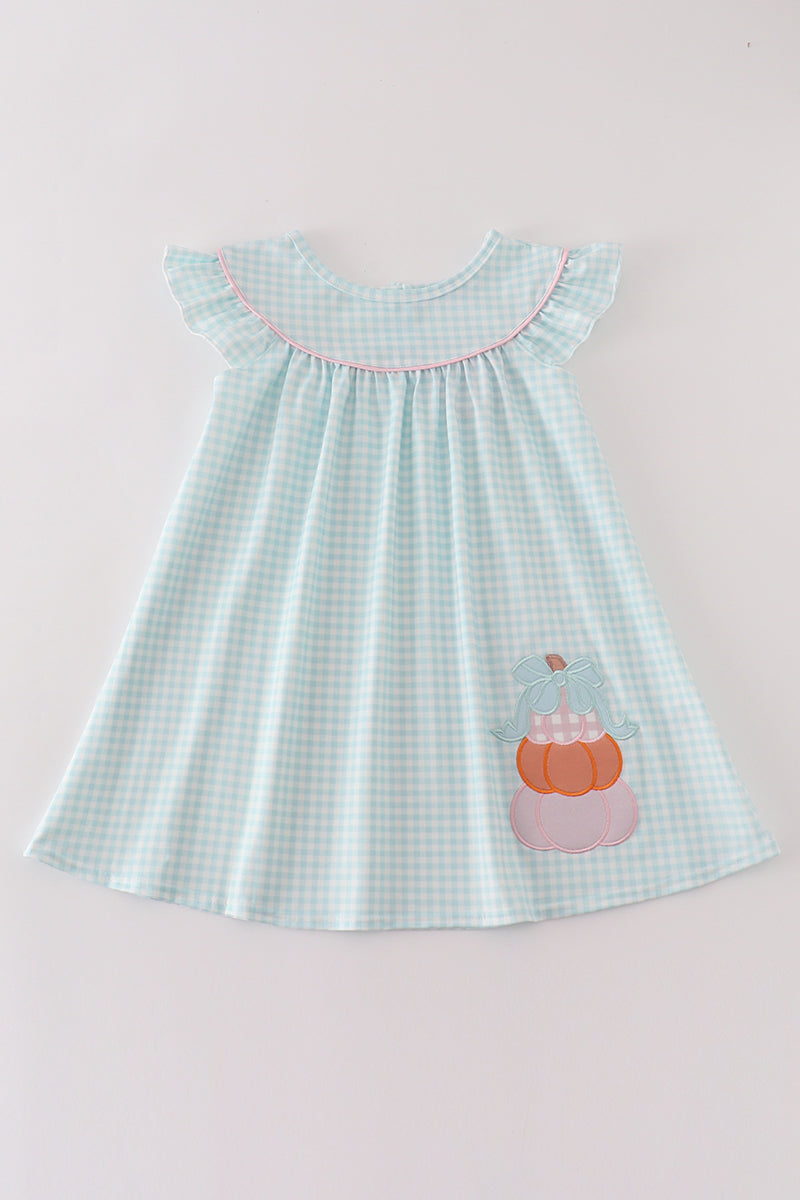 Get ready to turn heads in this playful blue pumpkin applique plaid dress! With its unique design and charming details, this dress is sure to make a statement. Perfect for any occasion, you'll feel confident and stylish in this fun and quirky piece. (Pun intended!)