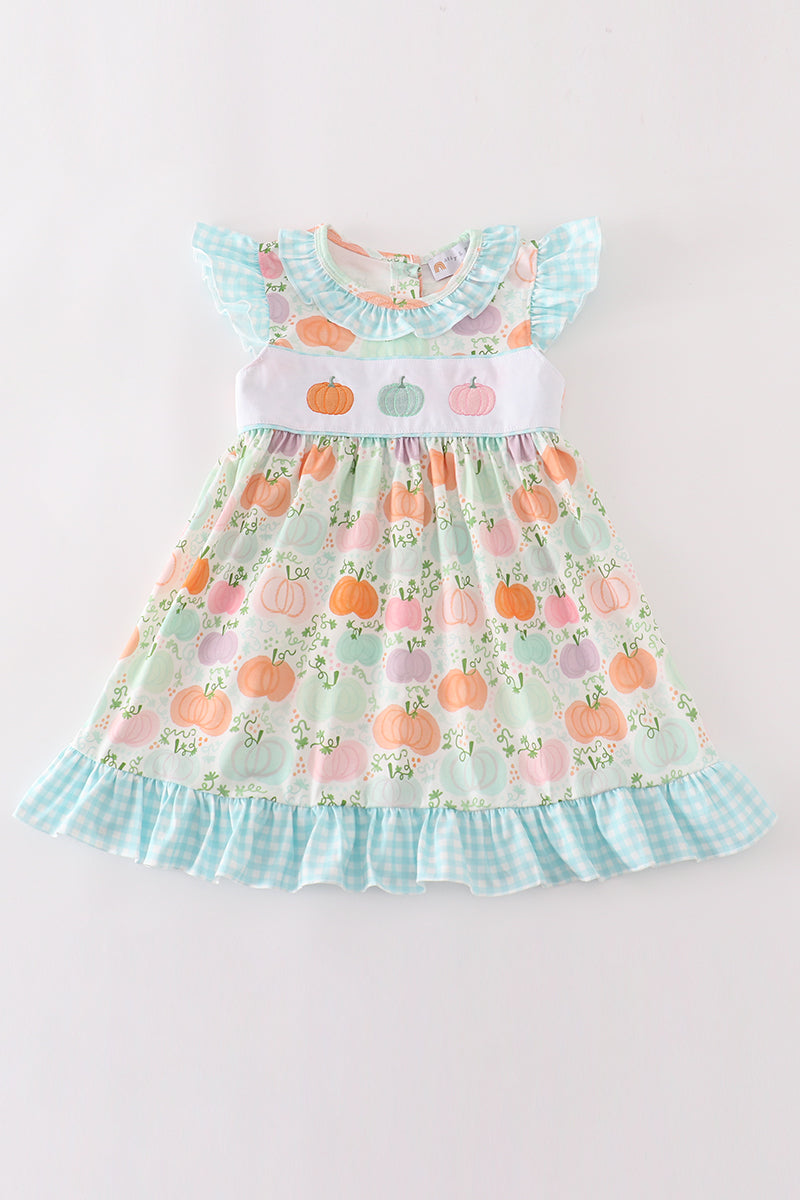 Get ready to turn heads with our playful blue pumpkin embroidery ruffle dress! This unique dress features intricate pumpkin embroidery and fun ruffle detailing that will make you stand out in any crowd. Perfect for adding a touch of fun to your wardrobe.