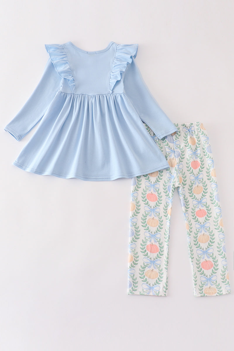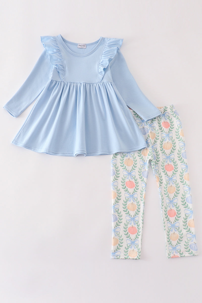Blue pumpkin print girl set