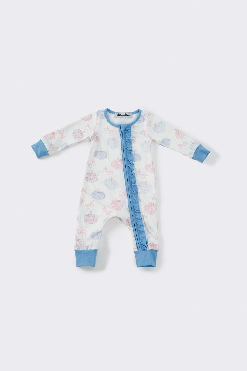 Blue pumpkin print girls romper