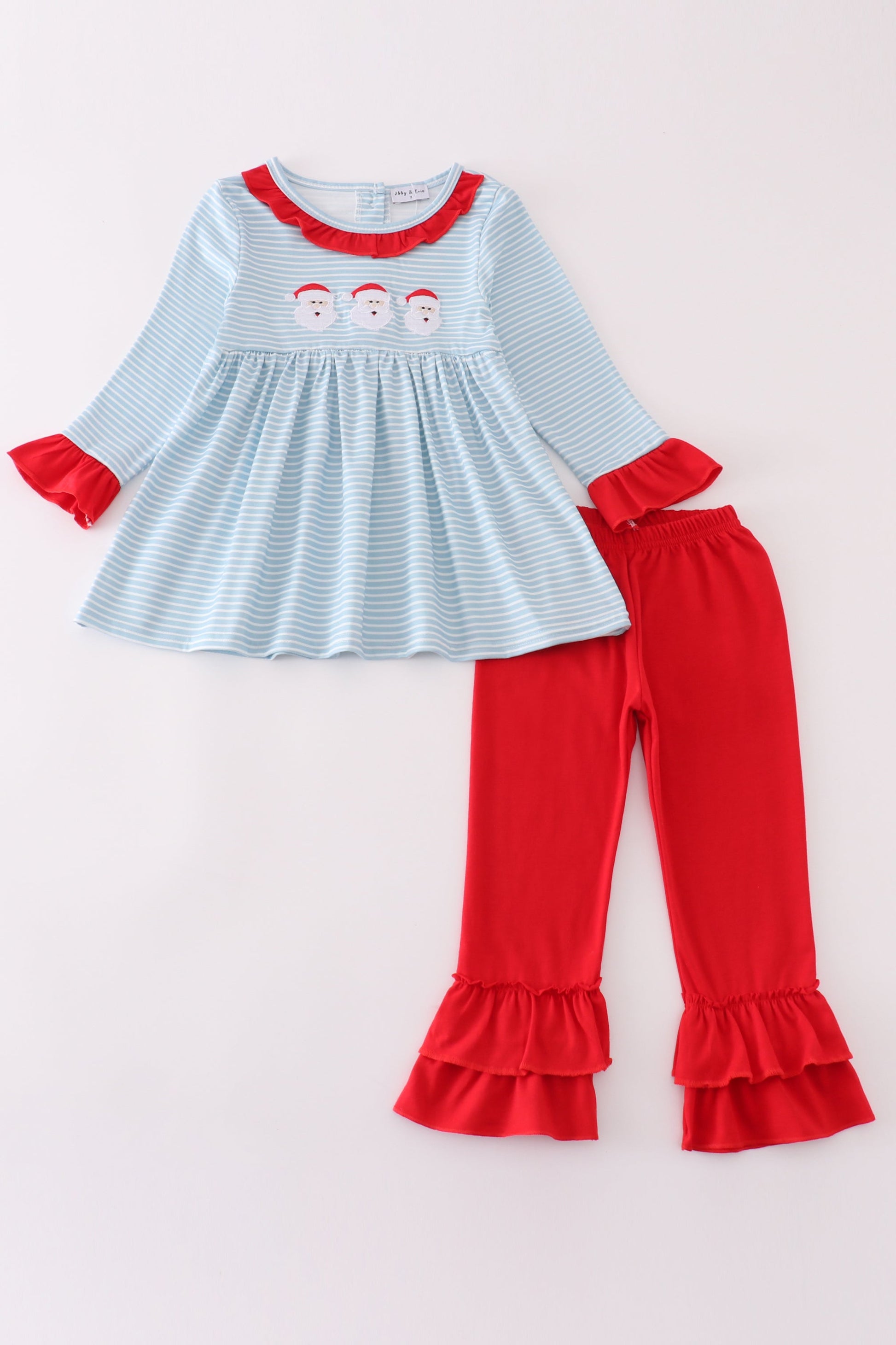 Get into the holiday spirit with our Blue Stripe Christmas Santa Embroidery Girl Set! This playful and quirky set is sure to put a smile on anyone's face. Featuring blue stripes and festive embroidery, it's the perfect outfit for your little one this holiday season. (And Santa will definitely approve!)