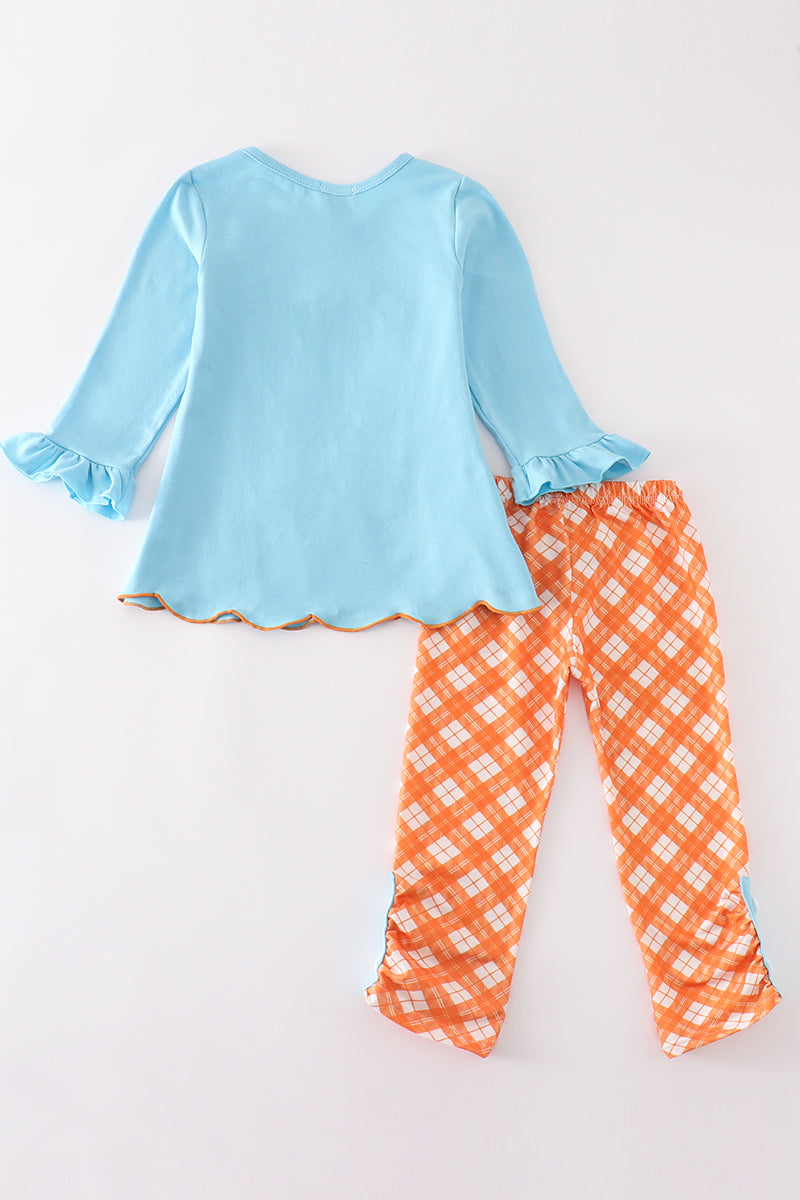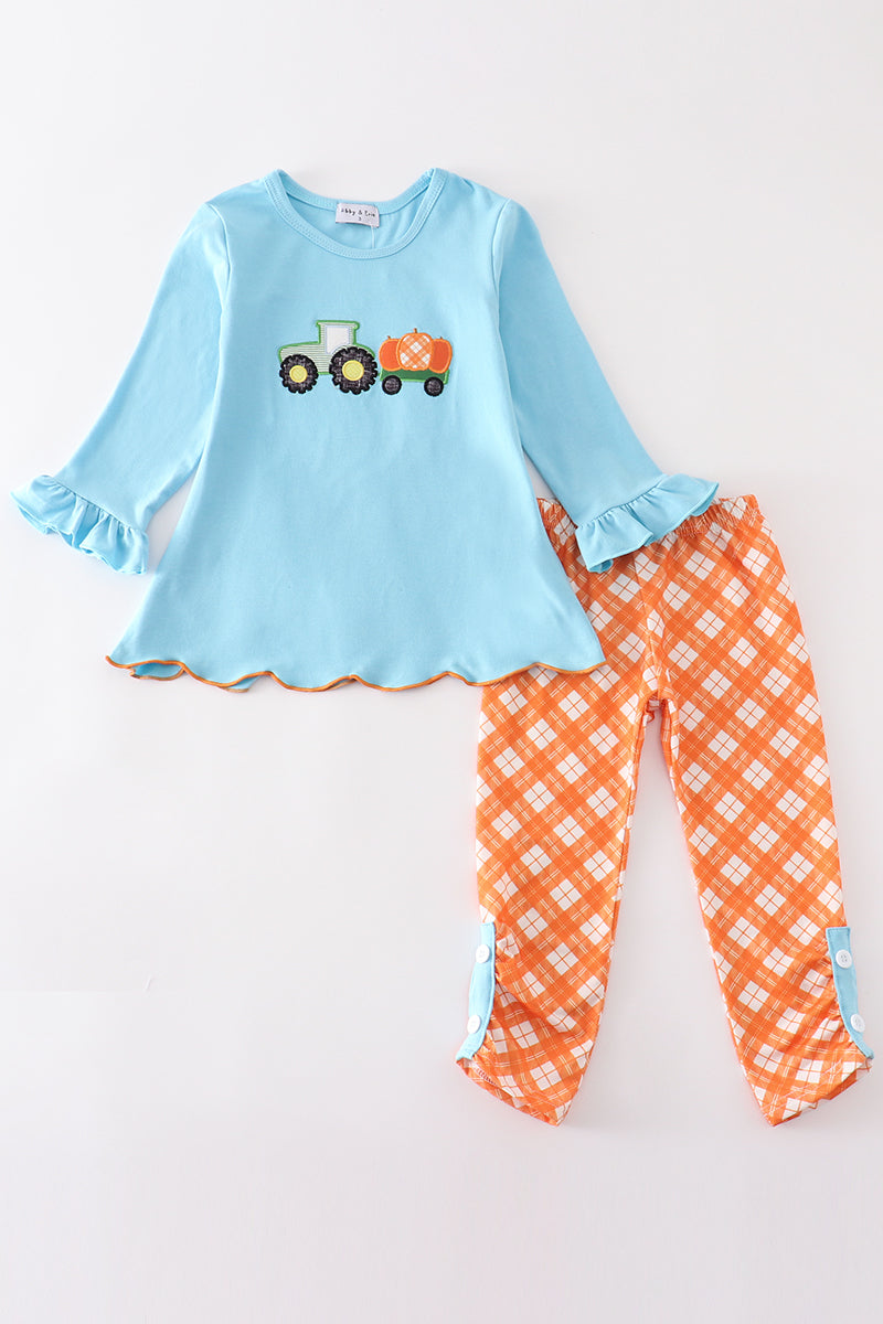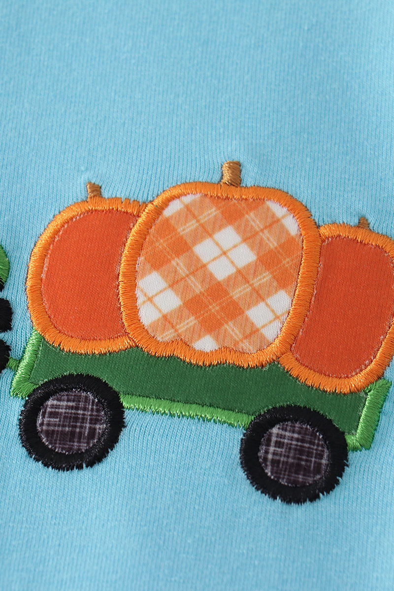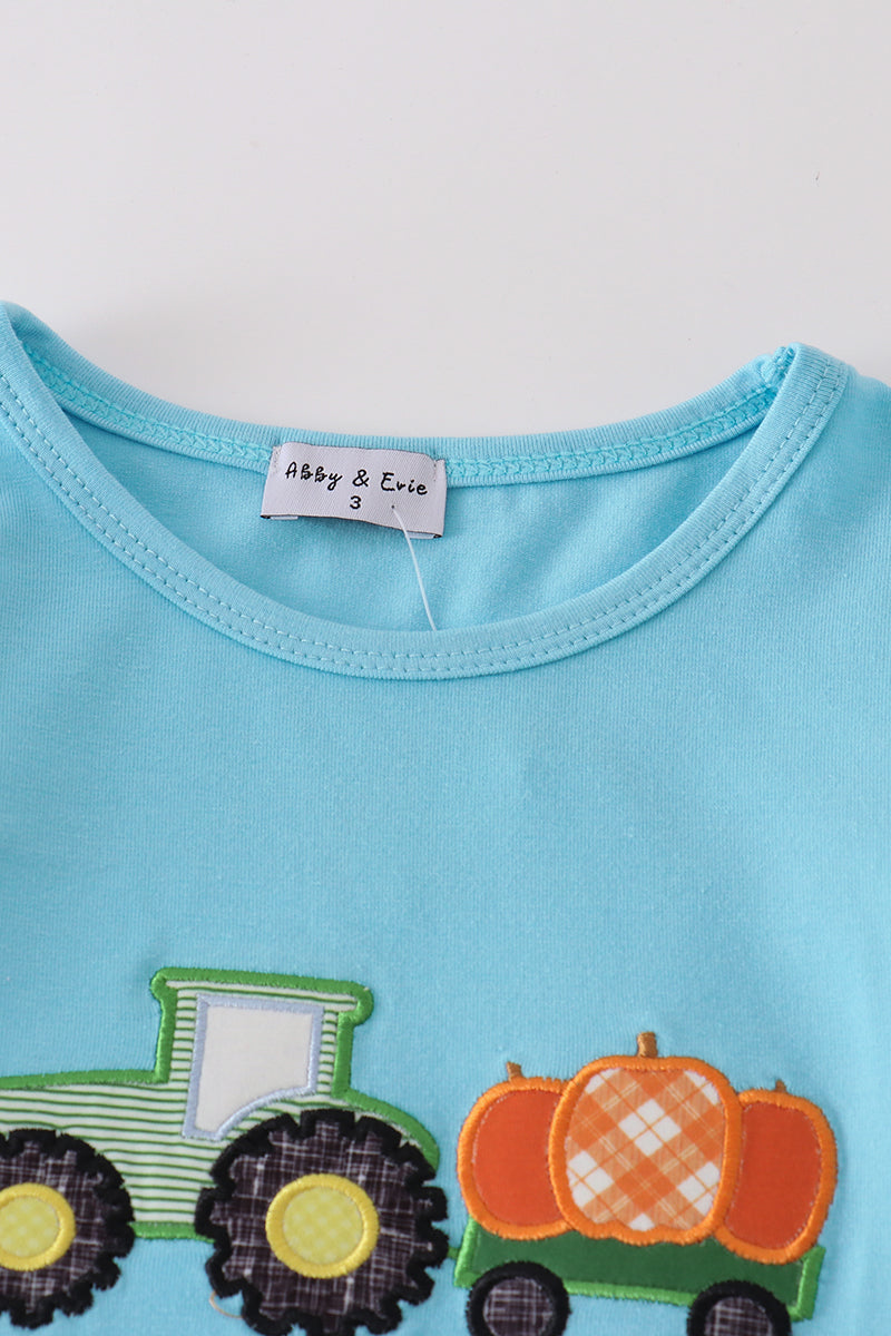 Get ready for fall with our Blue Truck Pumpkin Applique Girl Set! This adorable set features a playful blue truck and a cute pumpkin applique. Perfect for any little girl's wardrobe, this set is sure to be a hit. (Pumpkin spice lattes not included!)