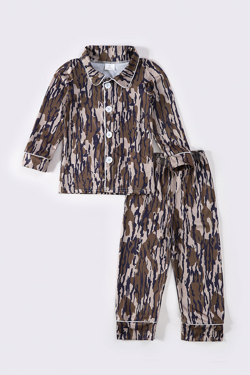 Gear up for a good night's sleep with our camouflage boy pajamas set. Perfect for adventurous dreamers, this set is both cozy and cool. Stand out from the crowd (or blend in, if that's your thing) in these unique and playful PJs. Sleep like a champ in our camo set!