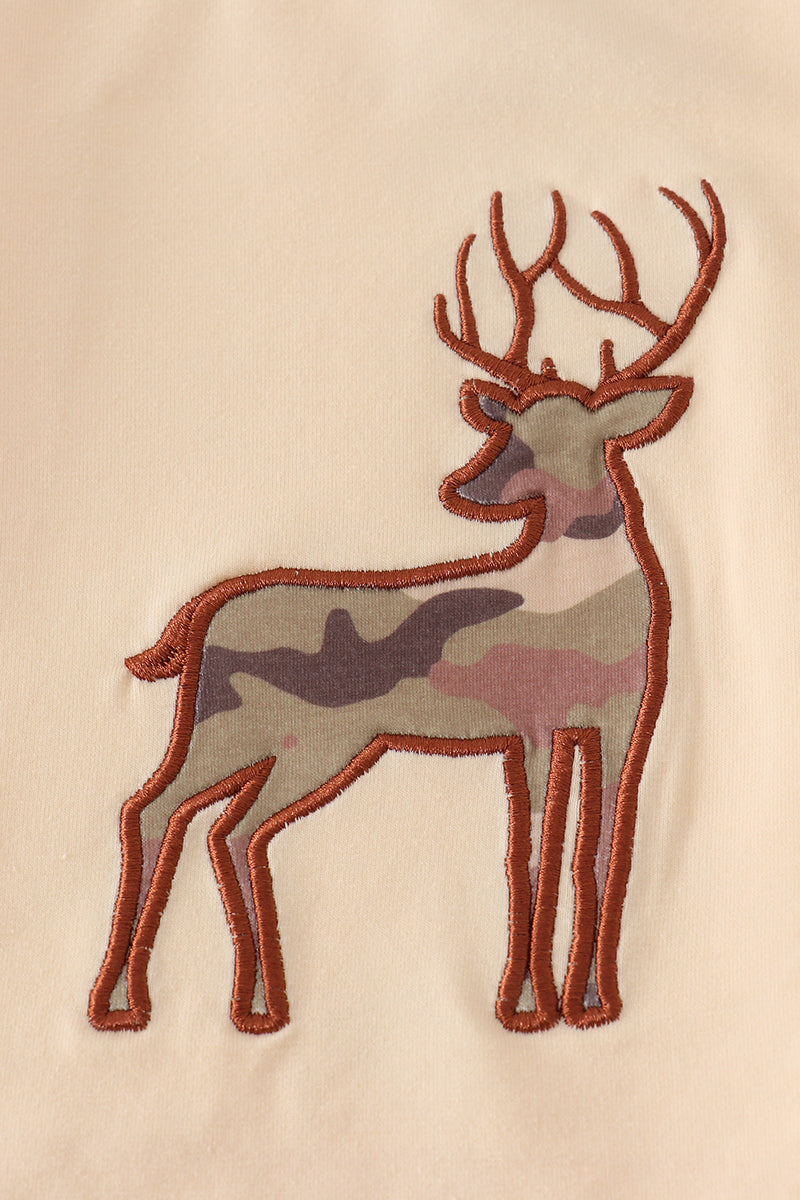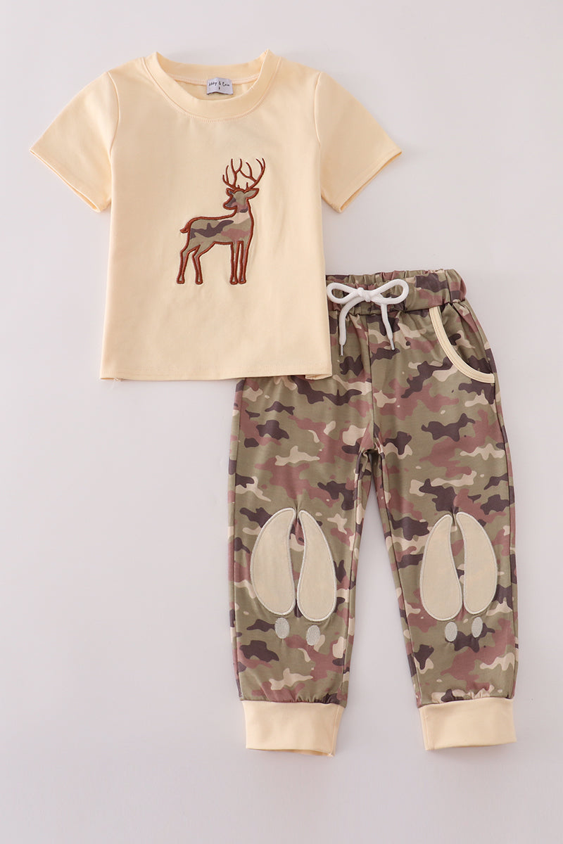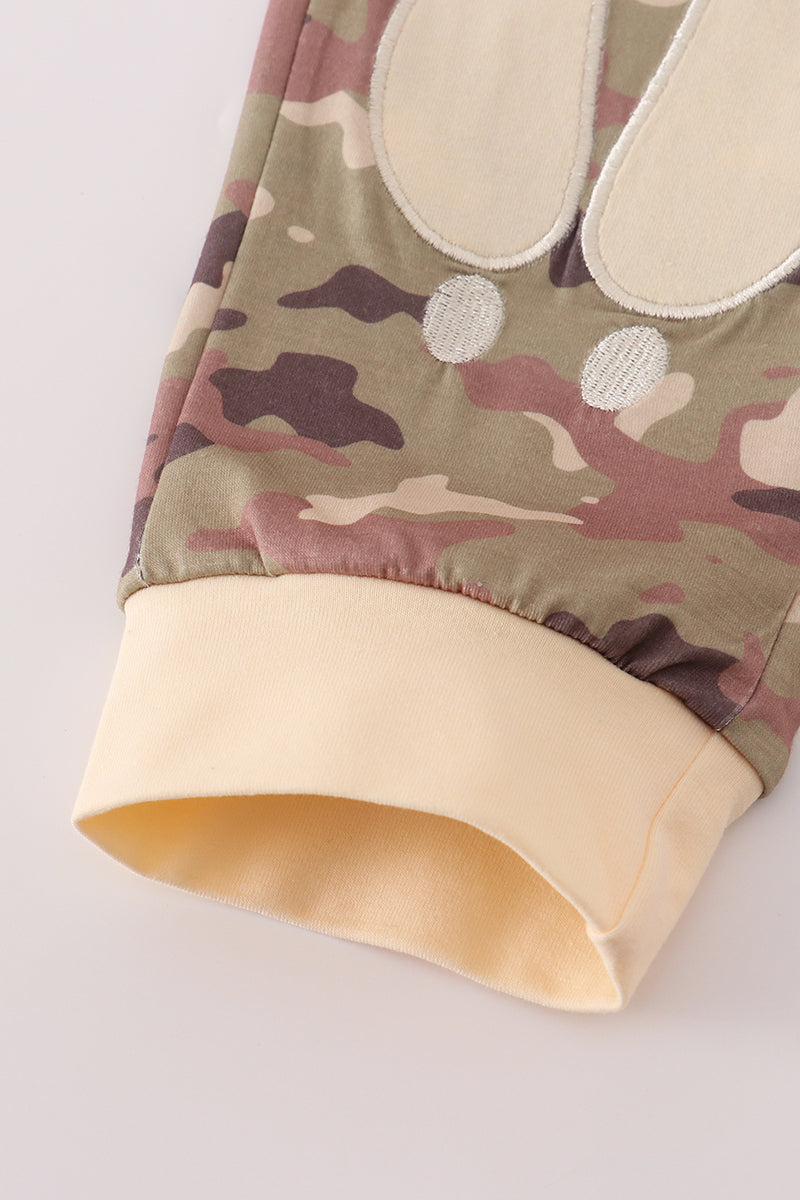 This playful camouflage deer applique pants set brings a fun twist to outdoor style. Featuring charming deer appliques on cozy pants, it’s perfect for little adventurers who love to explore with a touch of whimsy. Comfortable and cute, this set makes every day feel like a woodland adventure.