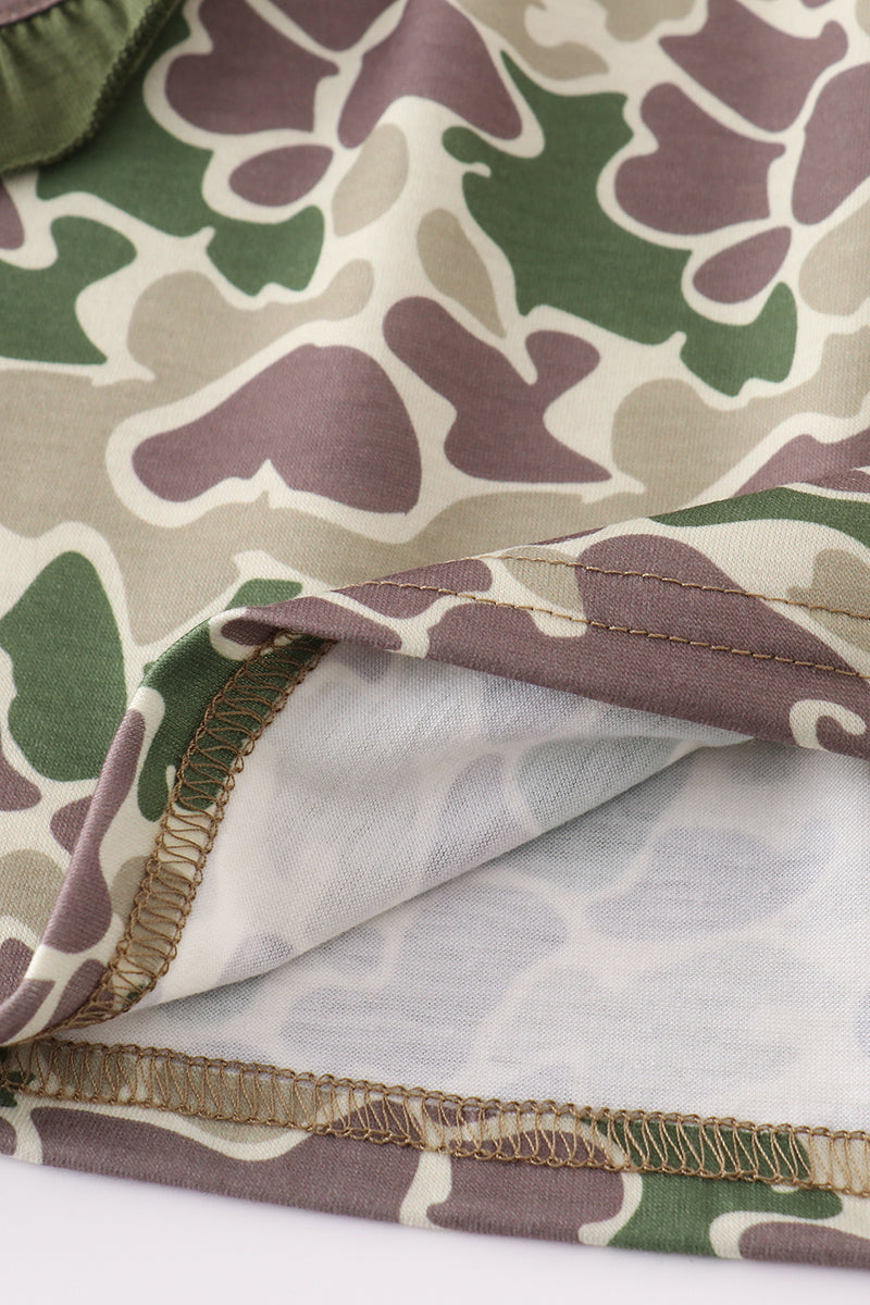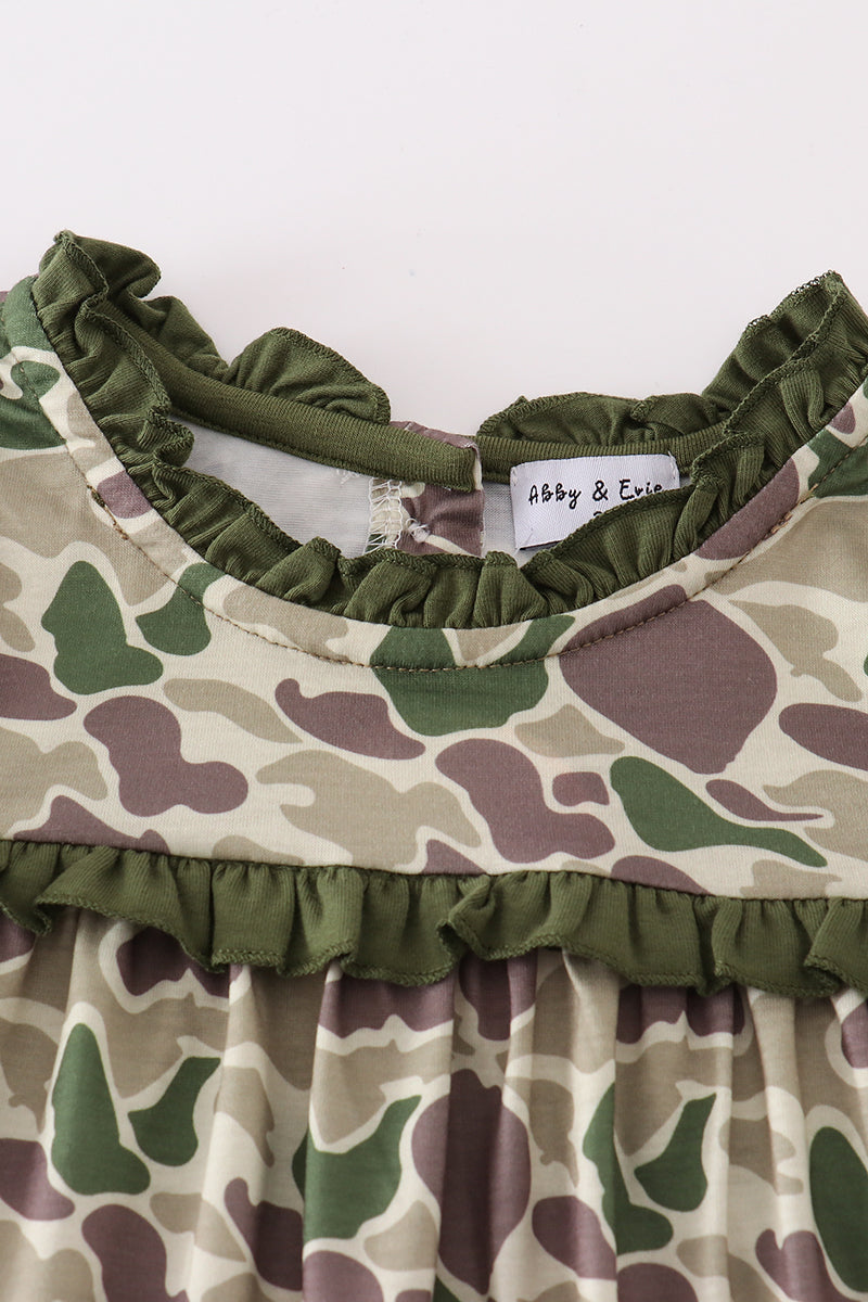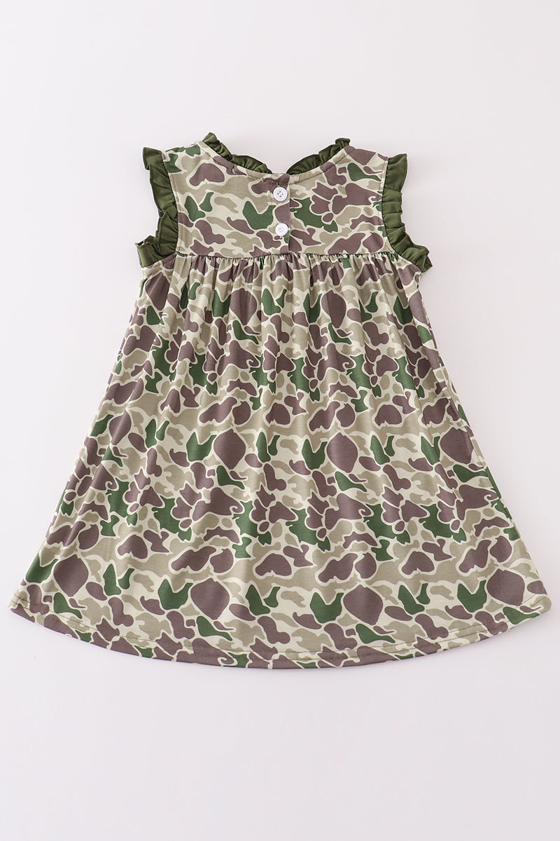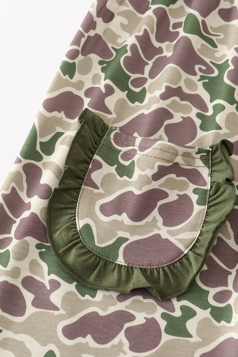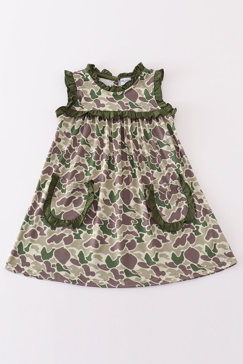 Your little one will blend in and stand out in this playful camouflage print dress! Made of durable fabric, this dress is perfect for any adventure. With a fun and unique design, your child will feel confident and stylish while staying comfortable. Perfect for any little fashionista!