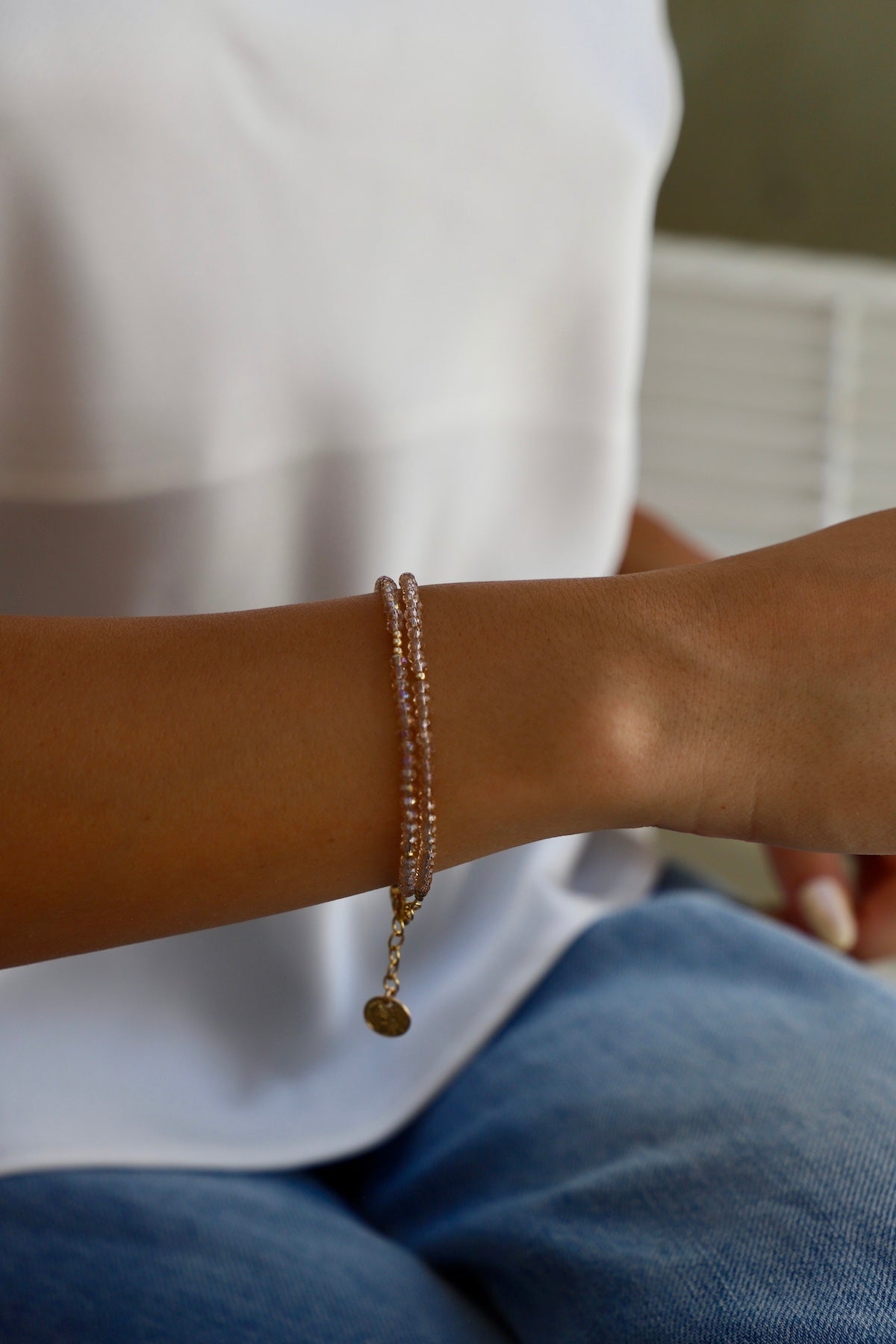 CHAMPAGNE PETITE CRYSTAL DOUBLE WRAP BRACELET