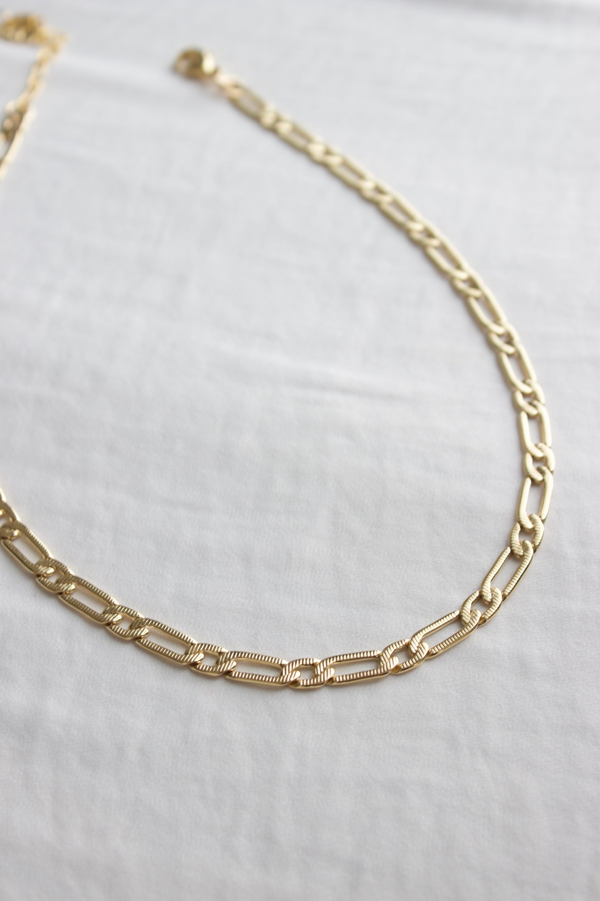 The Cleopatra Chain Necklace is one of our most beloved pieces. Crafted from a brilliant, lightly textured Figaro chain, the Cleopatra Necklace lays flat against your neck, offering both comfort and a polished look. Its radiant gold finish adds just the right touch of luxury to elevate your everyday style or complete a layered stack.