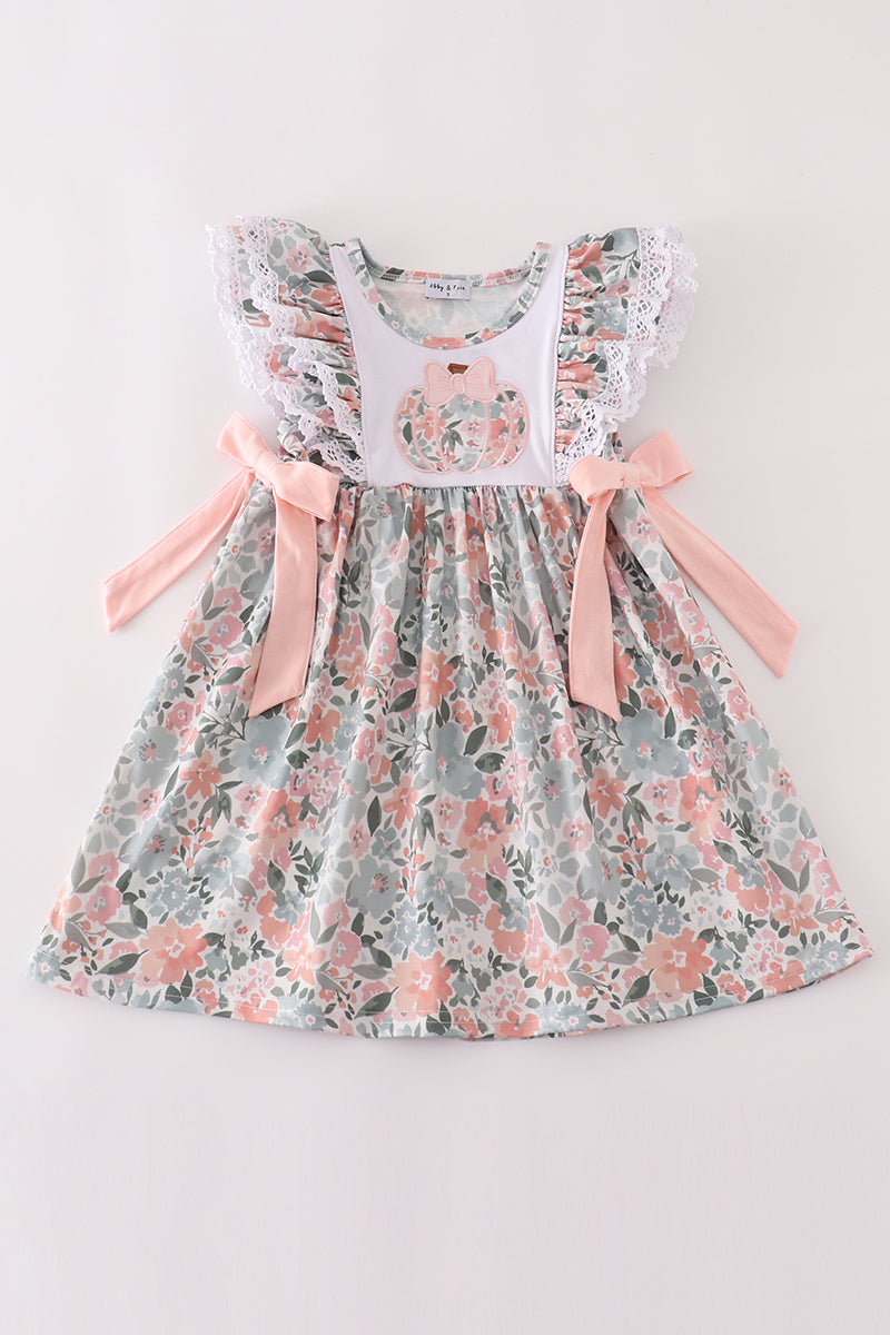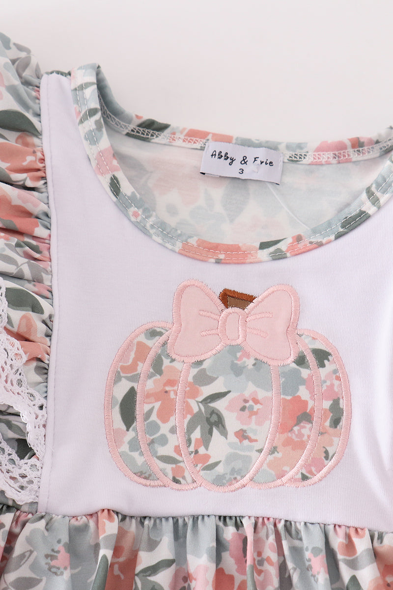 Be the cutest pumpkin in the patch with our Floral Bow Pumpkin Applique Dress! This charming dress features a playful pumpkin applique adorned with a delicate bow and floral accents. Perfect for fall festivities and dress up play, this dress is sure to bring a touch of whimsy to any occasion!