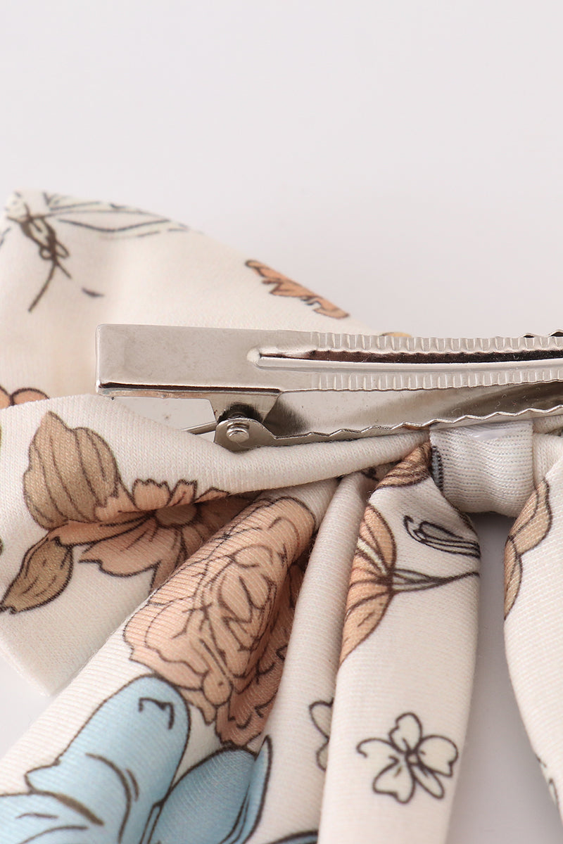 Add a touch of fun and charm to your hairstyle with this floral print hair bow. Perfect for any occasion, this accessory is sure to make you stand out and add a playful touch to your look. Get ready to receive compliments galore!