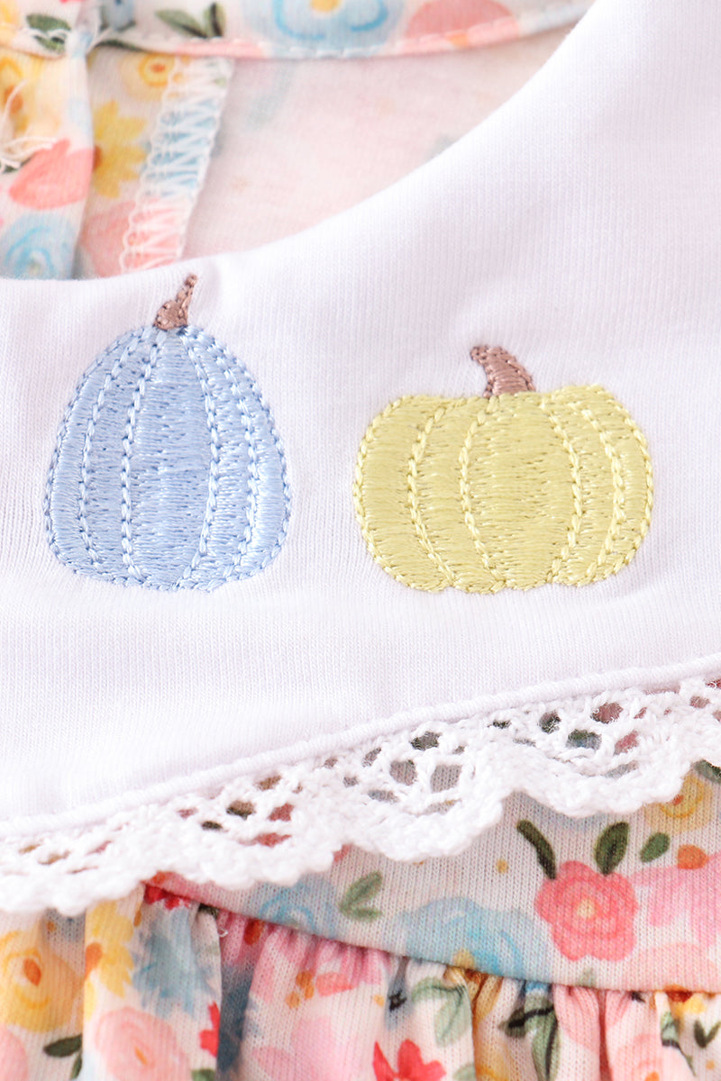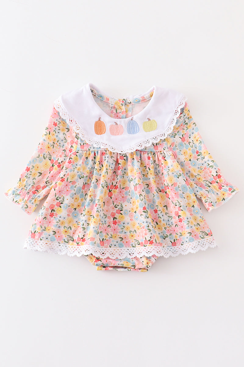 Put the 'pop' in pumpkin with this fabulous Floral Print Pumpkin Embroidery Girl Bubble! Featuring a gorgeous flower print, sweet pumpkin patch embroidery, and a 'bubble' silhouette, this meticulously designed gem is sure to be the 'pick' of the patch! (Virtually guaranteed!)