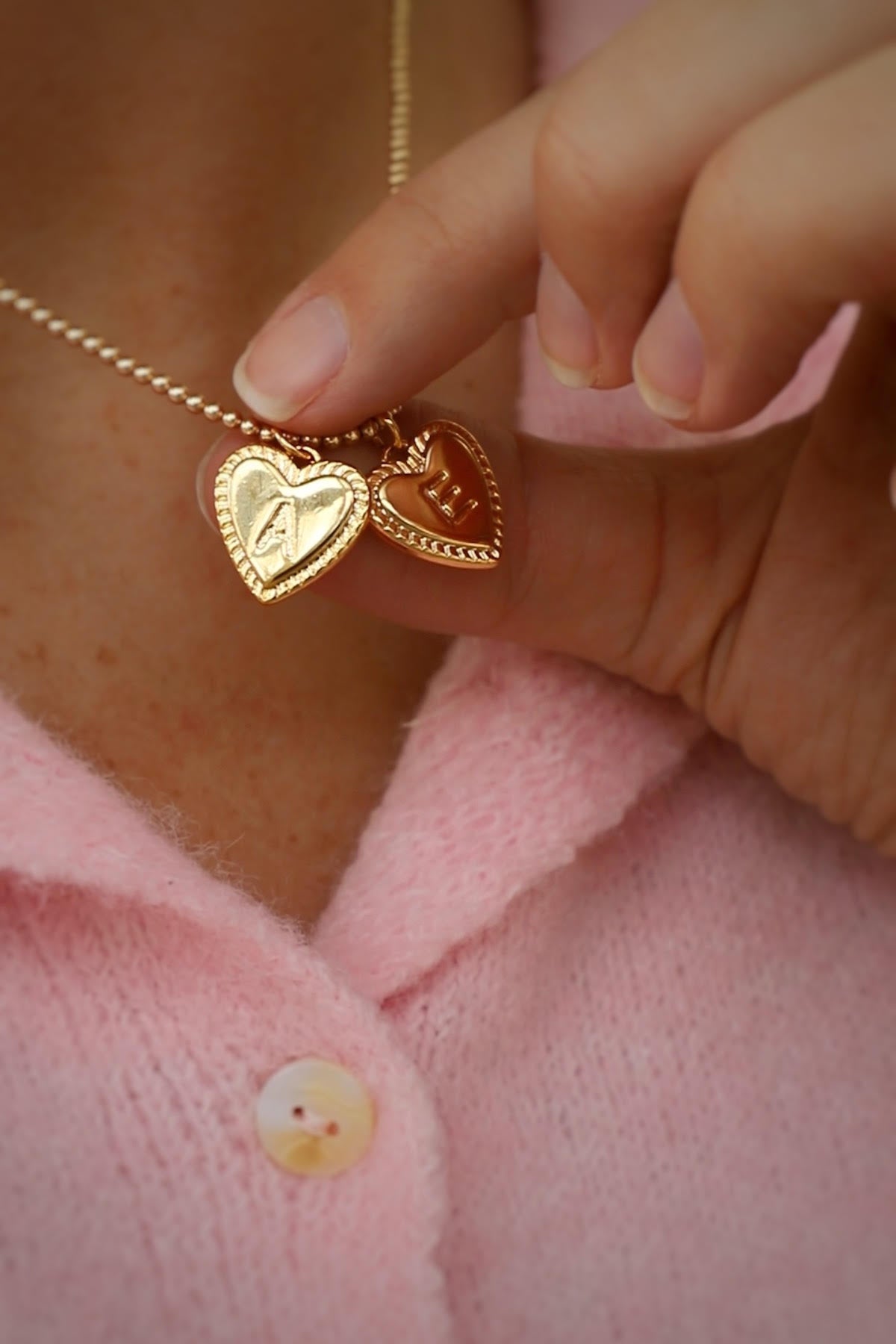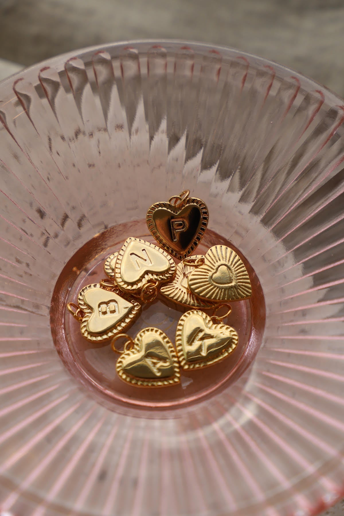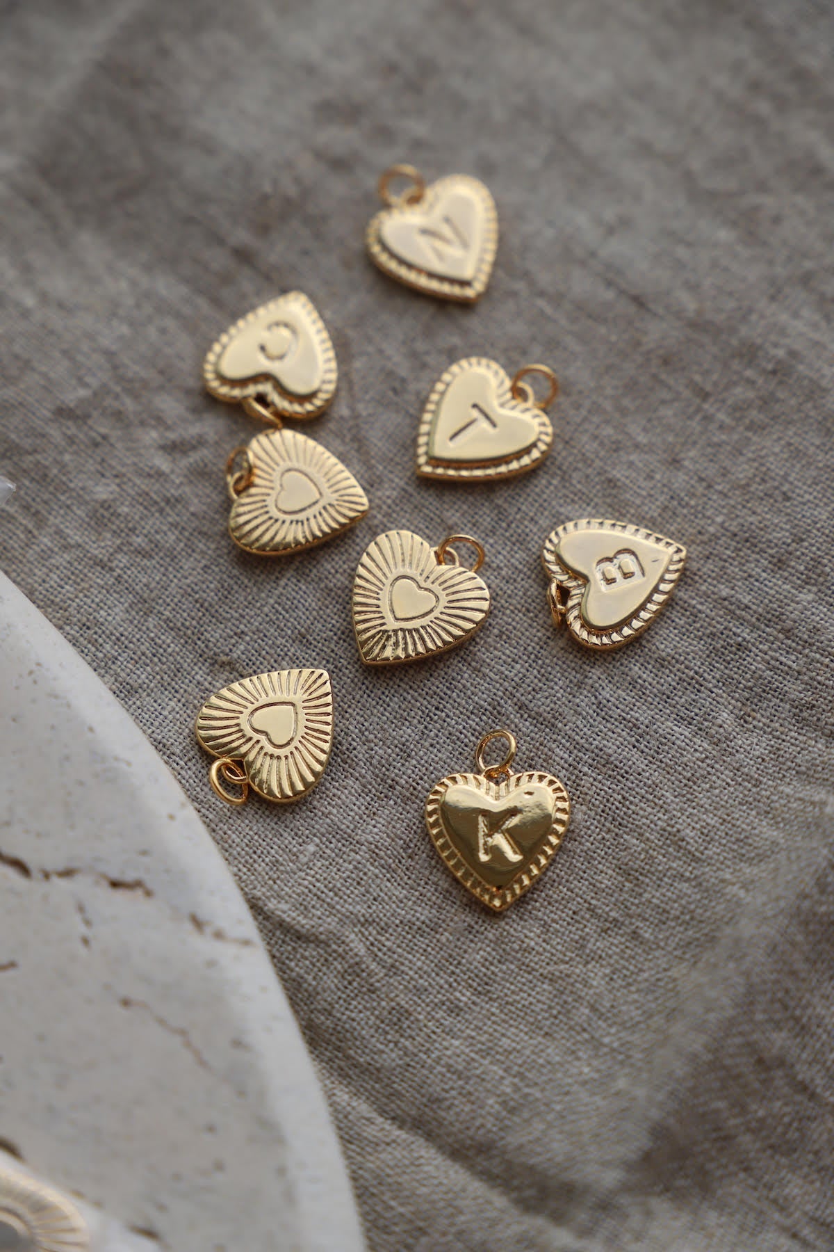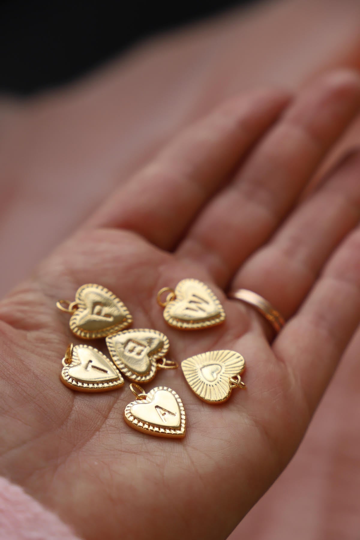 Our For The Love Initial Charm features a letter initial stamped in the center of a stunning heart charm. The back of the charm features a heart shaped stamp so the charm looks stunning on either side you wear it. Pair with our chains and charms collection to make your own unique piece. Perfect for the most meaningful and personalized gift!