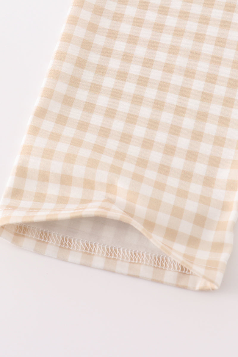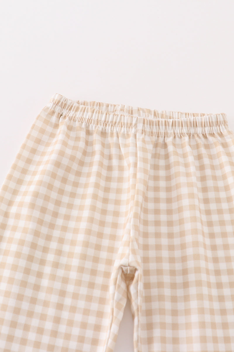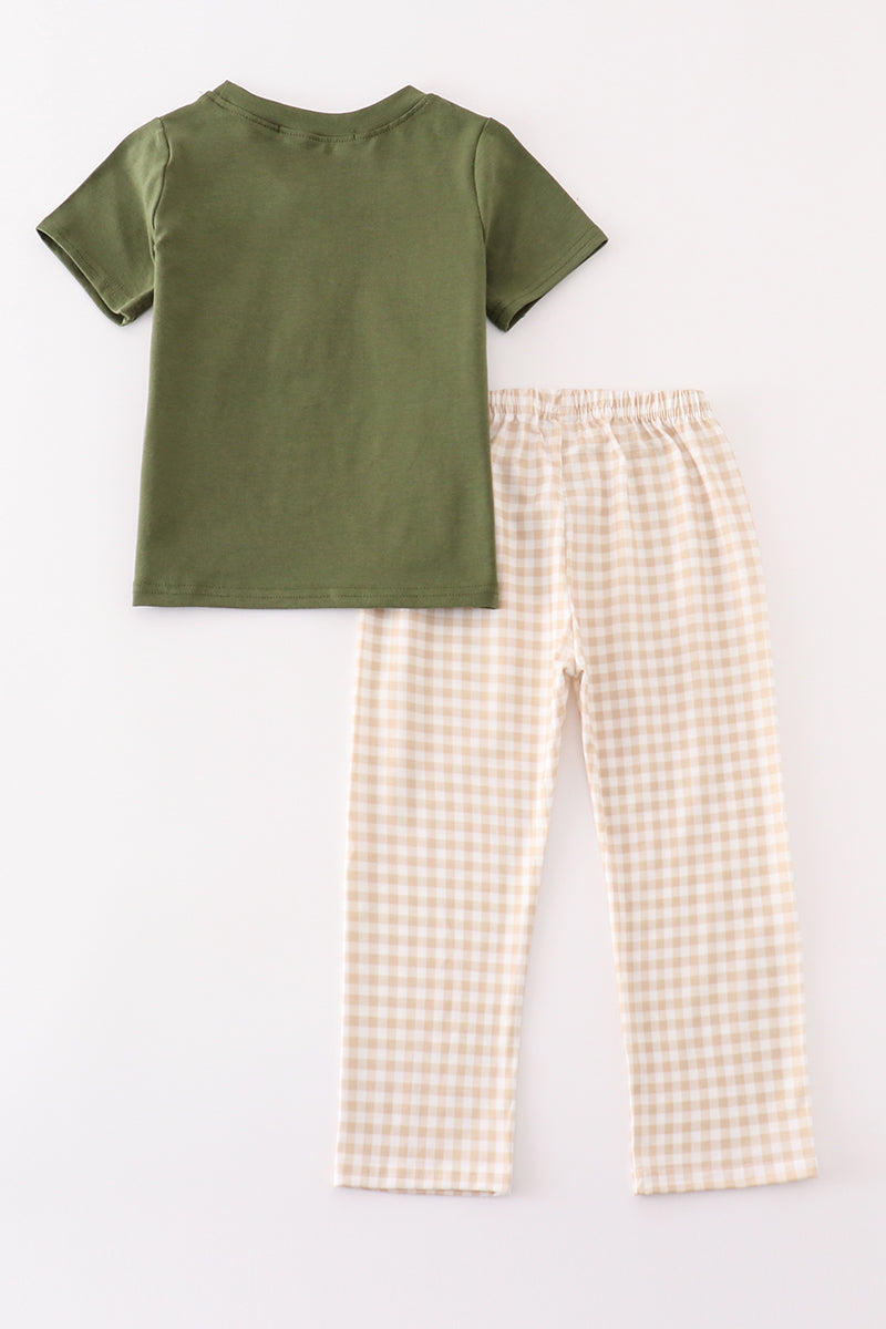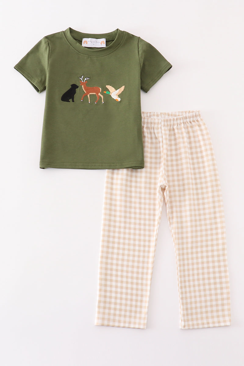 Get your little adventurer ready for a day in the wild with our Gingham Hunting Embroidery Boy Set. Soft and comfortable, this set features a stylish gingham design and playful hunting embroidery. Perfect for a day of outdoor exploring or just lounging around the house. Let the adventure begin!