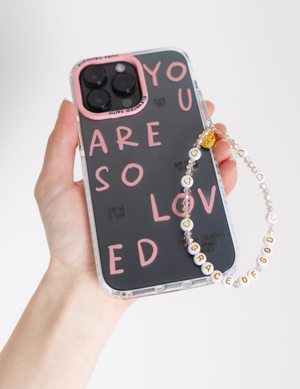 Accessorize your phone and EF phone case with our Grace of God beaded phone charm! It adds some fun to your mirror selfies and can also be functional by wearing it around your wrist so you don't drop your phone.
