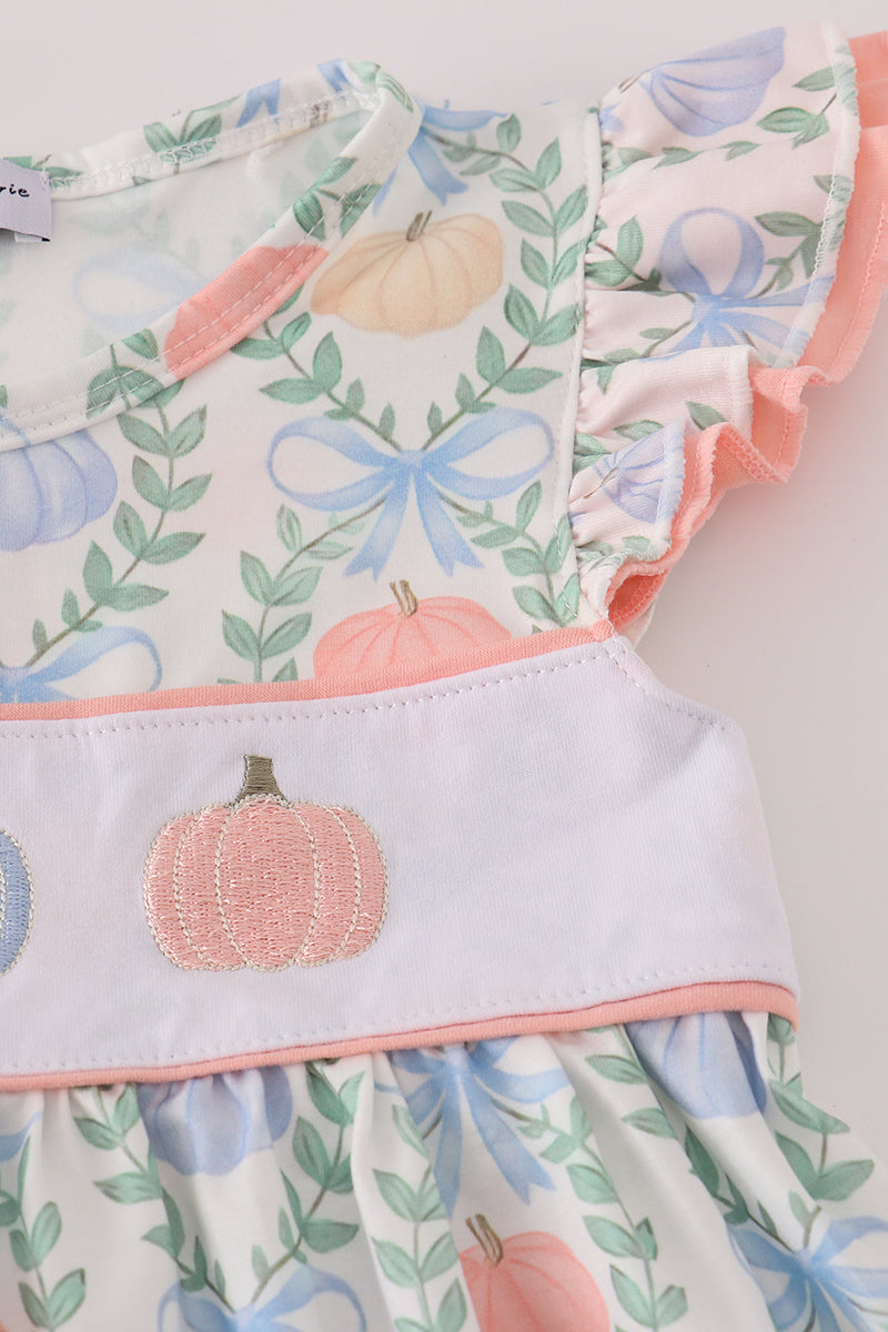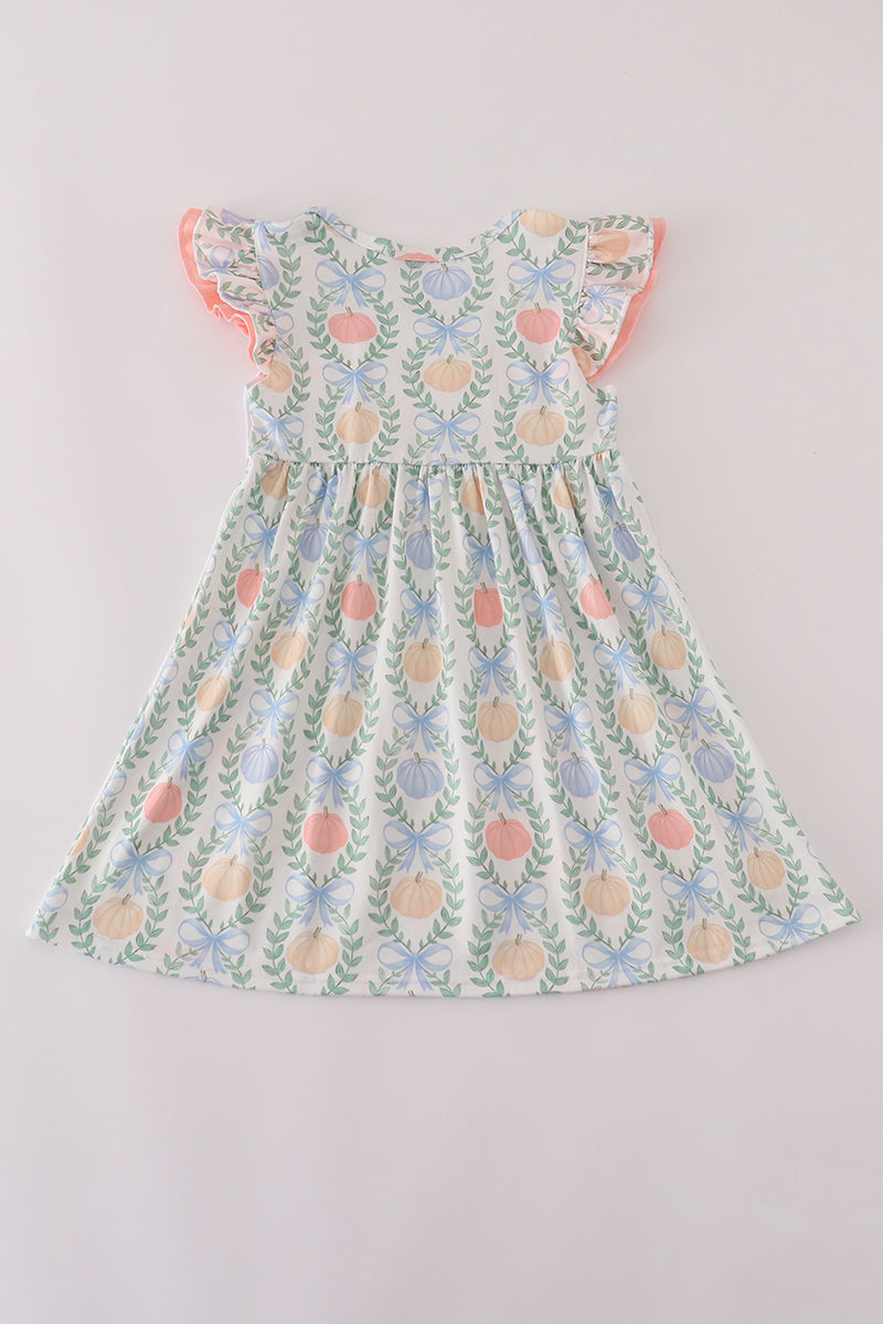 This playful green dress features charming bow print embroidery and delicate ruffle details, adding a touch of whimsy to your wardrobe. Perfect for sunny days or special occasions, its light fabric and fun design make it a delightful choice for a fresh, lively look.