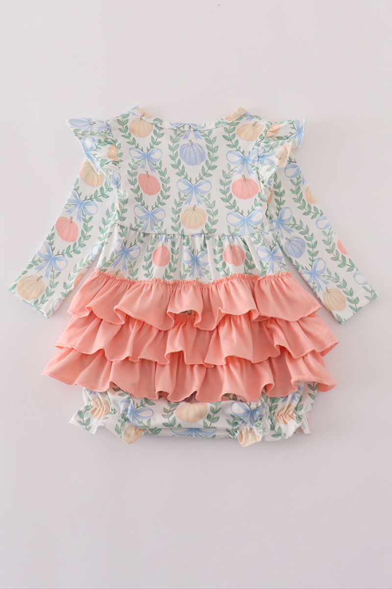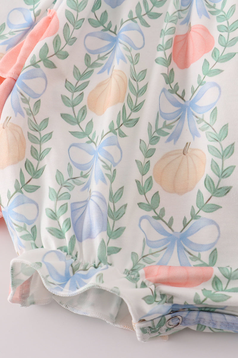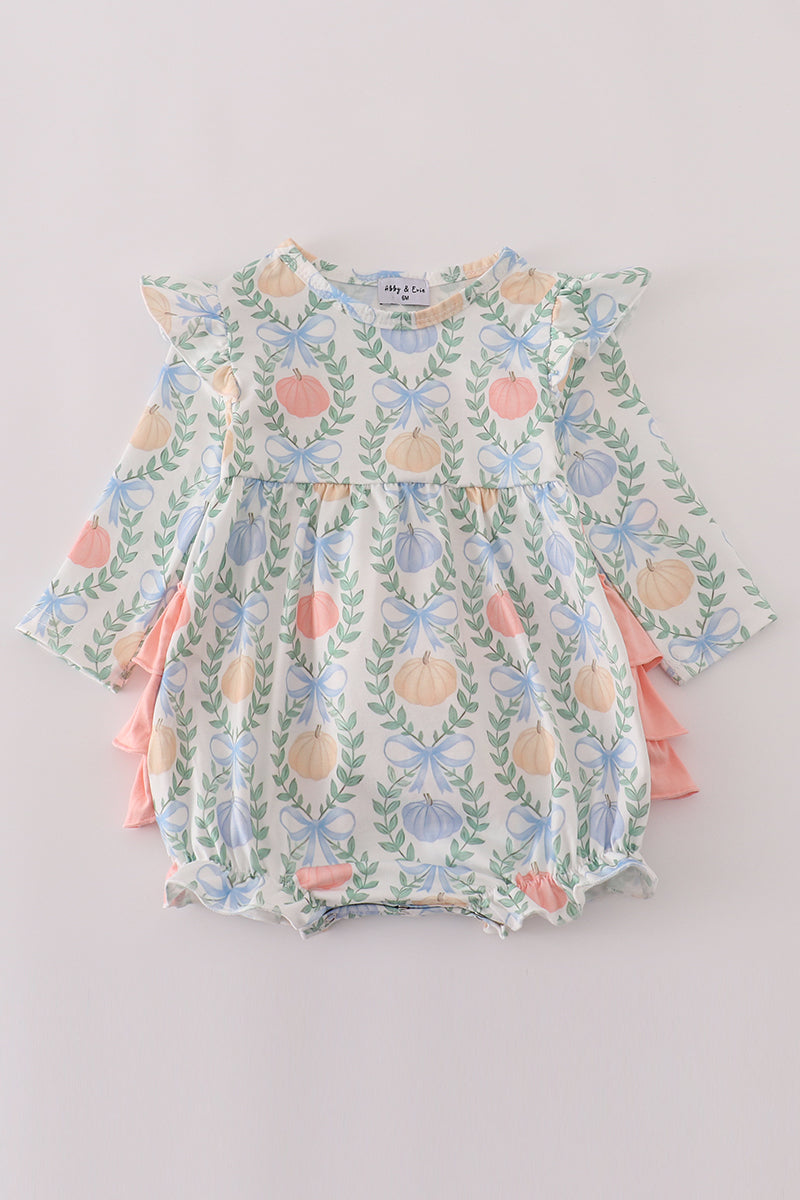 Green bow print ruffle bubble