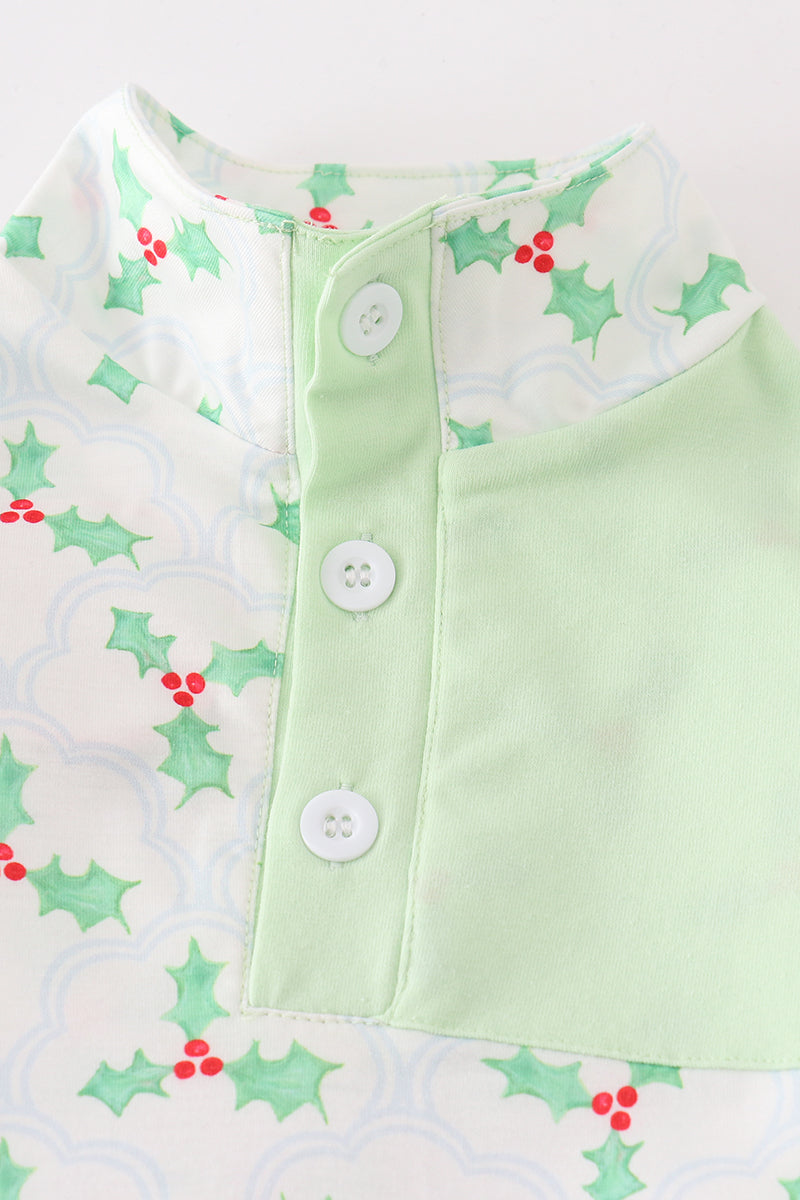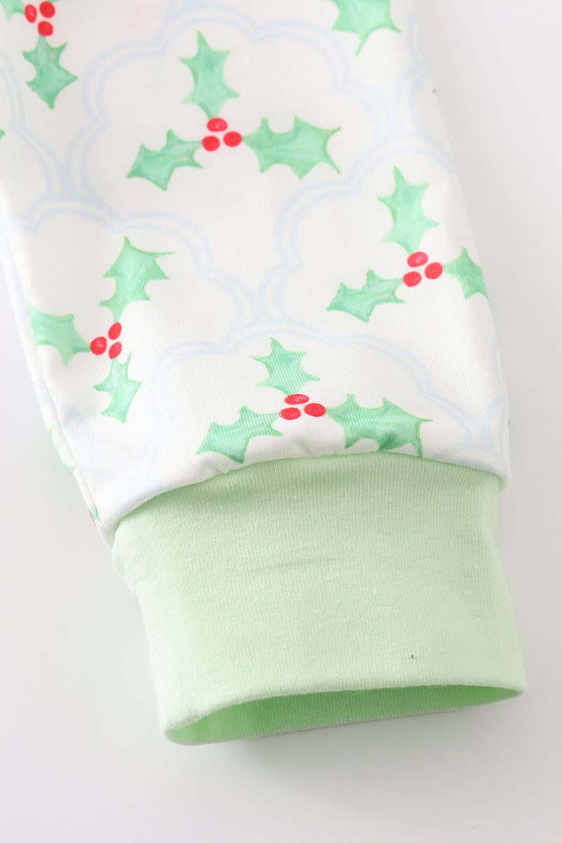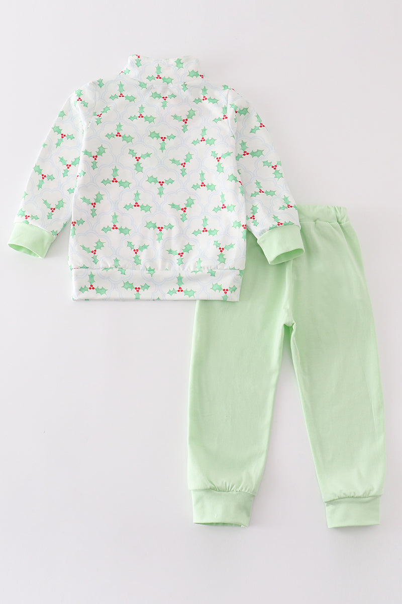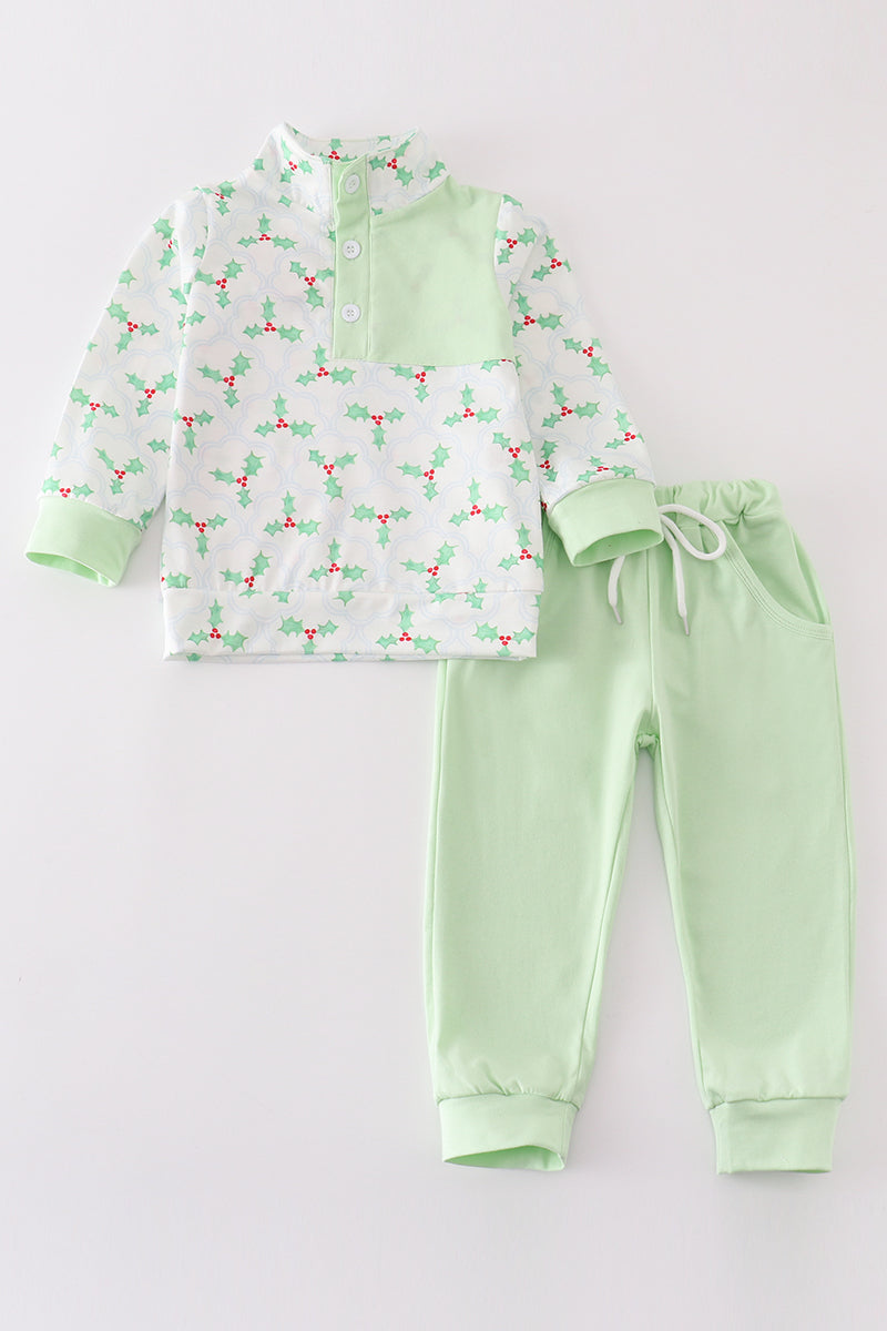Get festive with our Green Holly Jolly Jogger Set! This playful set includes a matching top and bottom, both adorned with bright holly prints. Stay cozy and stylish this holiday season. Perfect for quirky kids who are all about the jingle bells!