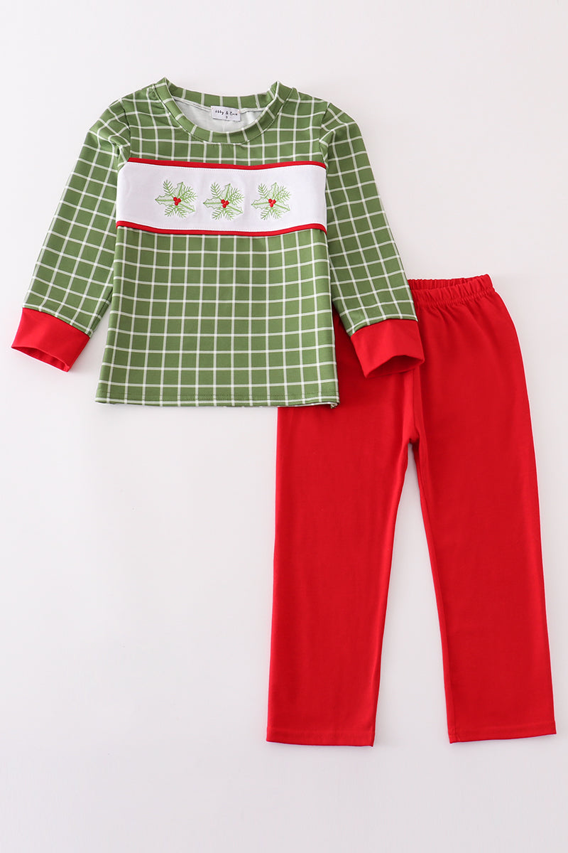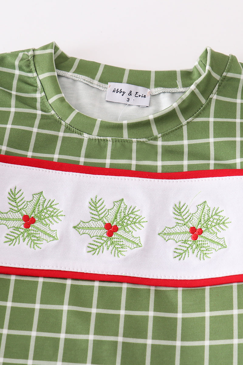 Celebrate the holidays in style with our festive Green Christmas Holly Embroidery Boy Set. This set features a playful holly embroidery design that will make your little one stand out. Perfect for family photos and holiday parties, this set is sure to bring some holiday cheer to your little boy's wardrobe.