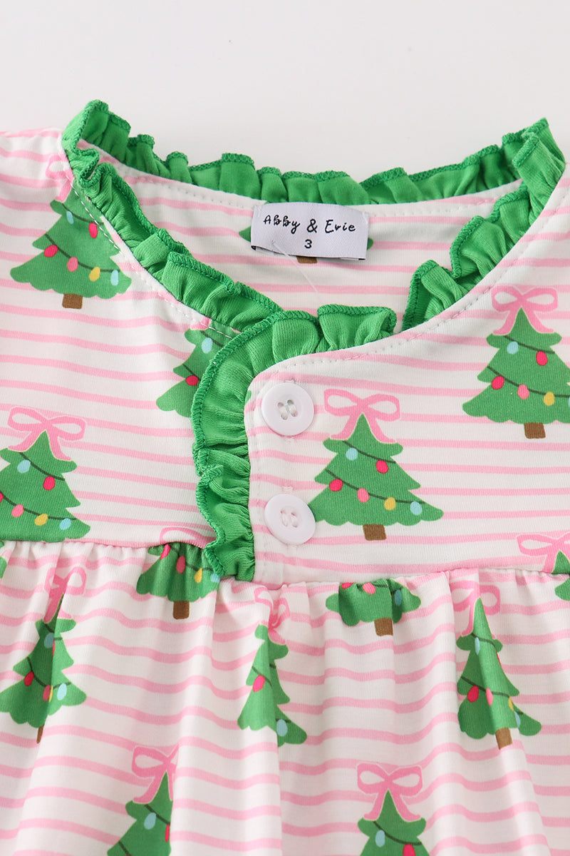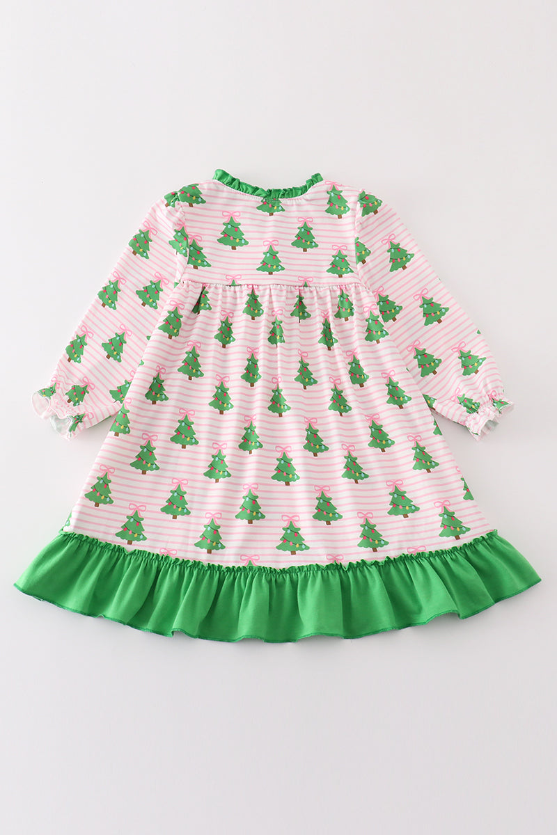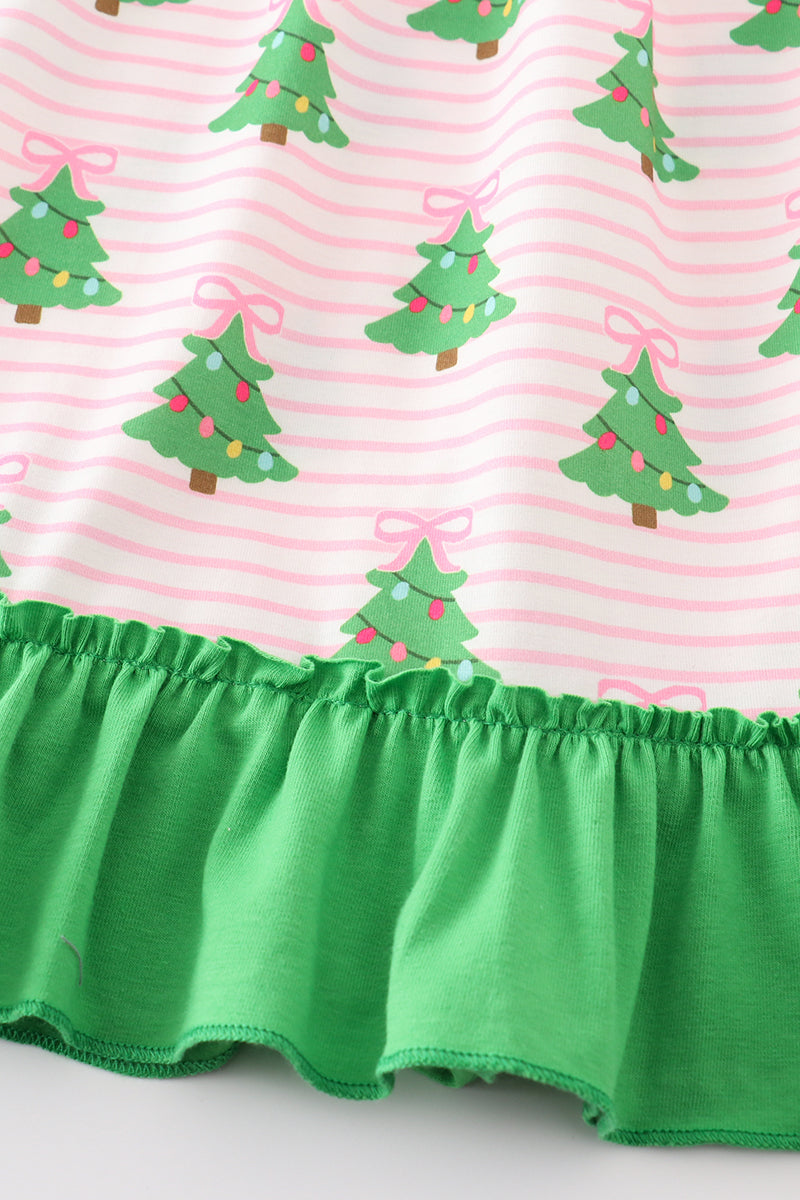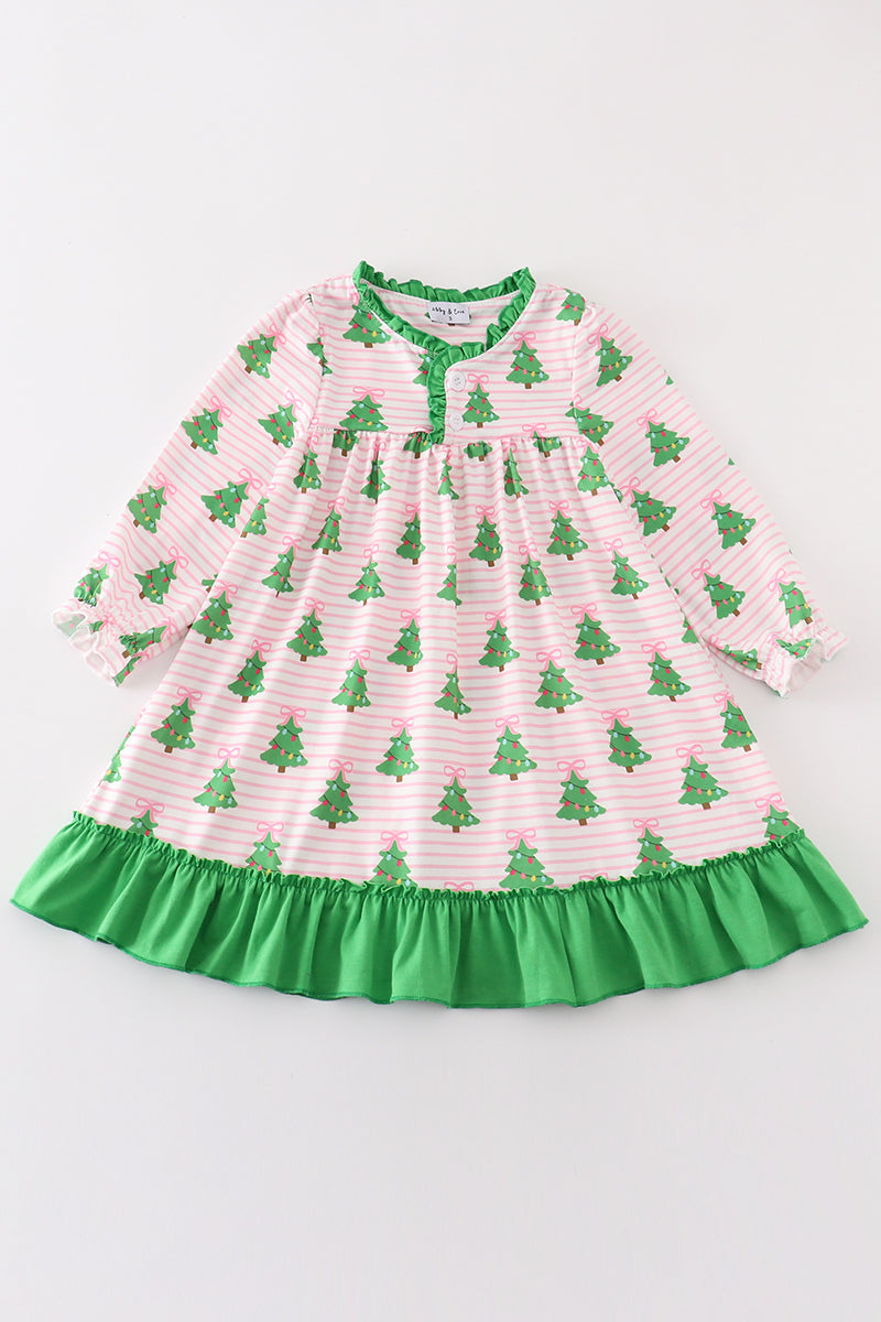 Get ready for the holidays with our quirky Green Christmas Tree Print Ruffle Girl Gown. The festive ruffle detailing and playful Christmas tree print will make your little one stand out in all the family photos. Ditch the boring holiday outfits and choose our unique dress for a fun and stylish look!
