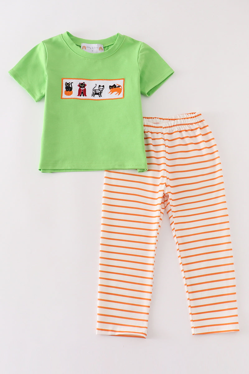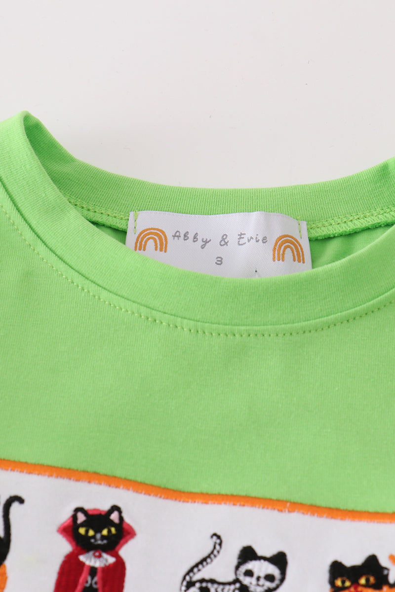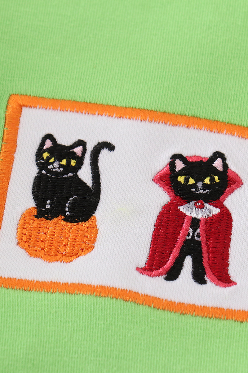 Get your little one in the spooky spirit with our Green Halloween Cat Embroidery Boy Set! Featuring a playful embroidered cat design, this set is perfect for Halloween parties or trick-or-treating. Made with comfortable and durable material, your child will love wearing this set again and again. (Don't be scared, it's just a really cute cat.)