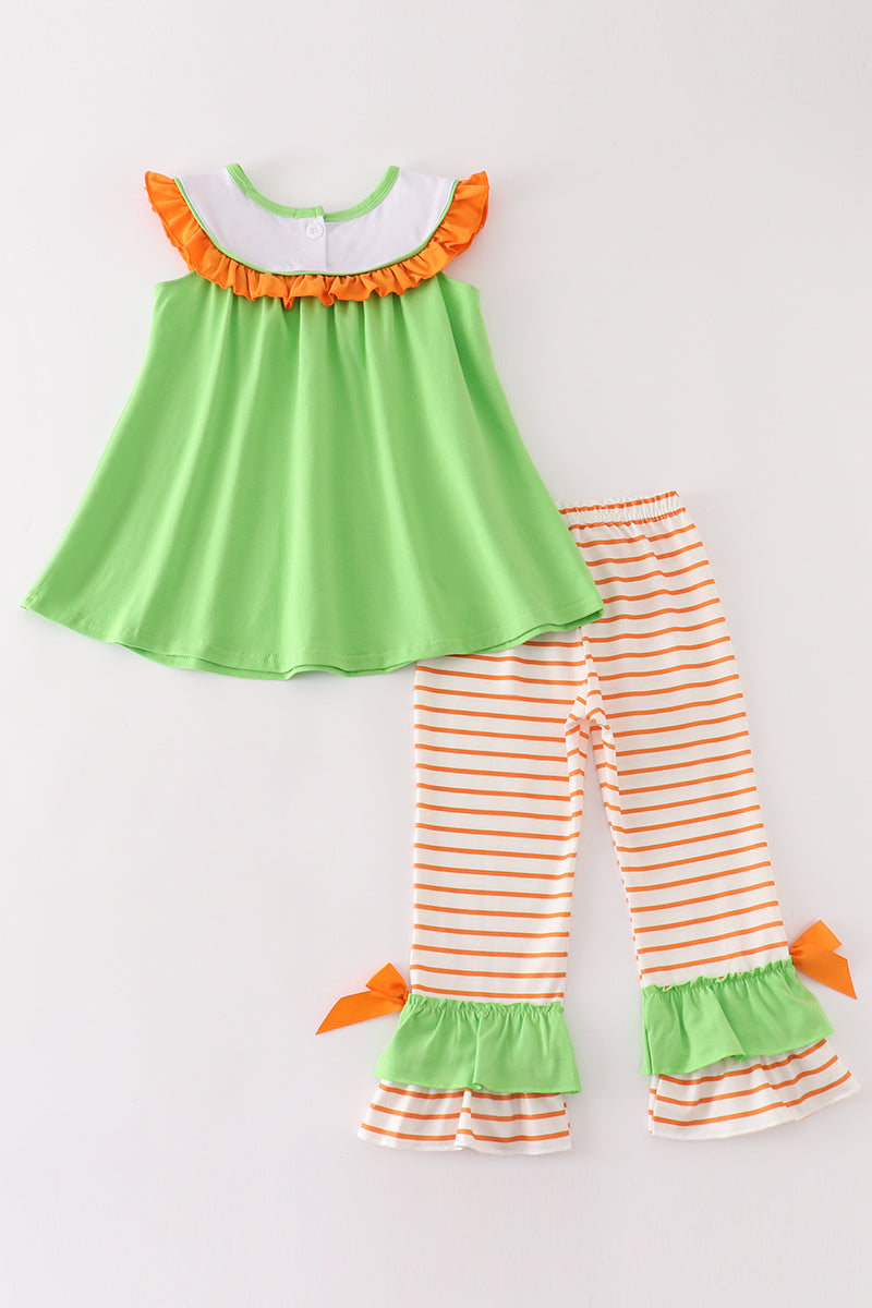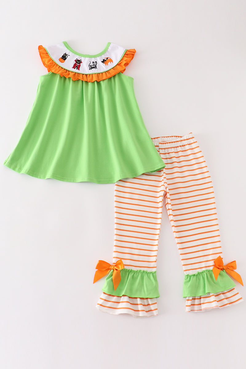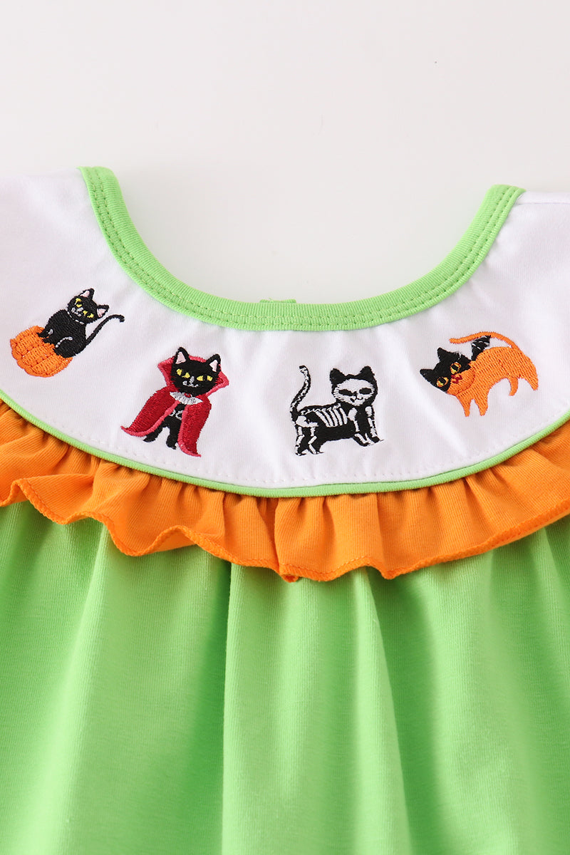 Green halloween cat embroidery girl set