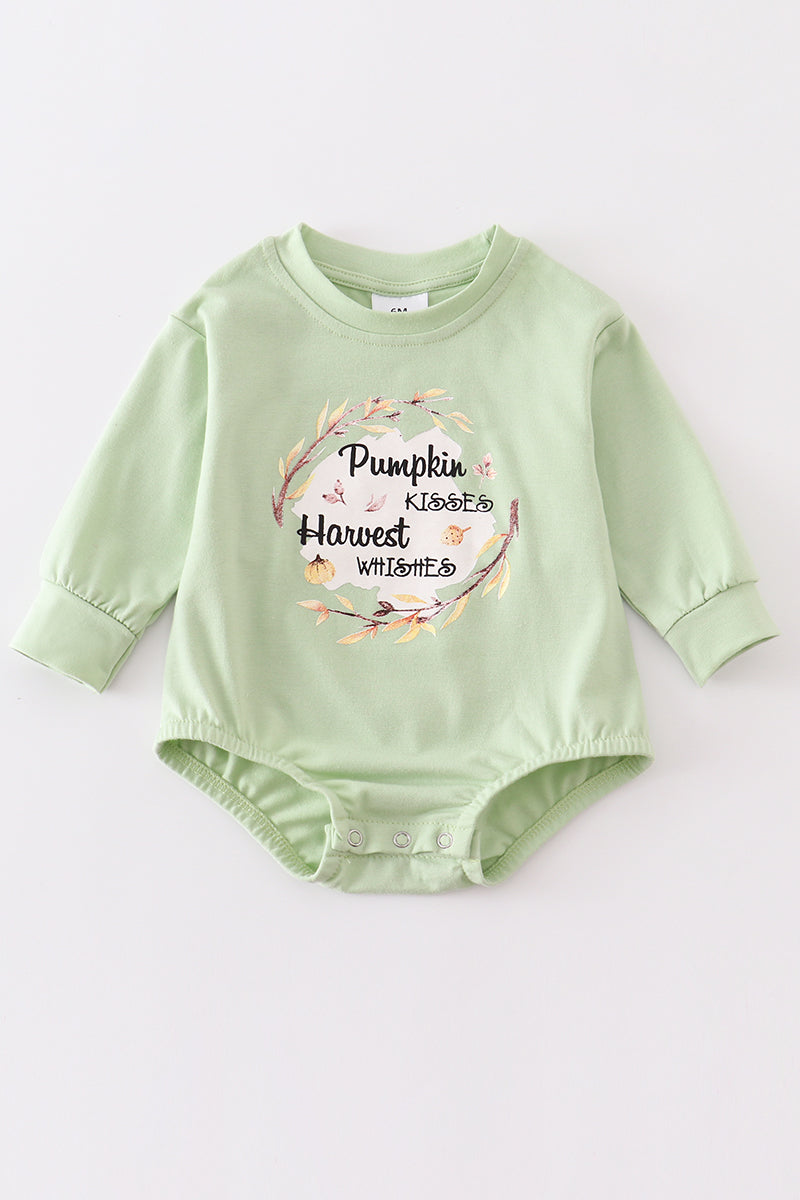 This fall, your lil' pumpkin can be the cutest squash in the patch! Our green pumpkin baby romper is full of festive style and made with soft, comfy material. Perfect for those who are feeling a bit gourd-geous!