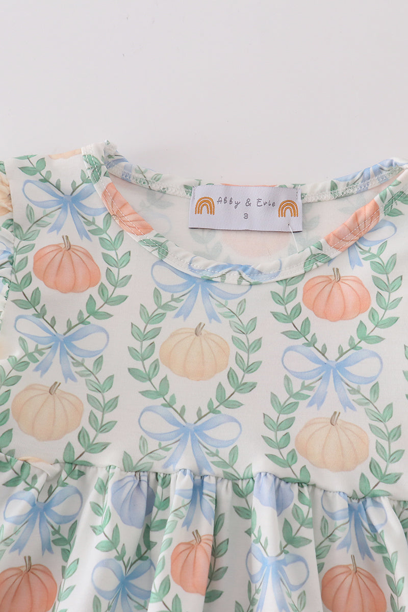 Get ready to slay in this playful and stylish green pumpkin bow print dress. With a unique and quirky design, this dress will surely turn heads and make you stand out. Perfect for any occasion, this dress is the ultimate expression of fun and fashion. Add it to your wardrobe today!
