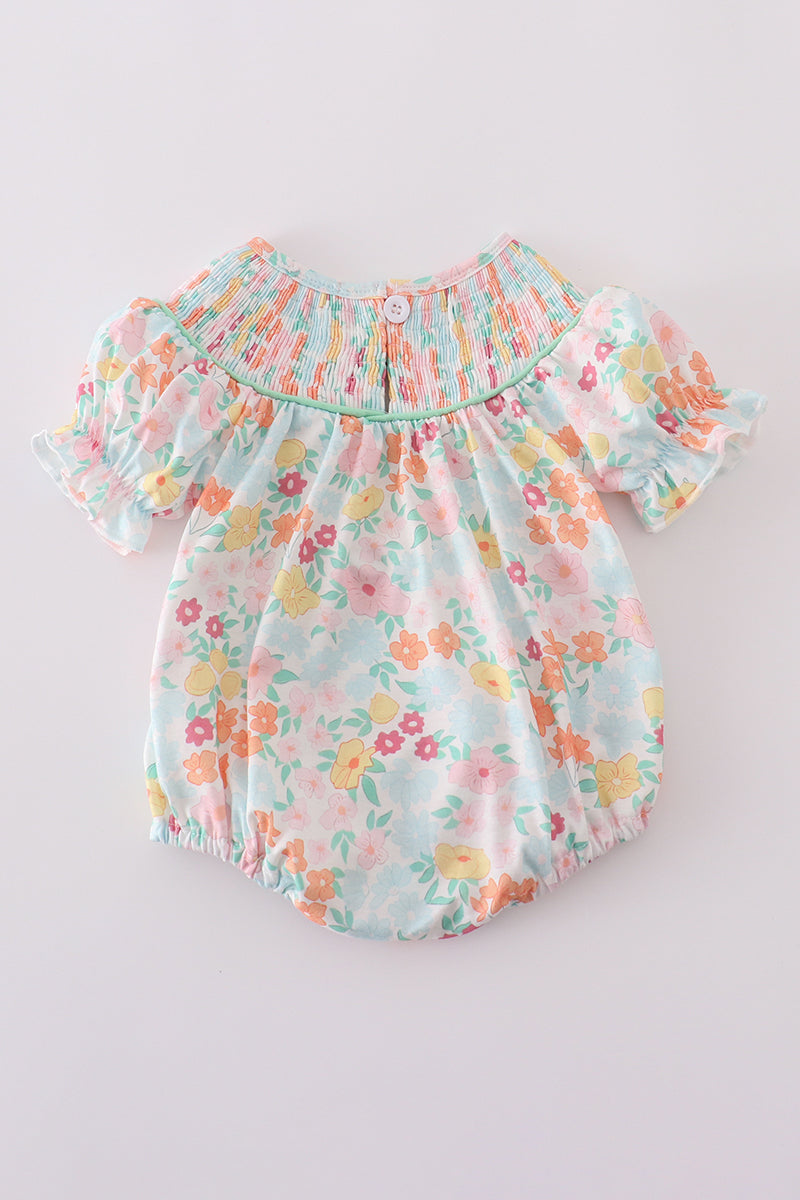 Get ready for springtime with our Green Springtime Bloom Smocked Girl Bubble! Made with beautiful blooming fabric, this bubble is perfect for playful outings and garden adventures. The smocked design adds a touch of vintage charm. Bring on the sunshine!