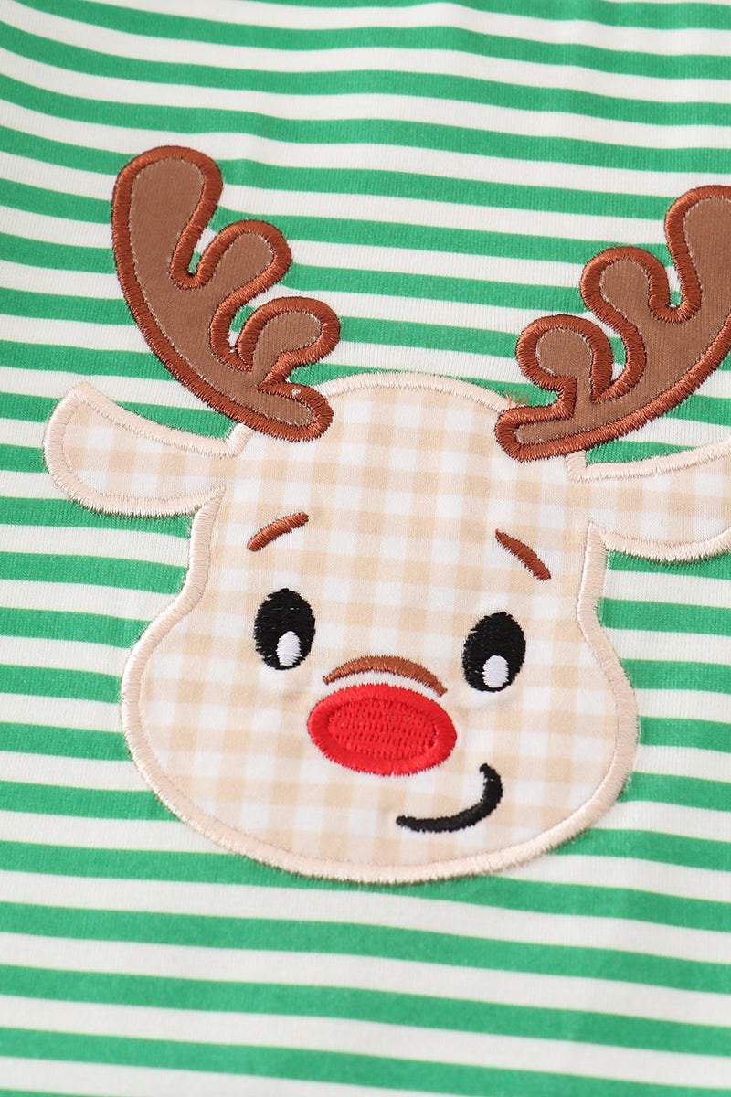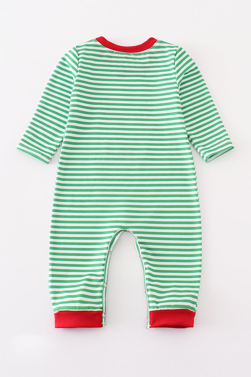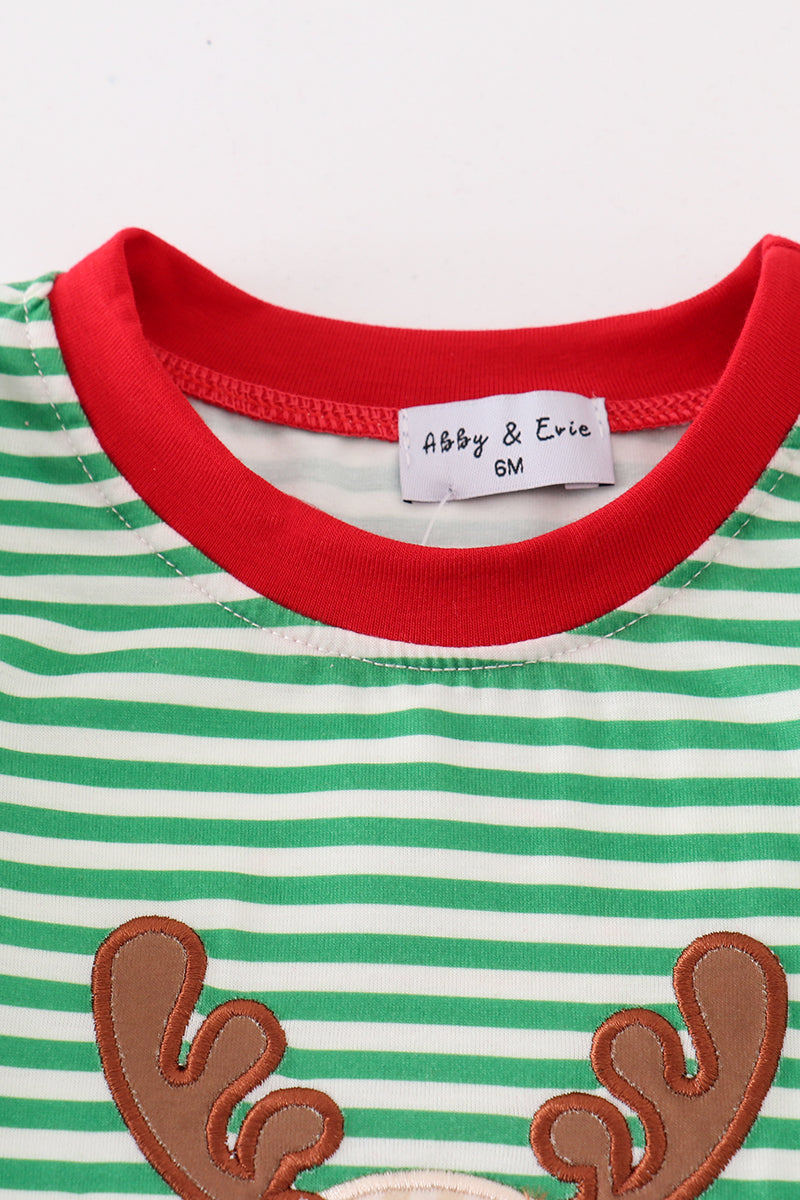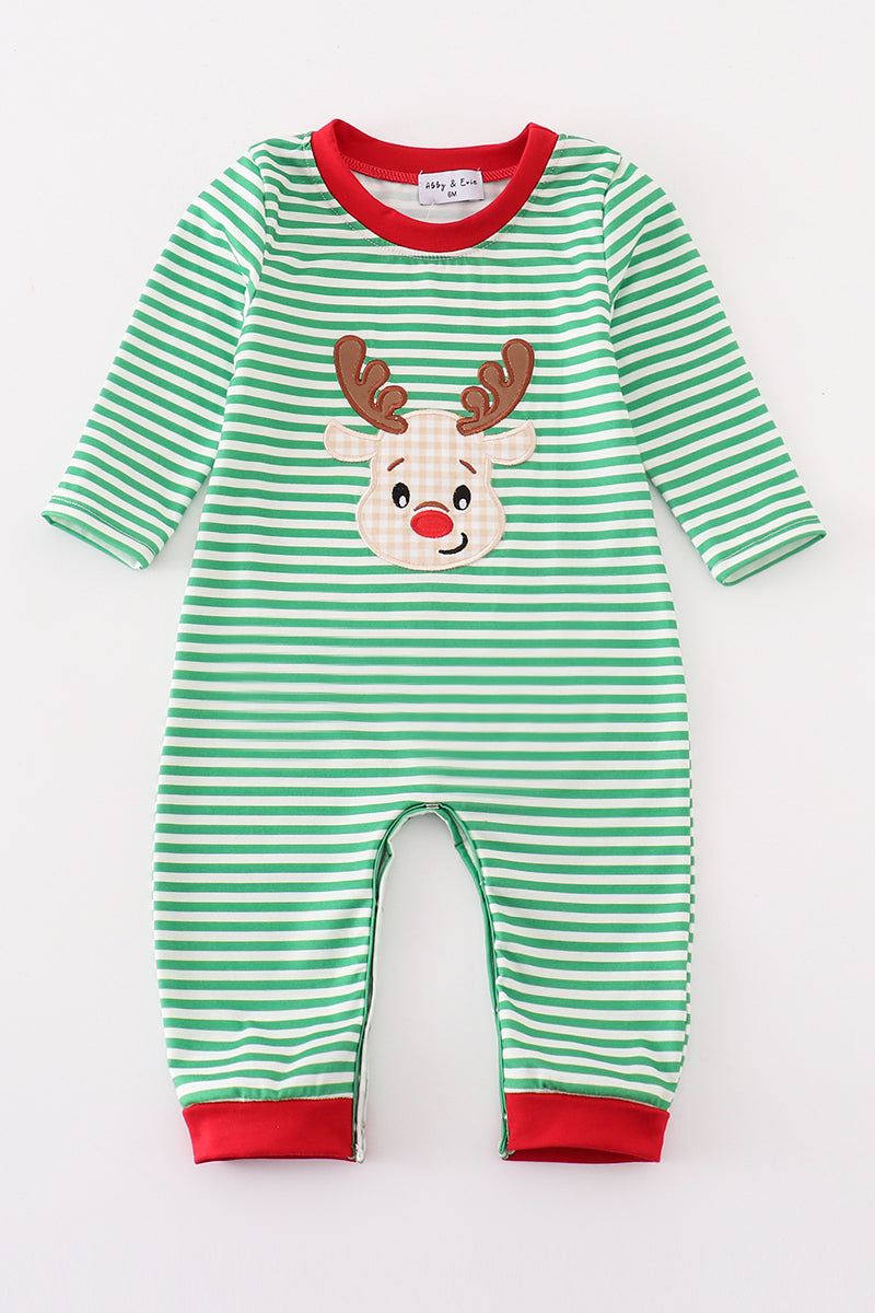 Dress your little dude up in this fun and festive green stripe Christmas deer applique romper. Perfect for holiday photos and parties, it's sure to bring a smile to everyone's face. (Plus, he'll be the most stylish kid around!)