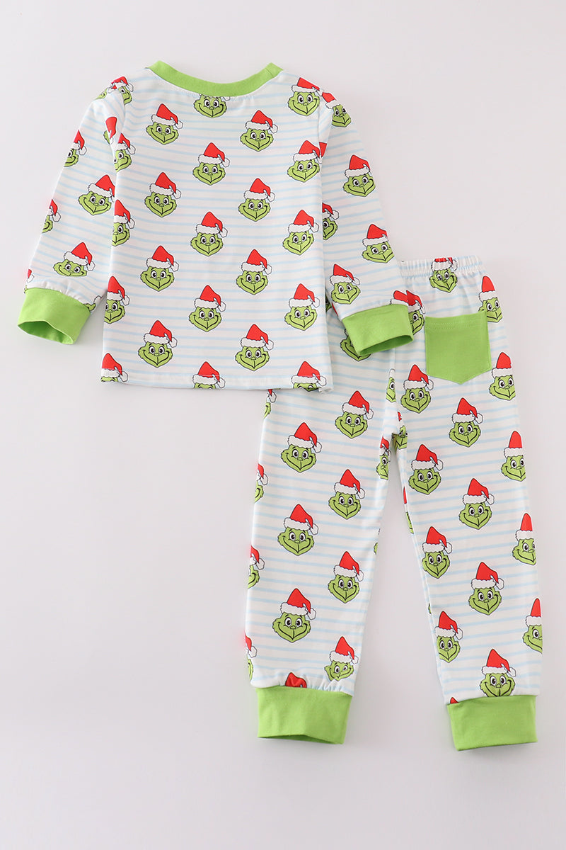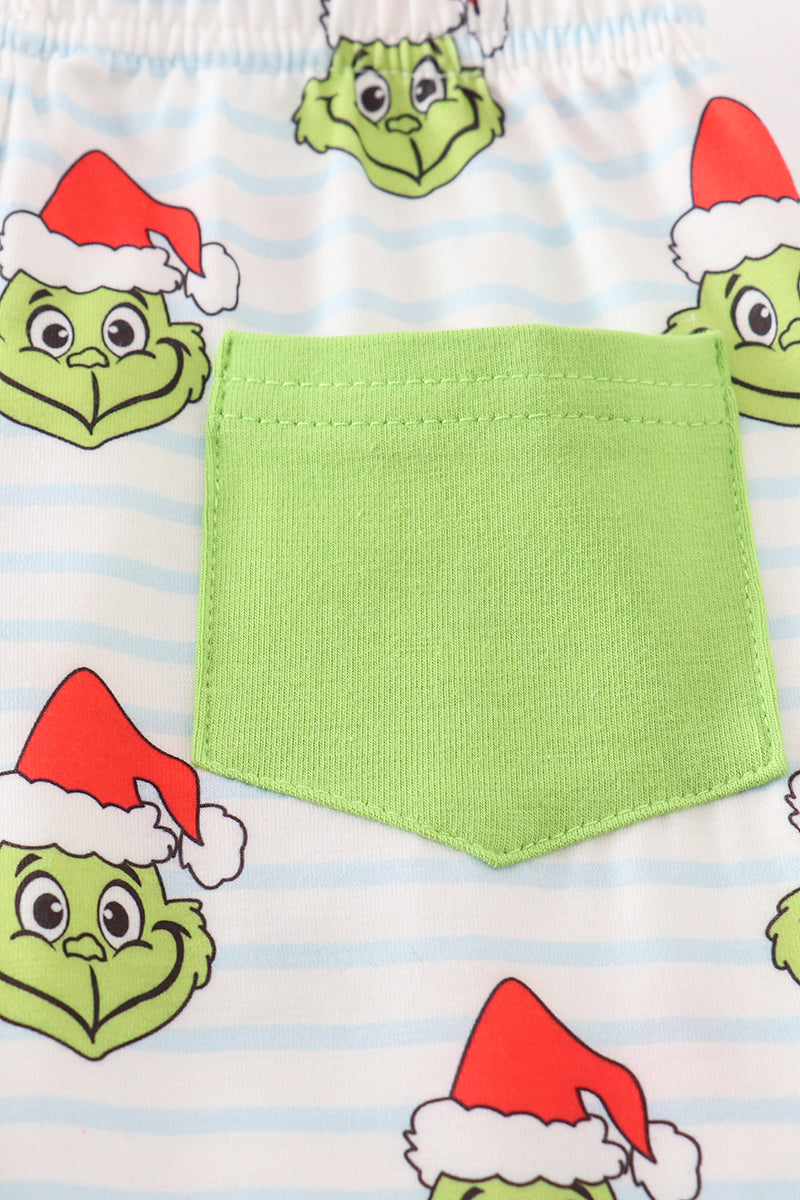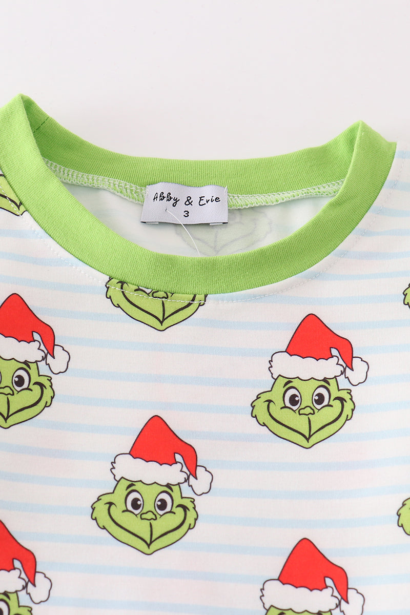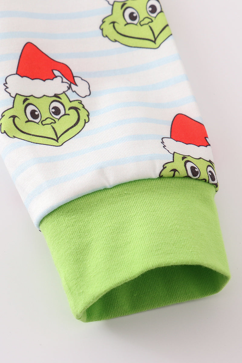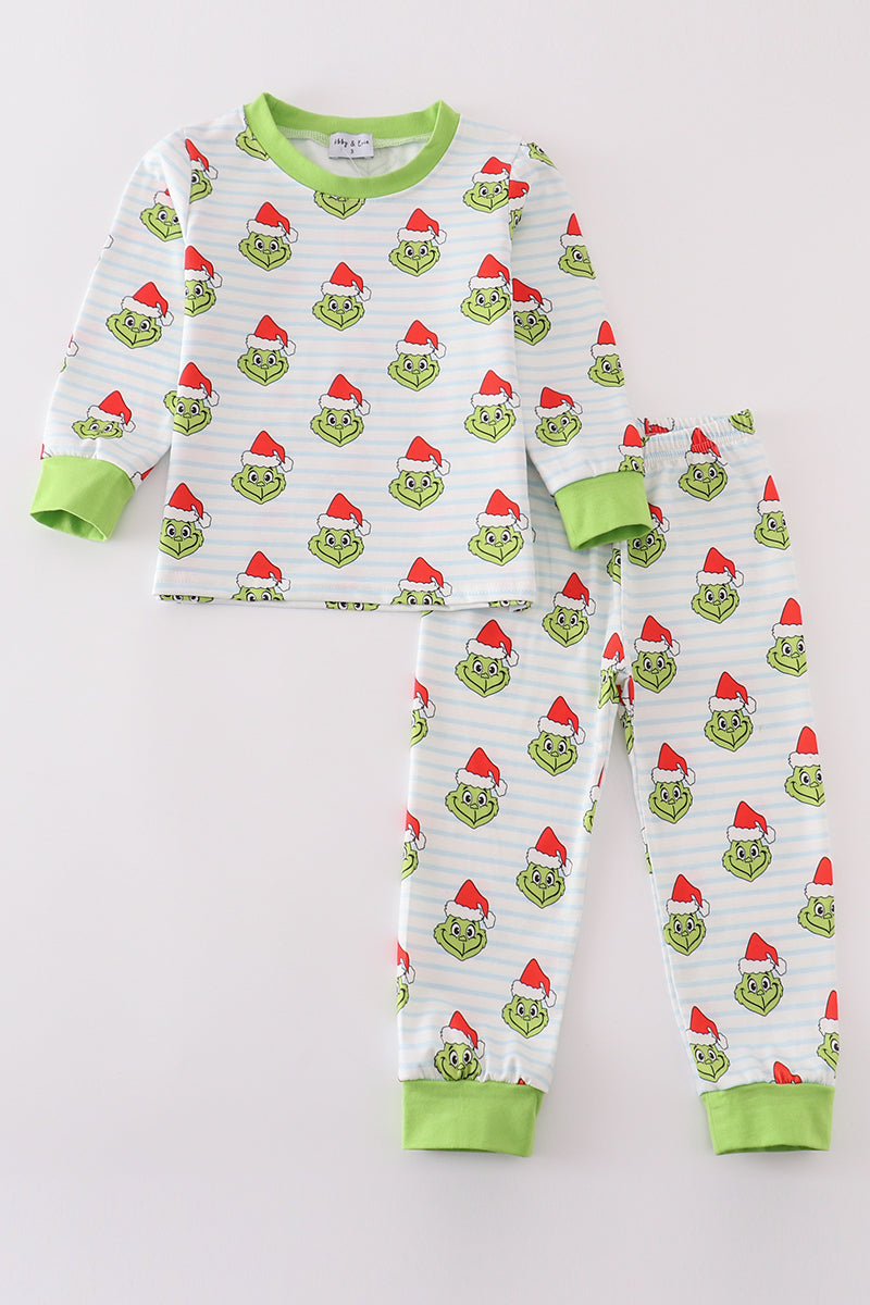 Green stripe christmas grinch unisex pajamas set