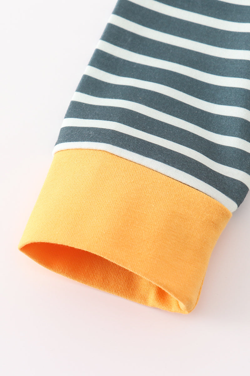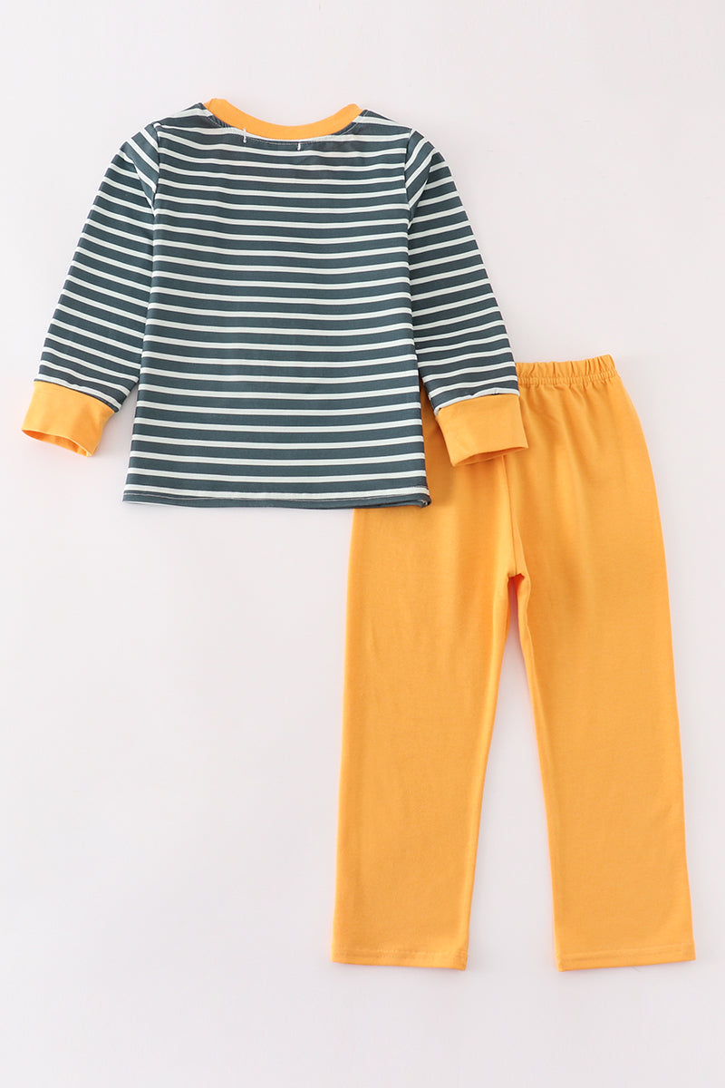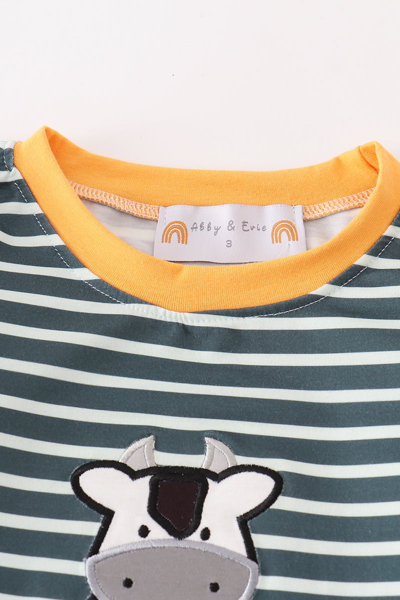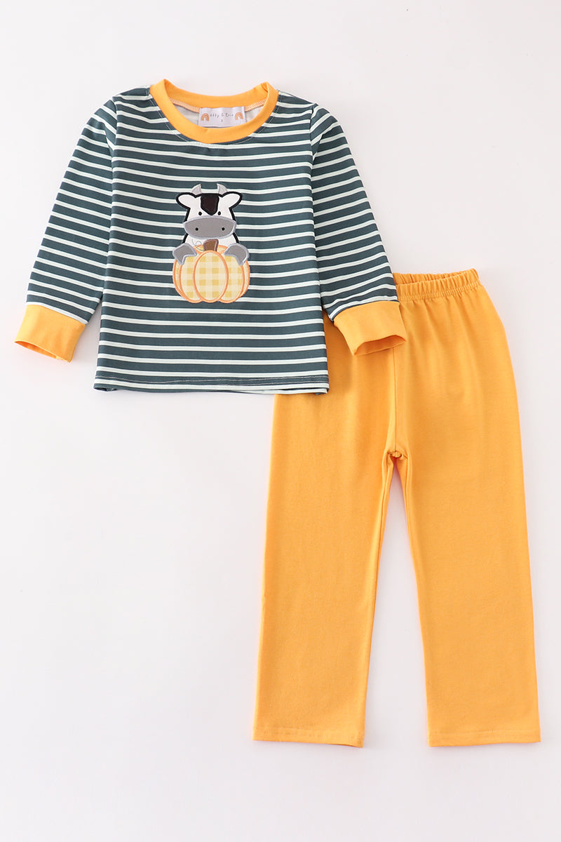 Green stripe cow pumpkin applique boy set