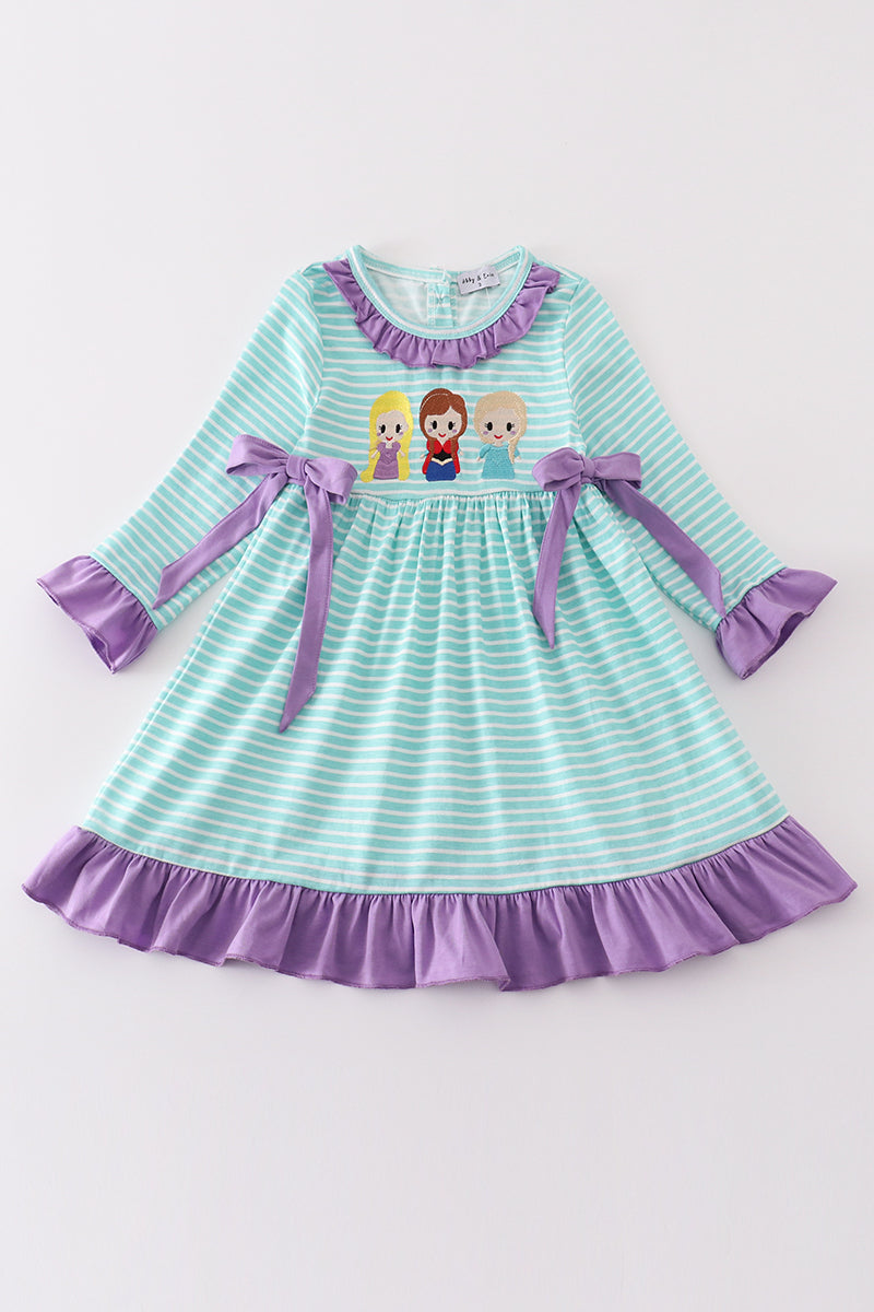 This dress is fit for any little princess with its charming green stripes and delicate embroidery. Perfect for any occasion, this dress is sure to make your little one feel like royalty.