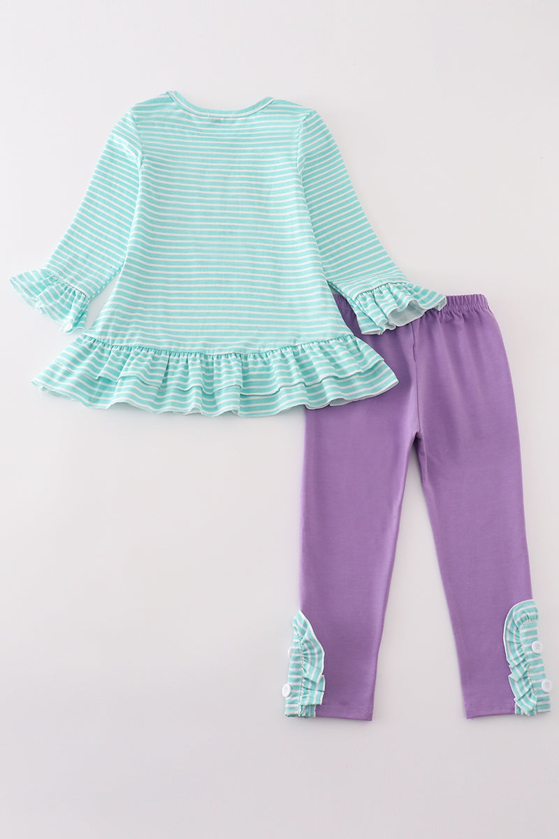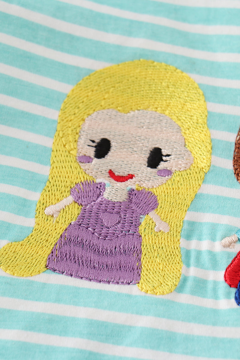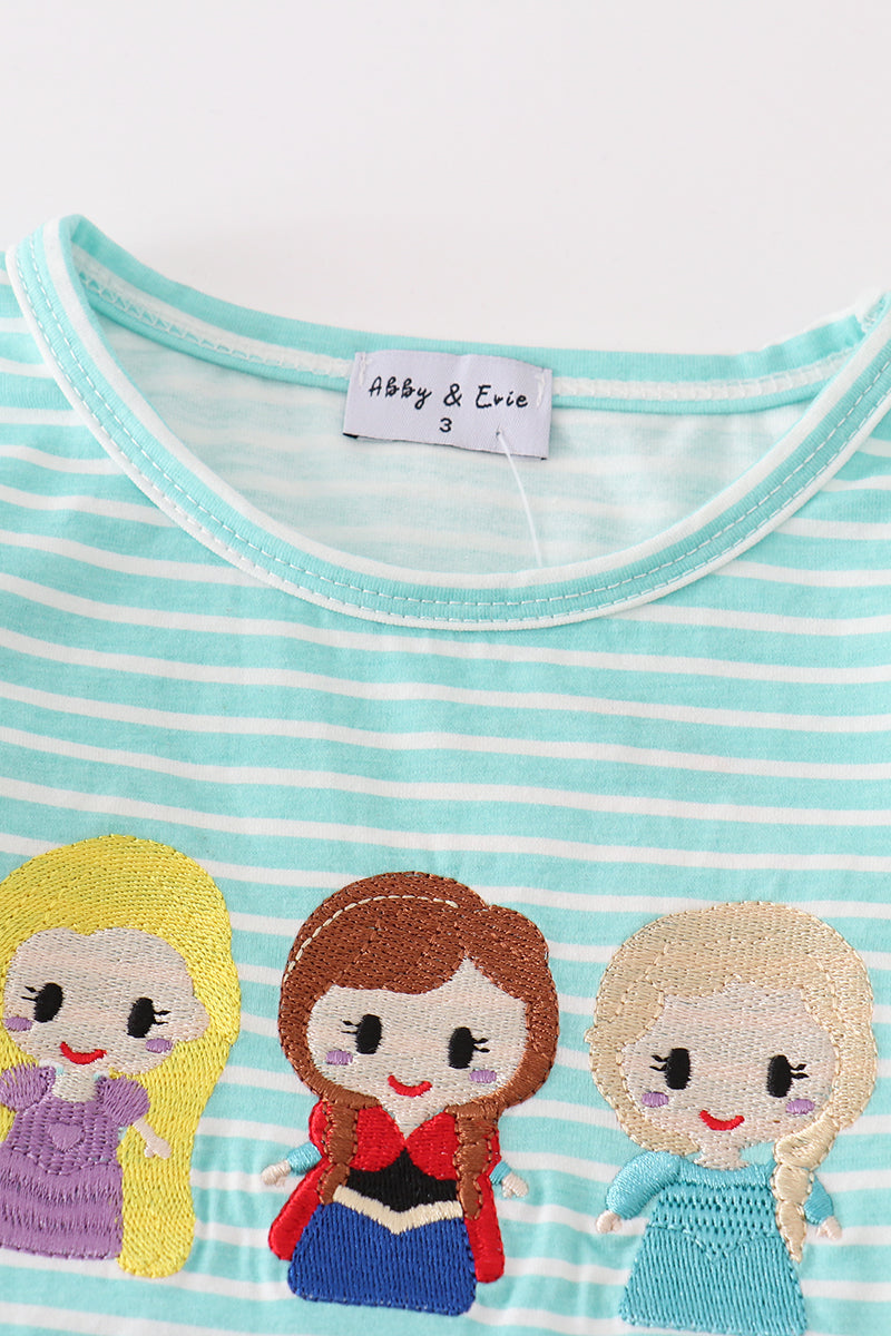 Green stripe princess embroidery girl set
