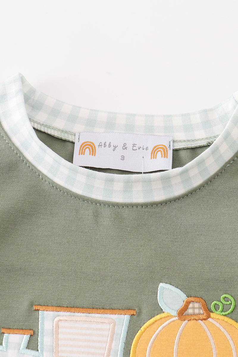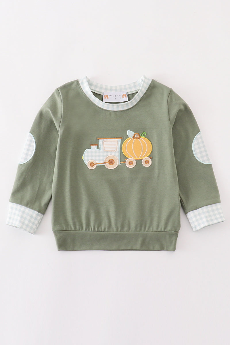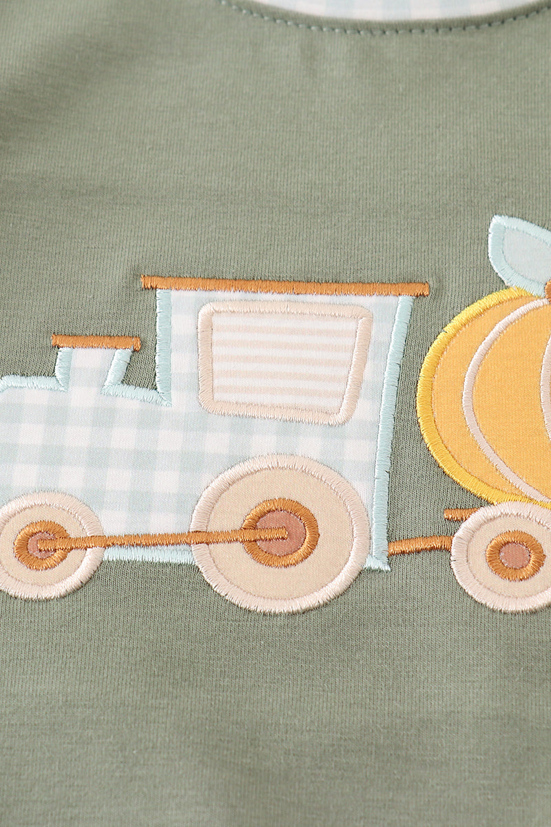 Ride the rails in style with this playful green train pumpkin applique top for boys. Featuring a unique design and comfy fit, your little conductor will definitely stand out on the tracks. Cho-cho-choose this top for a fun and festive fall look!